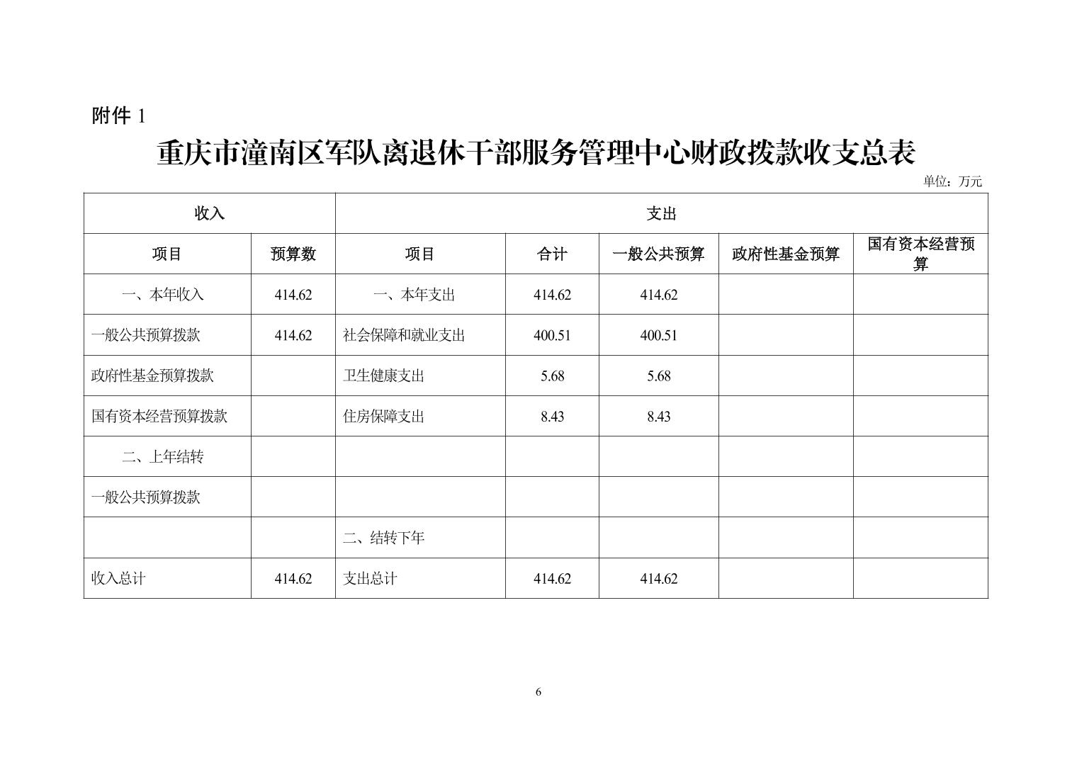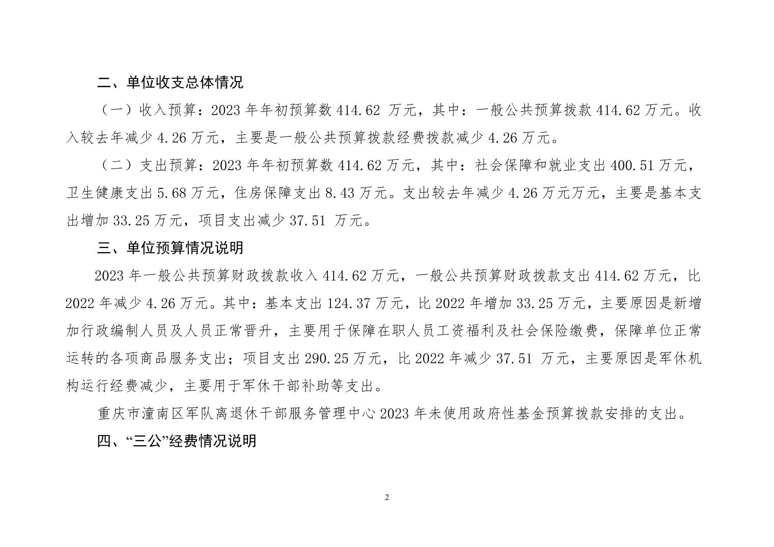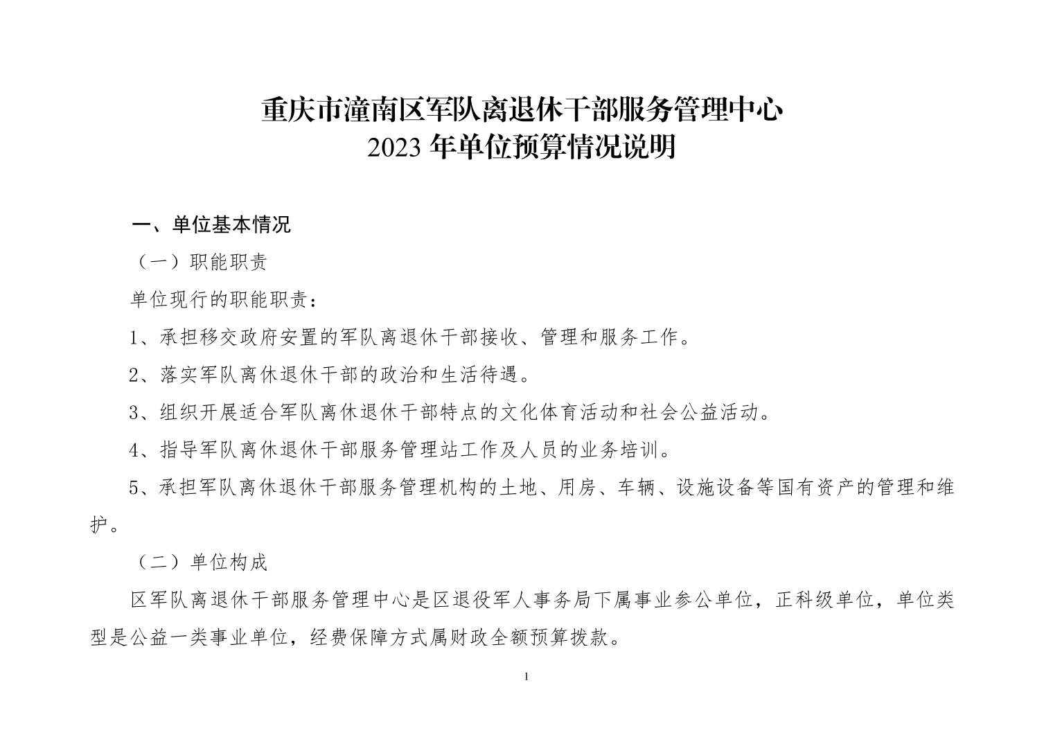 重庆市潼南区军队离退休干部服务管理中心2023年部门预算公开