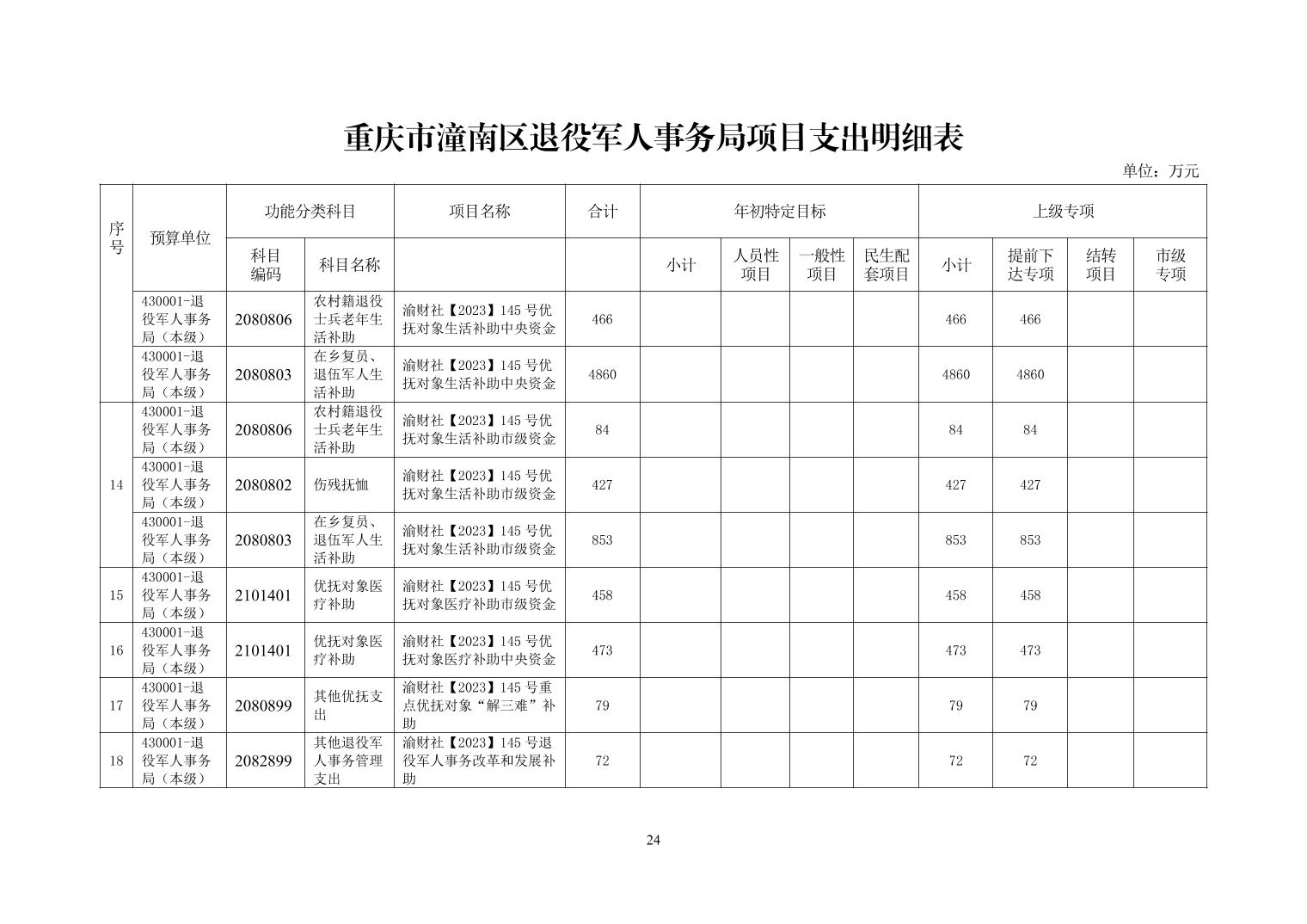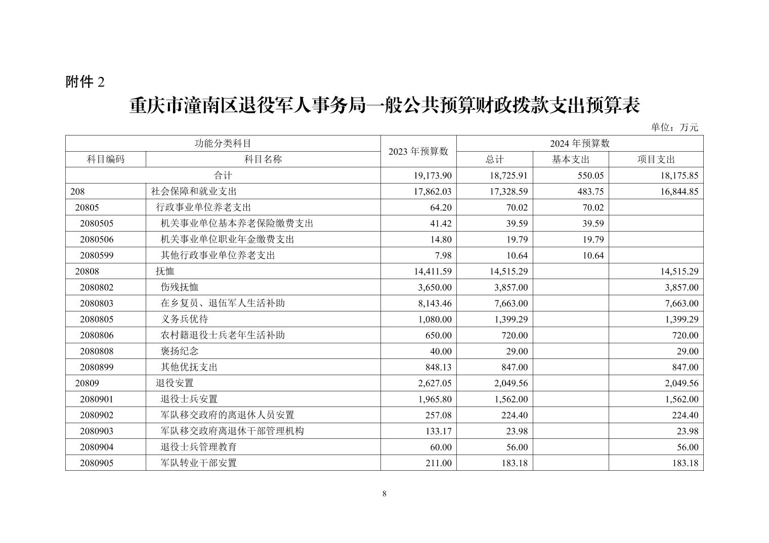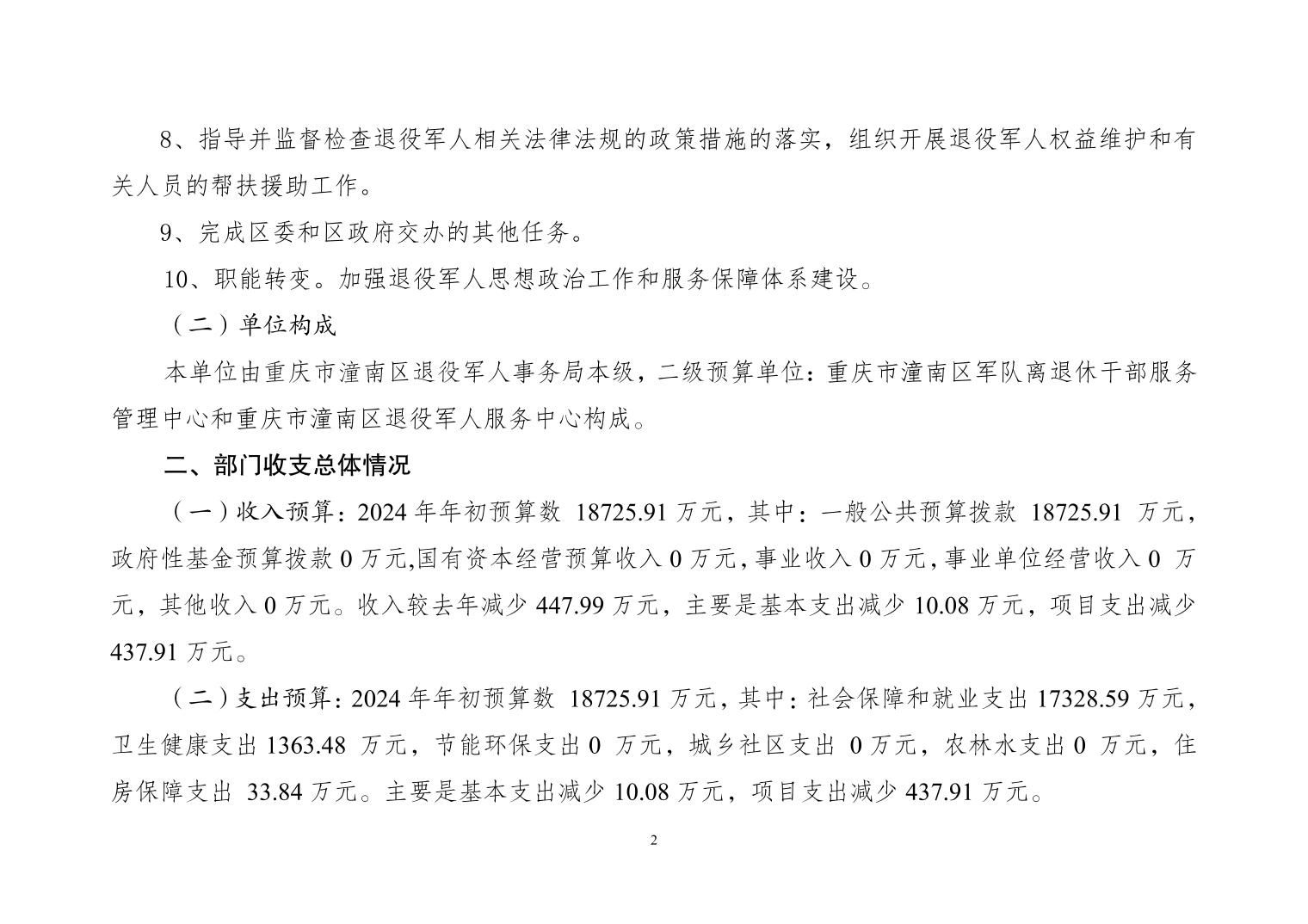 重庆市潼南区退役军人事务局2024年部门预算公开
