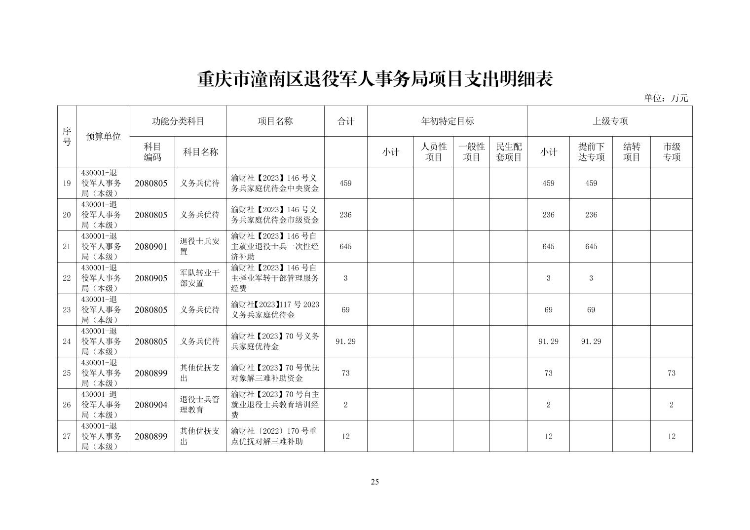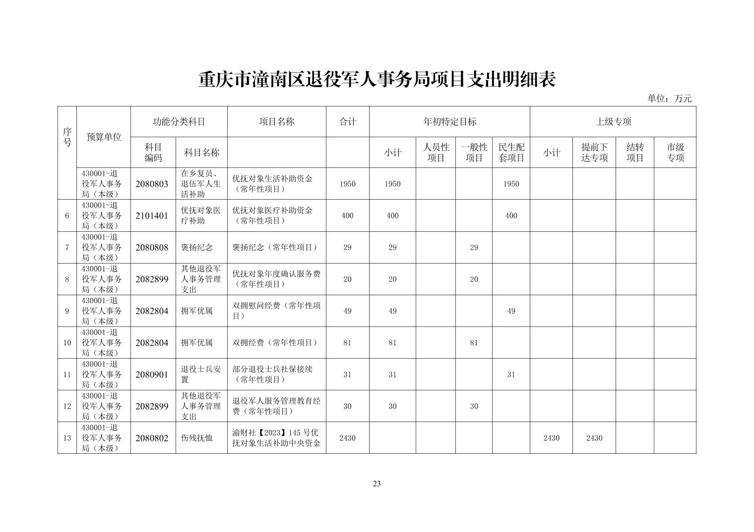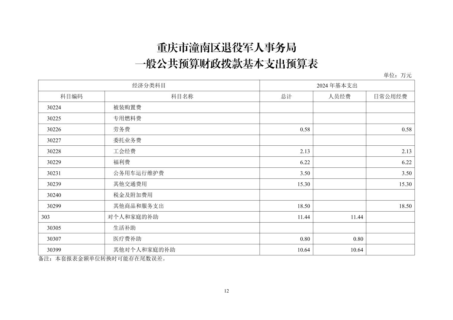 重庆市潼南区退役军人事务局2024年部门预算公开