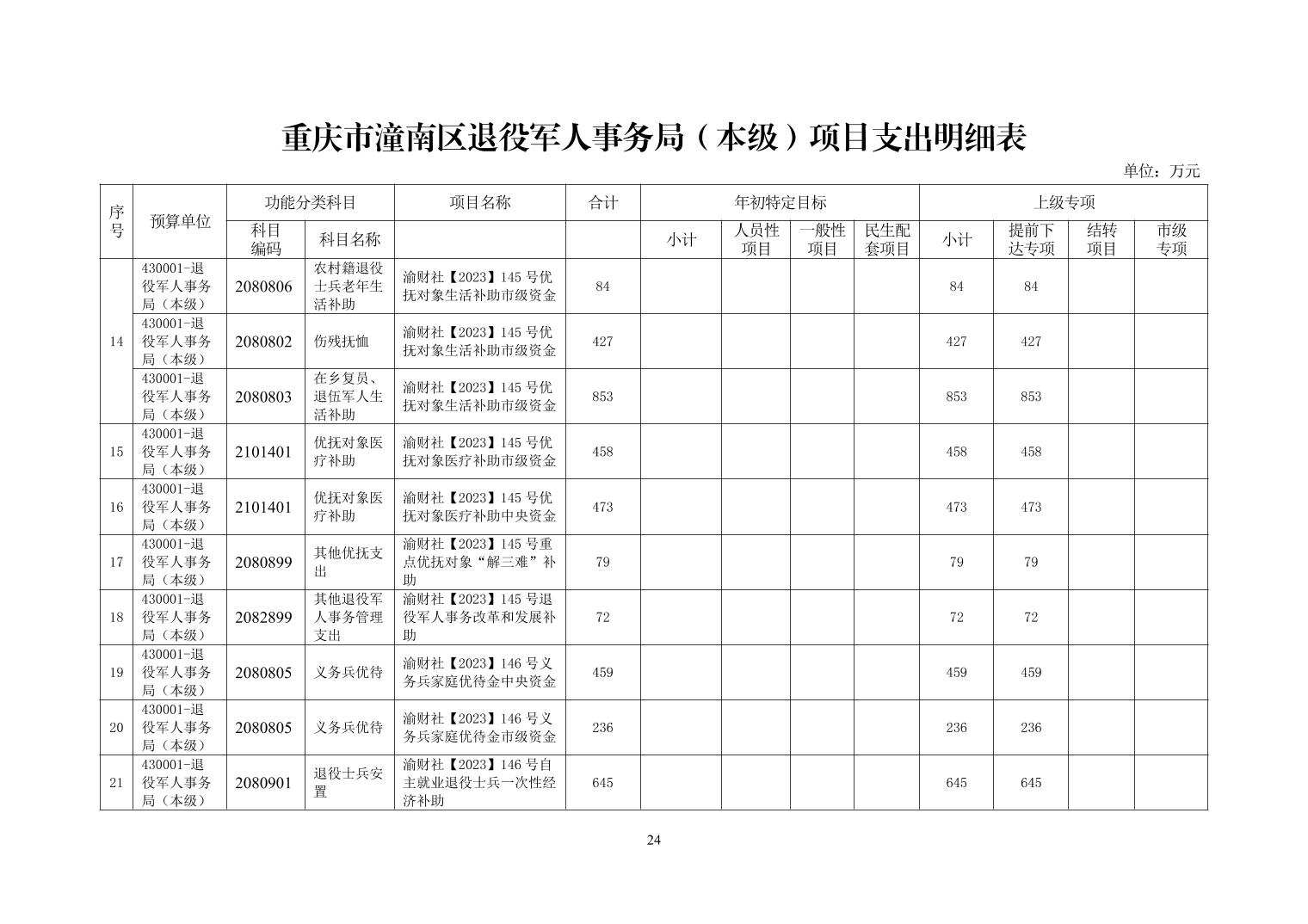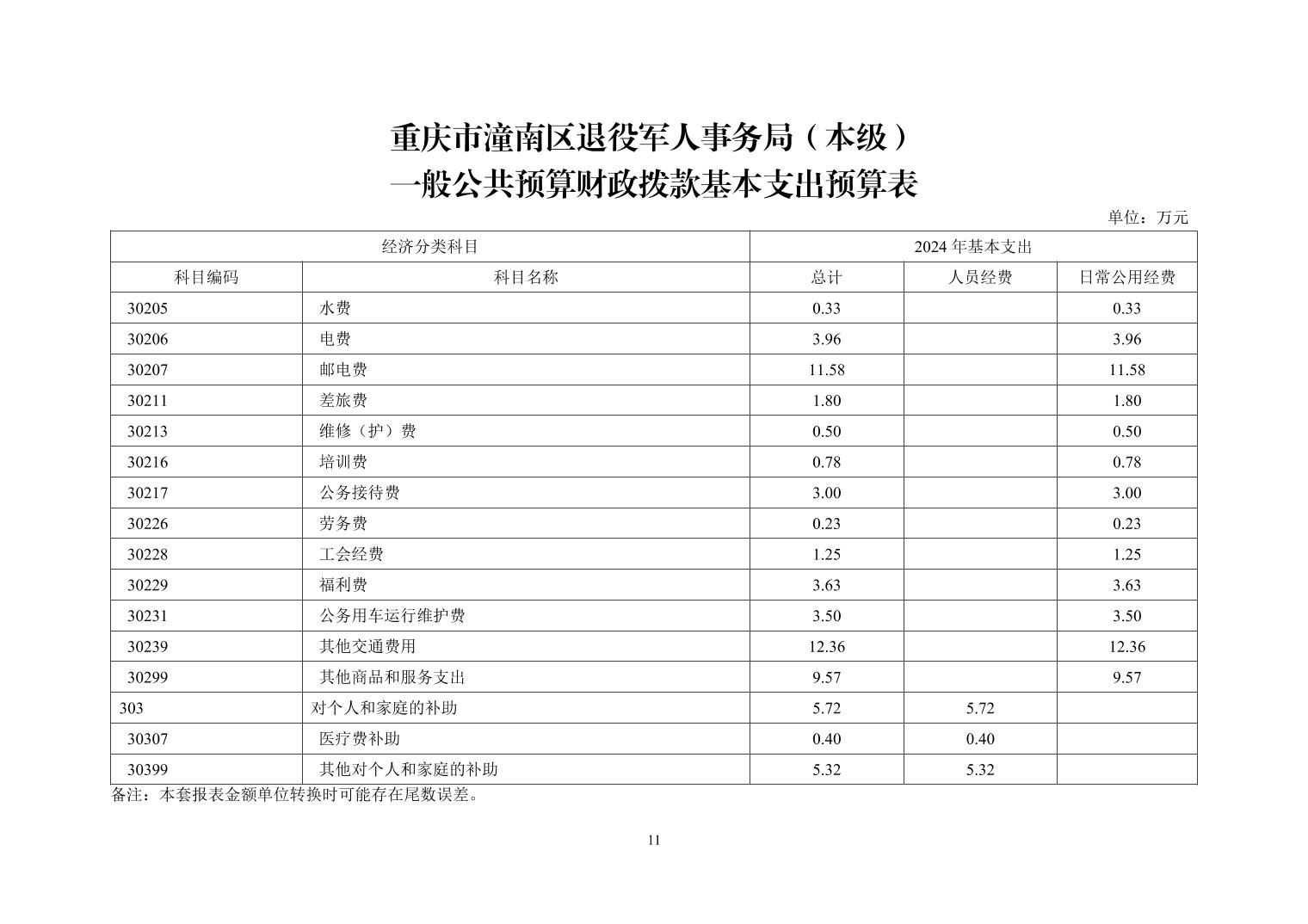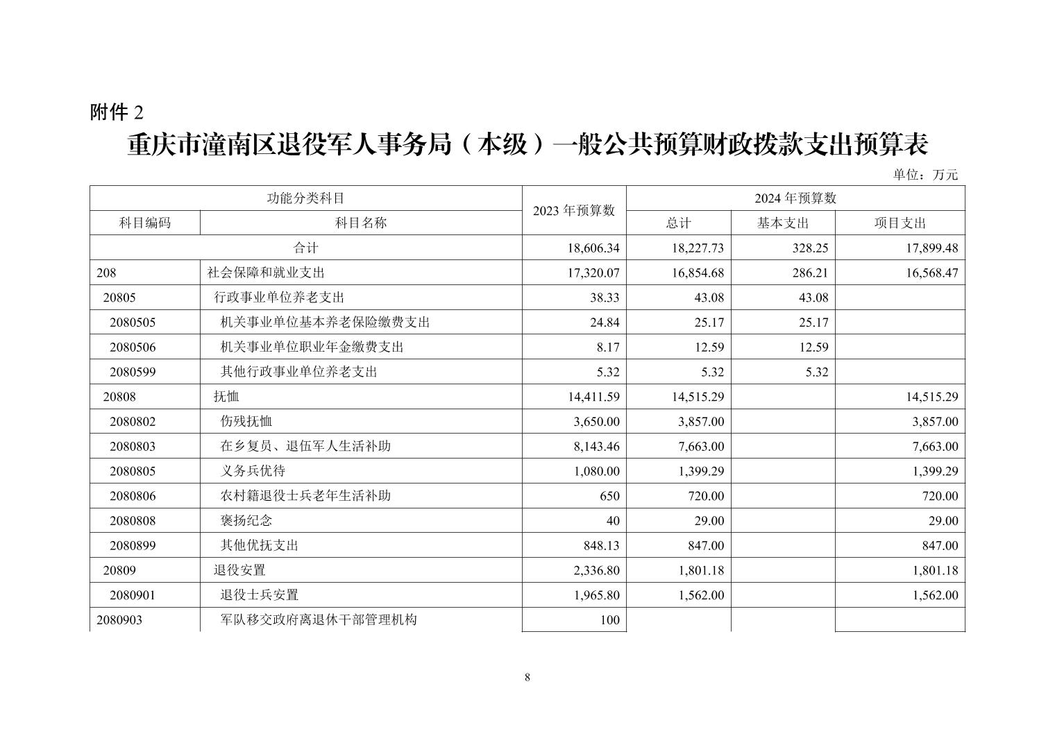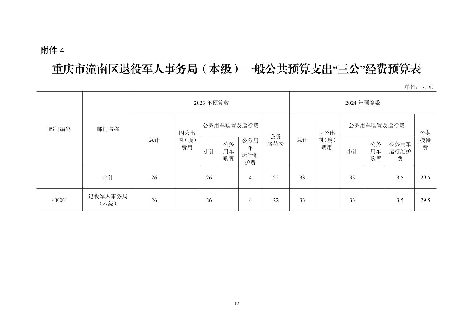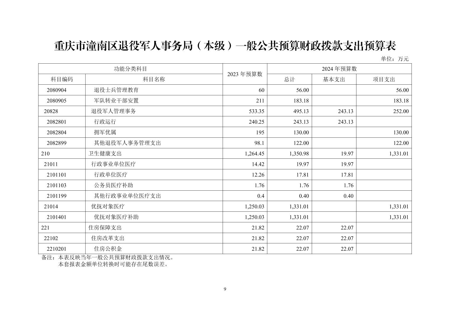 重庆市潼南区退役军人事务局(本级)2024年单位预算公开