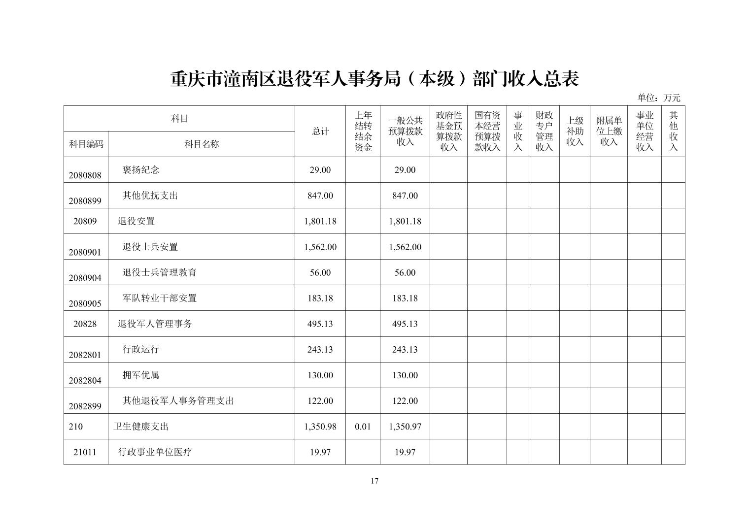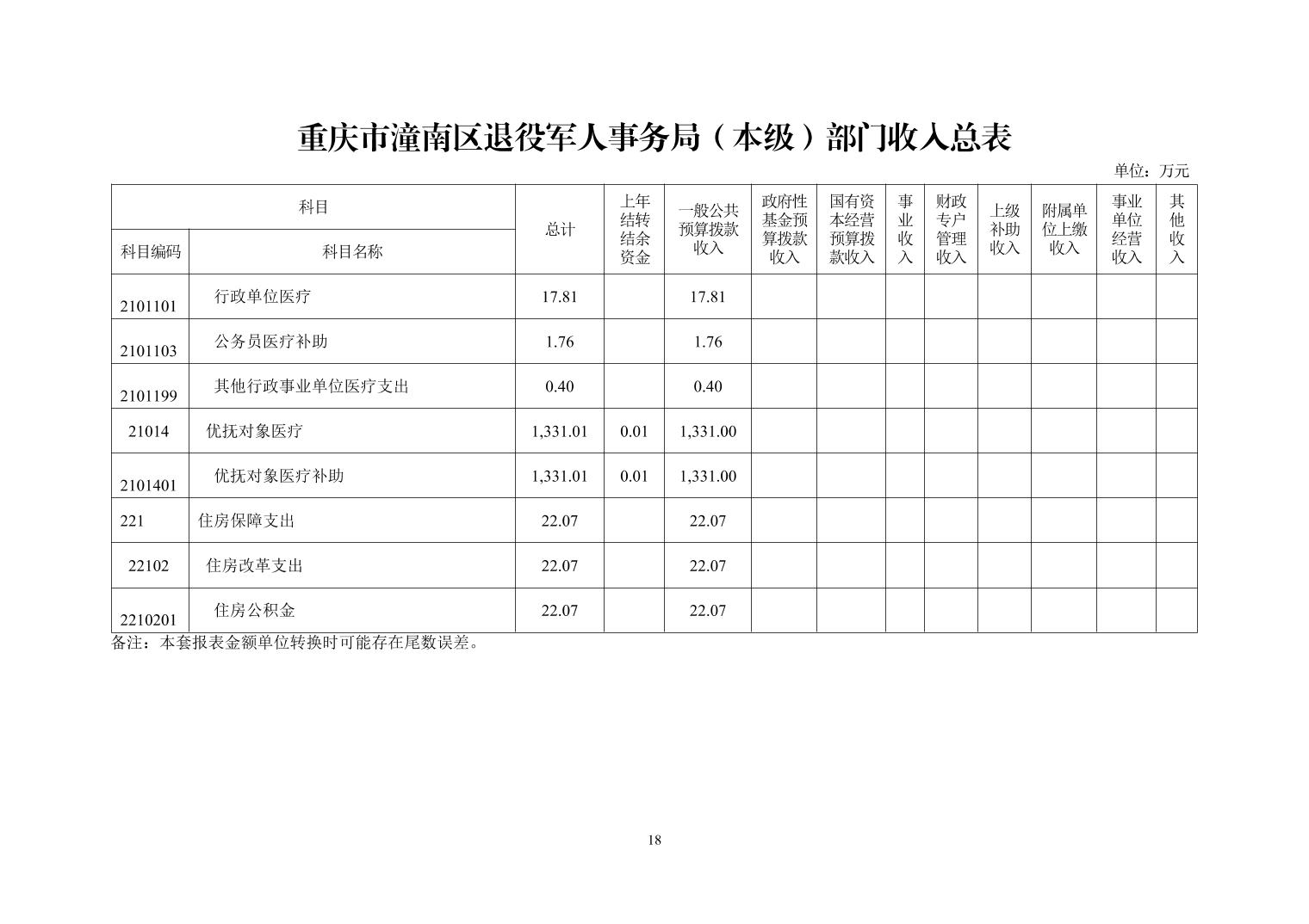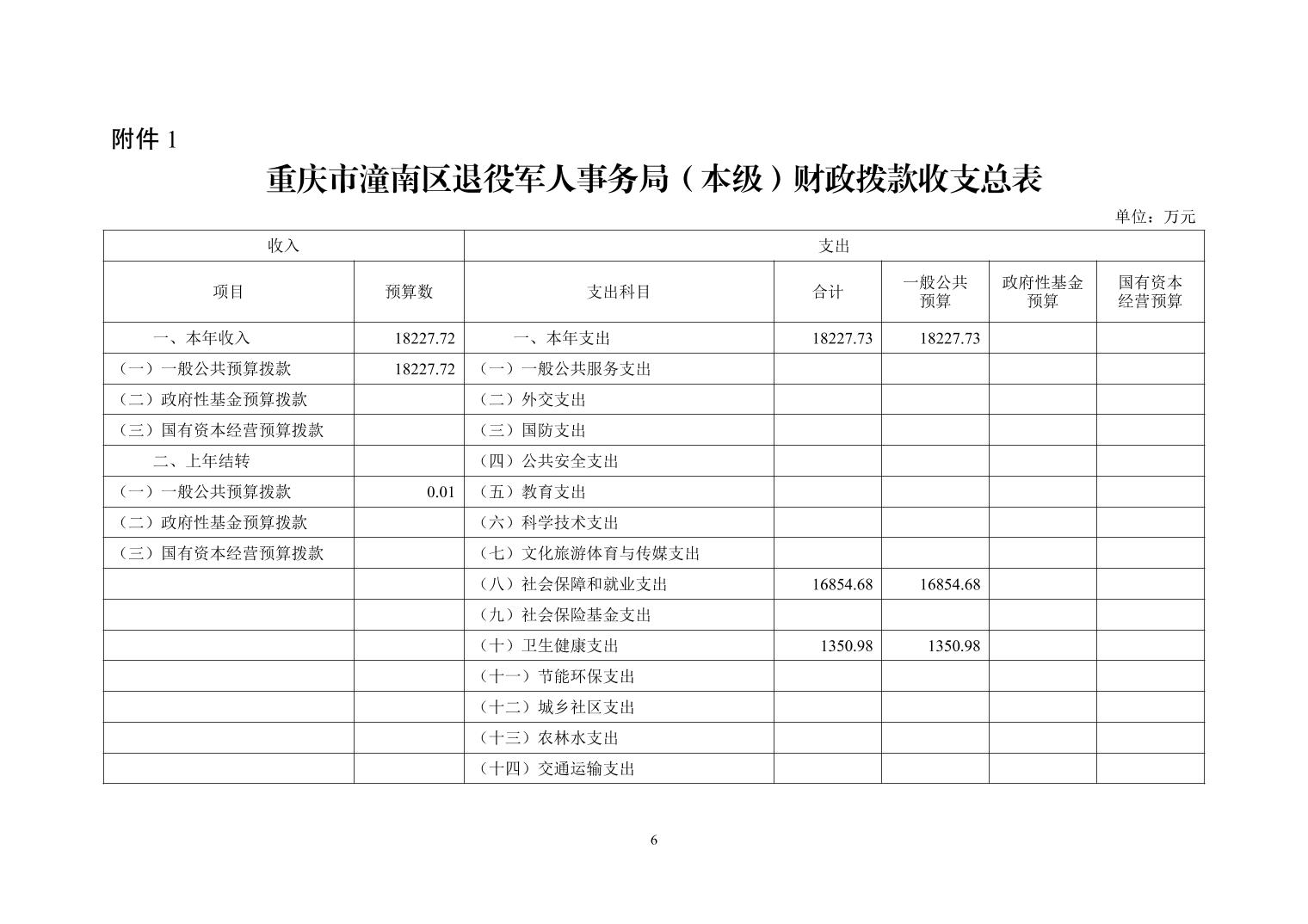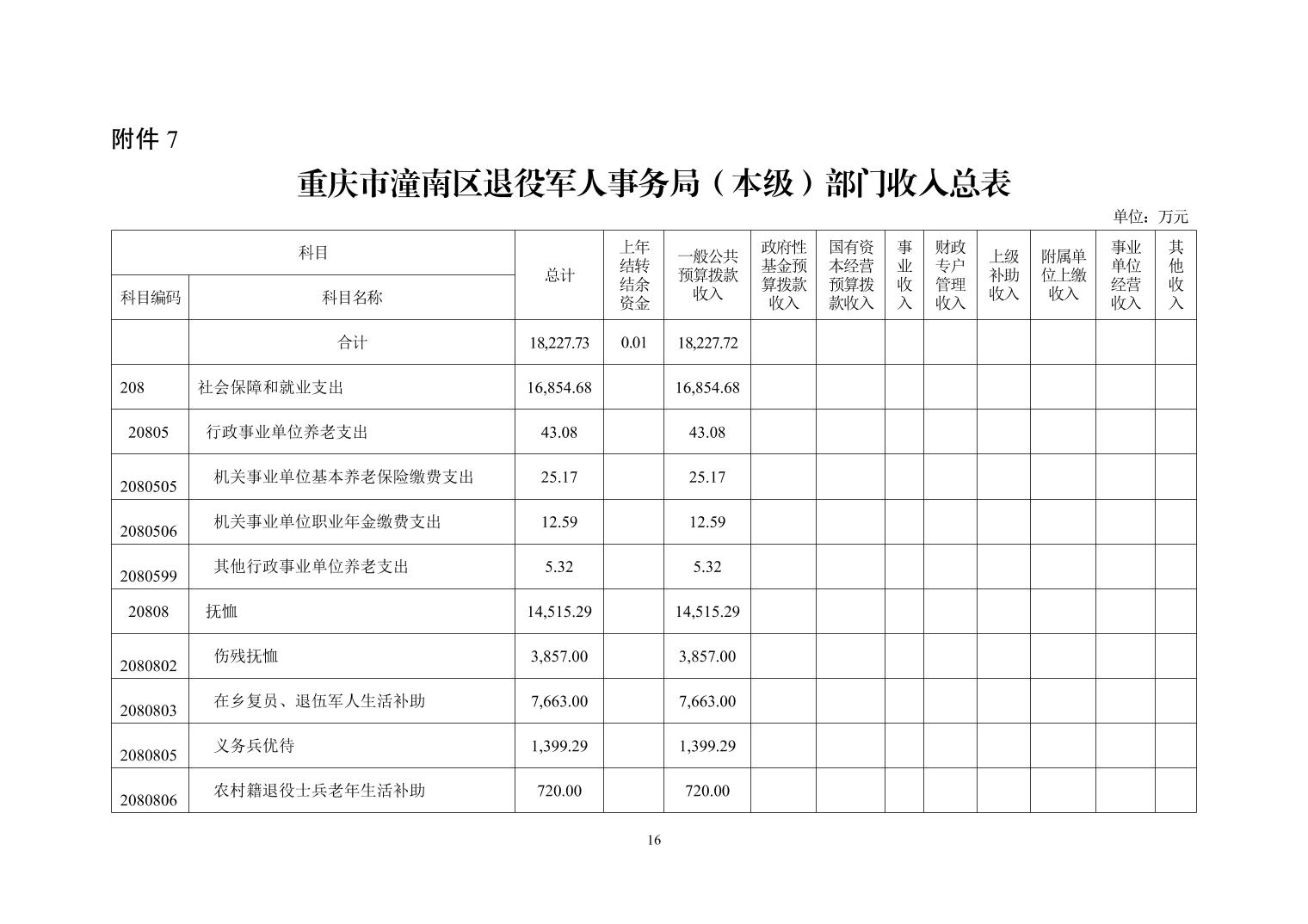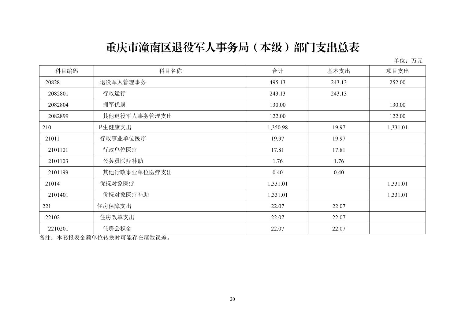 重庆市潼南区退役军人事务局(本级)2024年单位预算公开