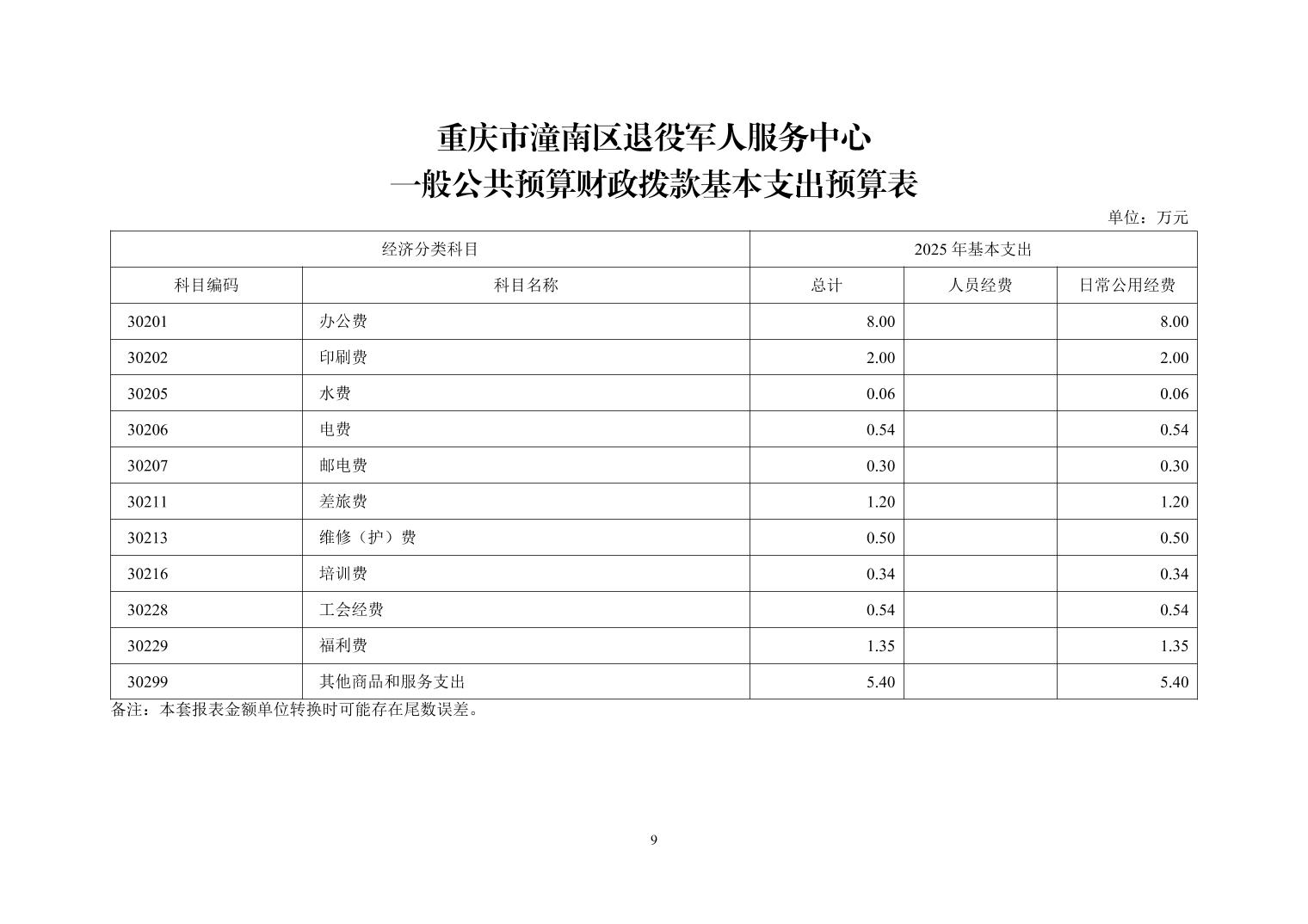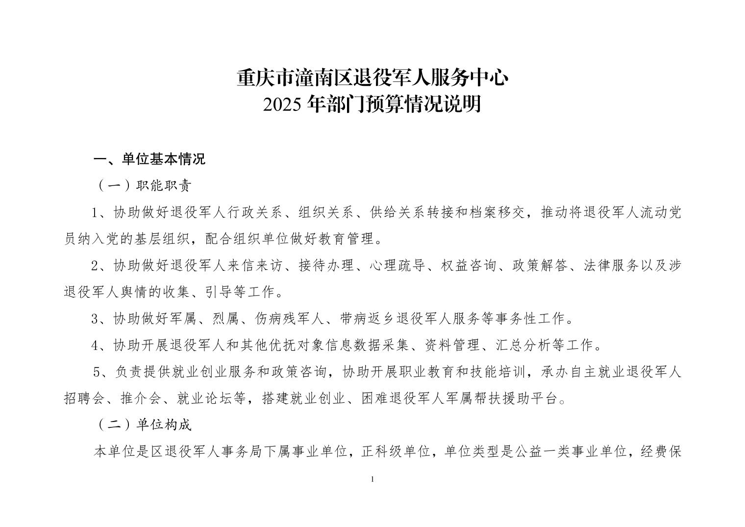 重庆市潼南区退役军人服务中心2025年单位预算公开