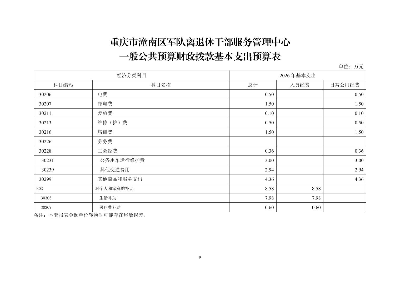 重庆市潼南区军队离退休干部服务管理中心2026年单位预算公开.pdf