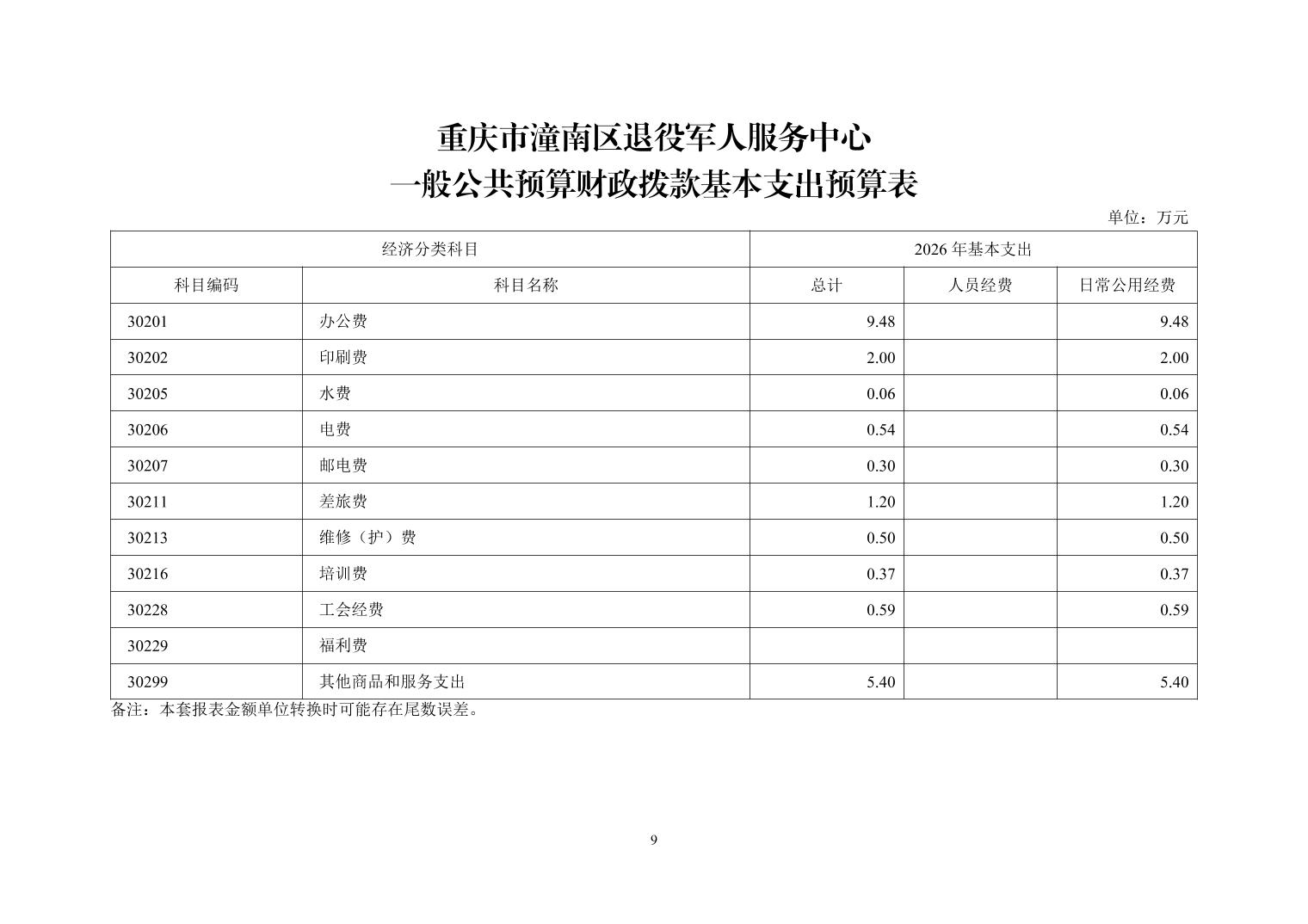 重庆市潼南区退役军人服务中心2026年单位预算公开.pdf