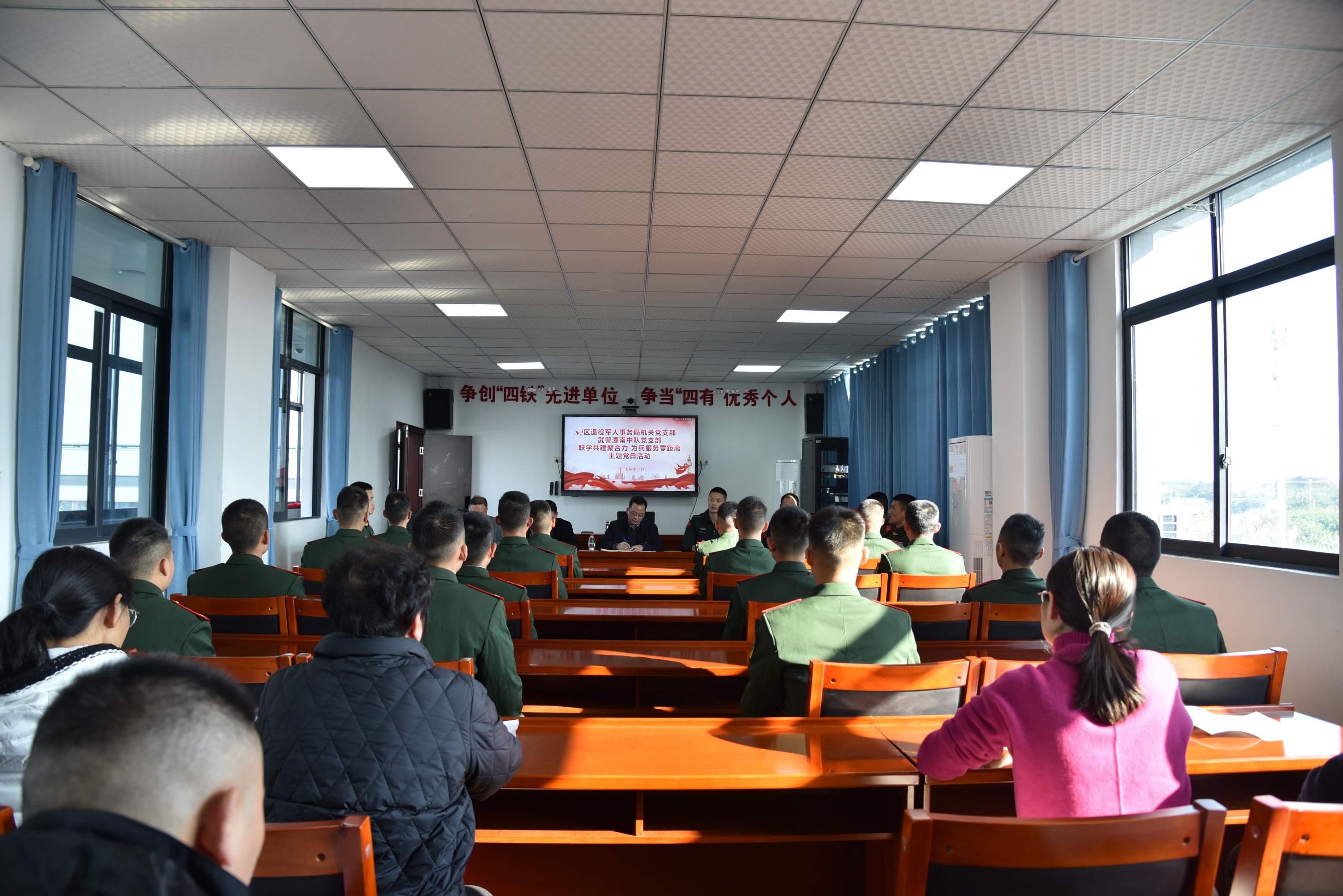 活动伊始,双方党员共同学习了习近平总书记近期重要讲话和重要指示精神,专题学习了党的二十届四中全会精神,重点围绕加强国防和军队现代化建设、做好退役军人服务保障工作、巩固发展新时代军政军民团结等内容进行了深入学习和研讨。通过联学,双方党员进一步强化了理论武装,凝聚了思想共识,增强了以实际行动忠诚拥护“两个确立”、坚决做到“两个维护”的政治自觉、思想自觉和行动自觉,夯实了共同奋斗的思想根基。
