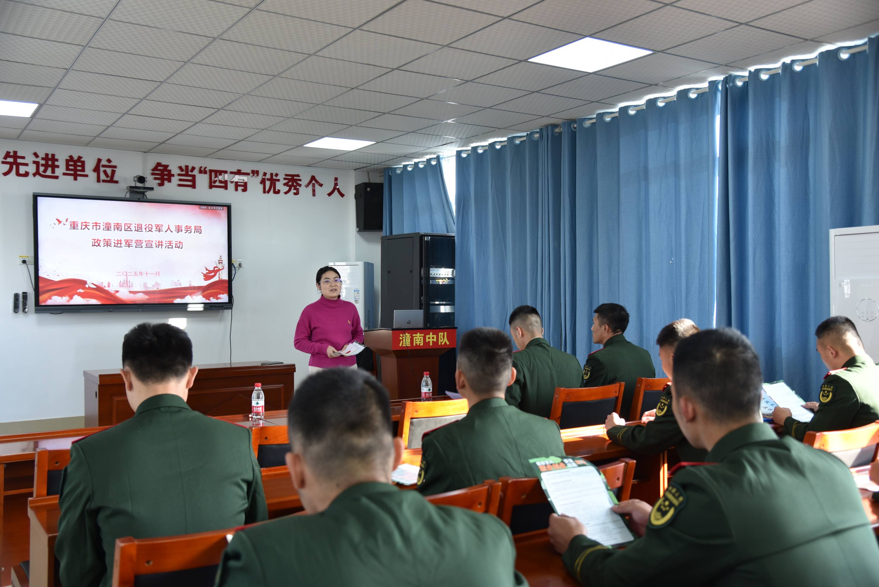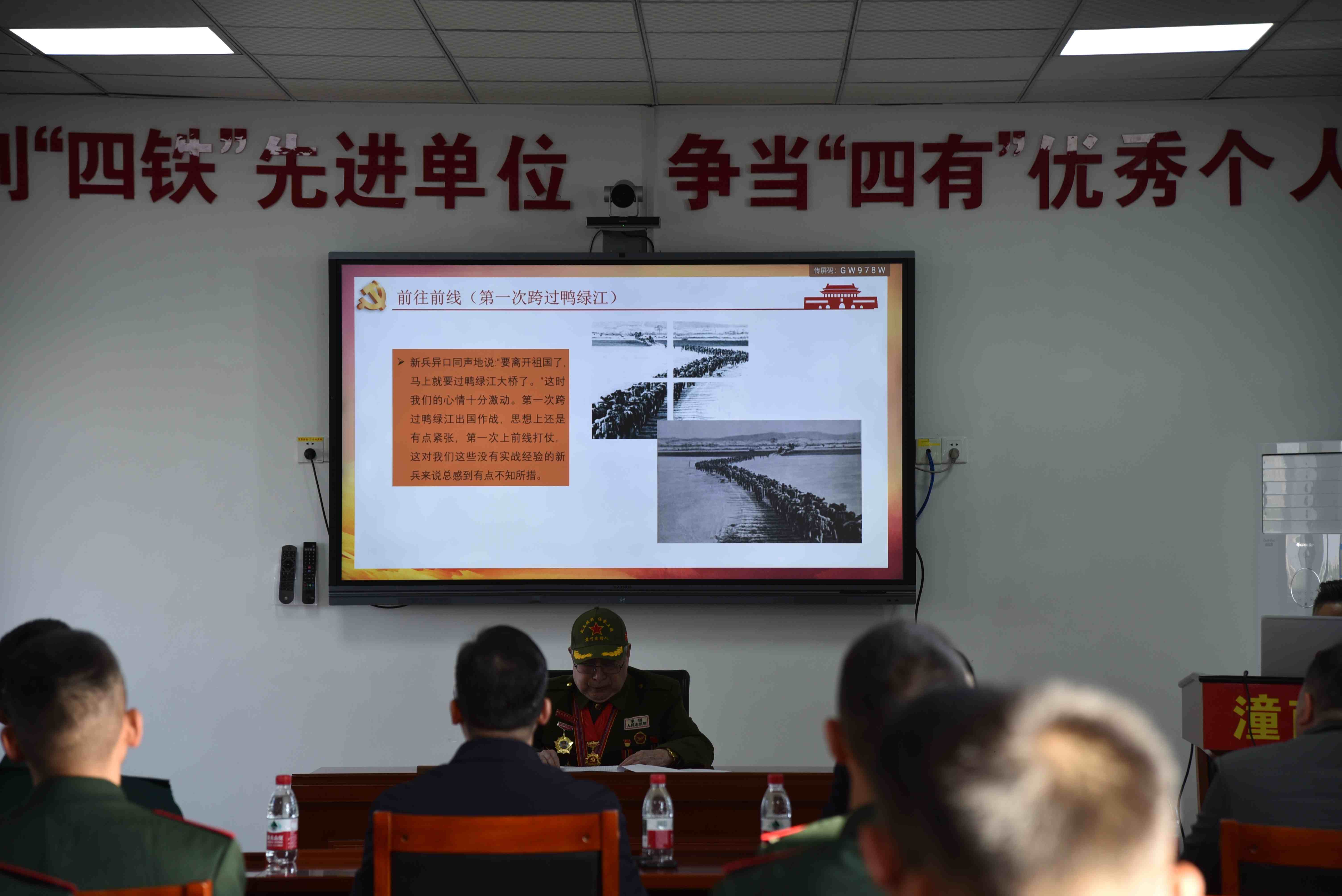 学习结束后,“潼城老班长”故事宣讲团走进武警潼南中队营区,为武警官兵和党员干部带来了一场感人至深、催人奋进的红色故事宣讲会。宣讲团抗美援朝老兵生动讲述了革命战争年代的峥嵘岁月和先进事迹。一段段饱含热血与忠诚的往事,一个个展现初心与担当的故事,深深打动了在场的每一位,现场不时爆发出热烈掌声。这既是一次深刻的革命传统教育,也是一次生动的理想信念洗礼,既展现了退役军人“退役不褪色、建功新时代”的良好风貌,又有效激发了大家传承红色基因、担当强军重任的豪情壮志。