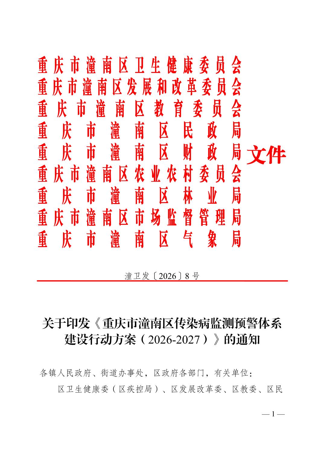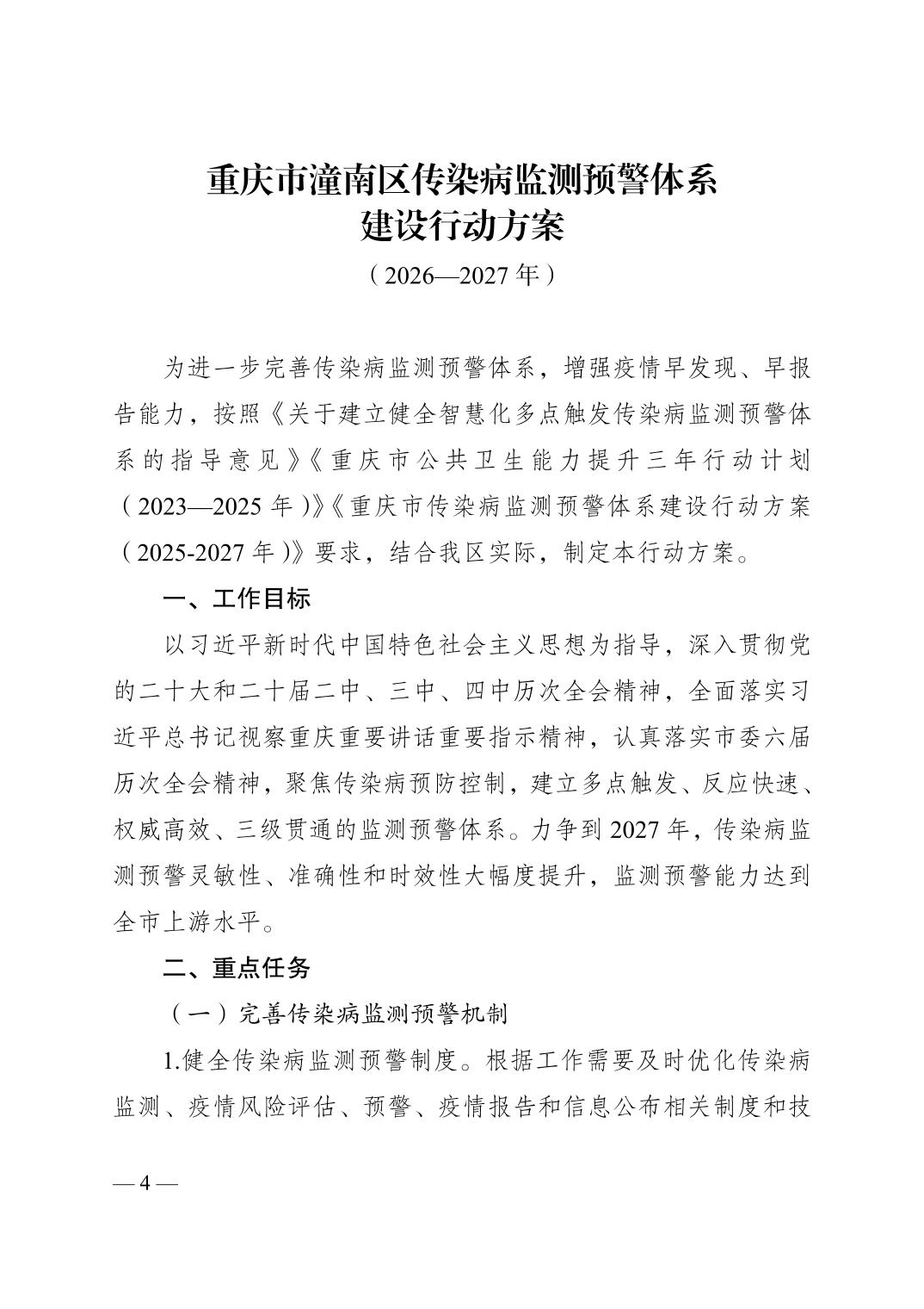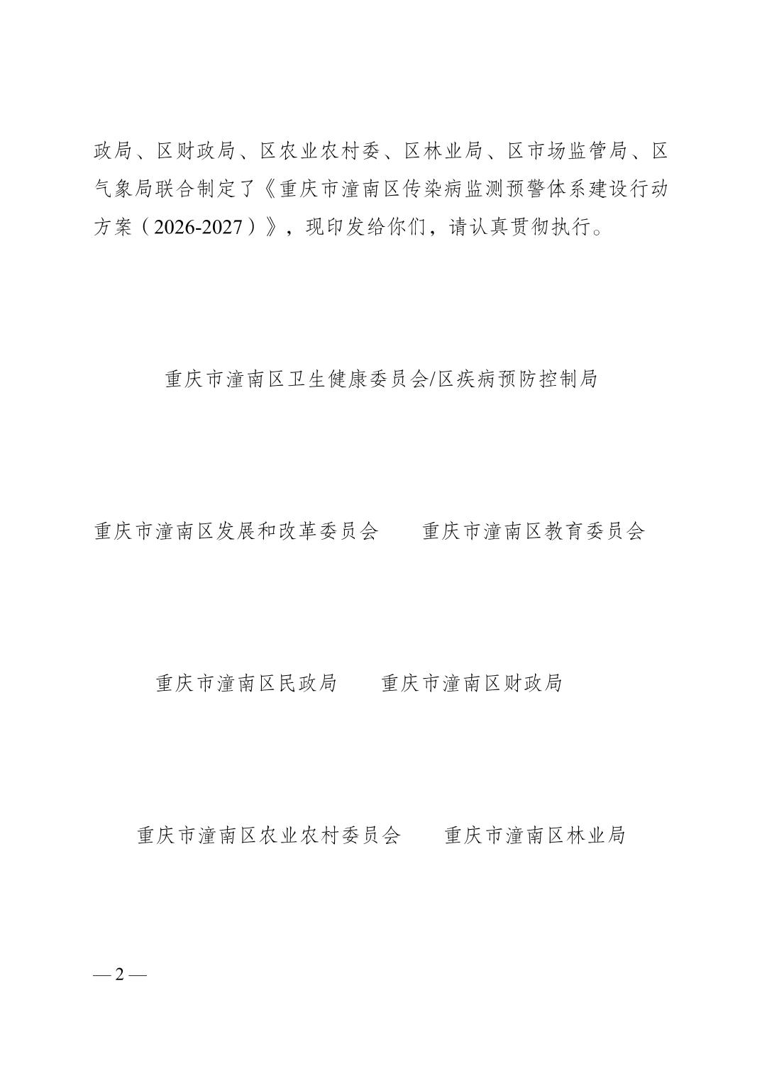 关于印发《重庆市潼南区传染病监测预警体系建设行动方案(2026-2027)》的通知