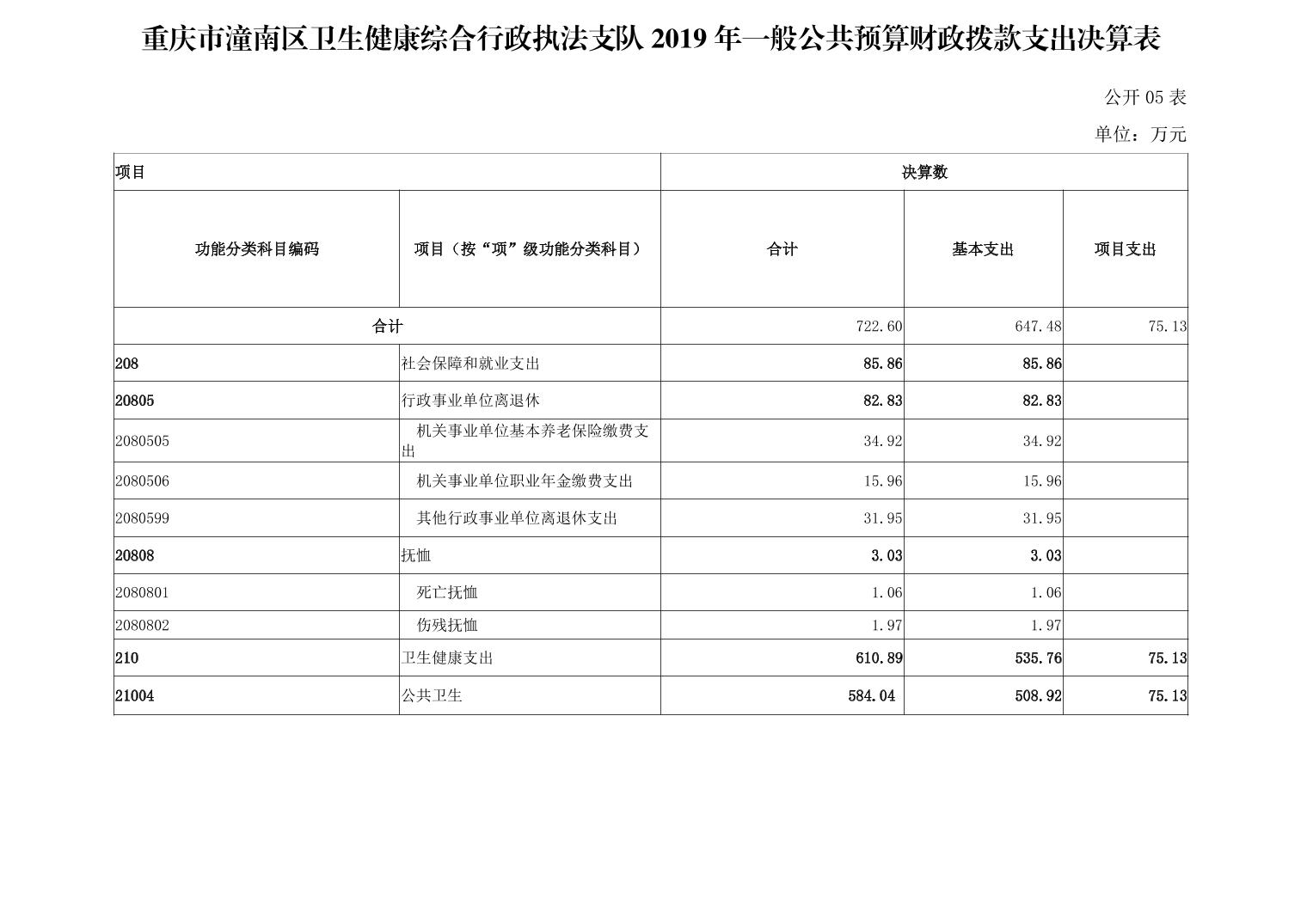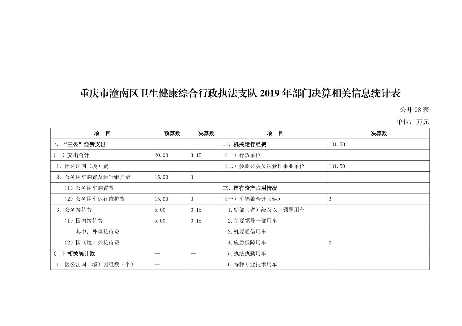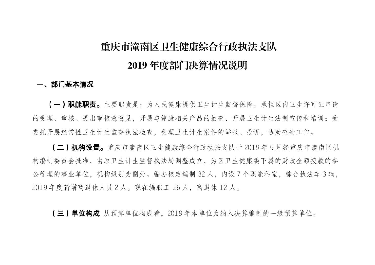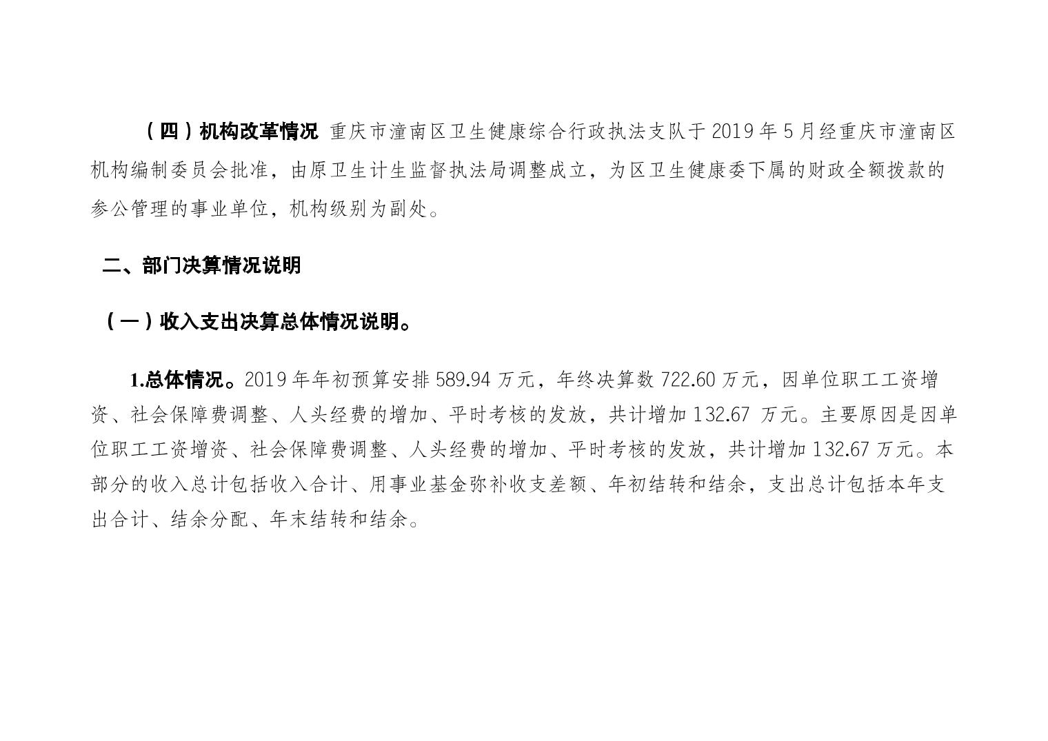 重庆市潼南区卫生健康综合行政执法支队2019年部门决算公开