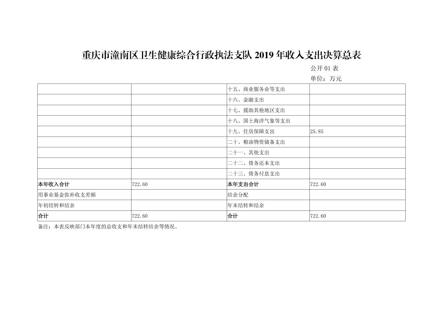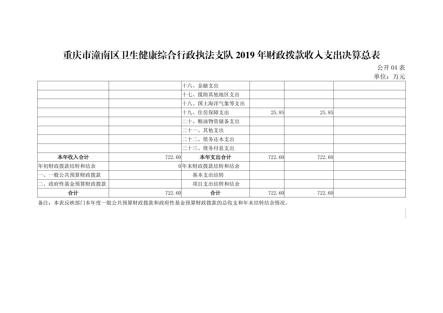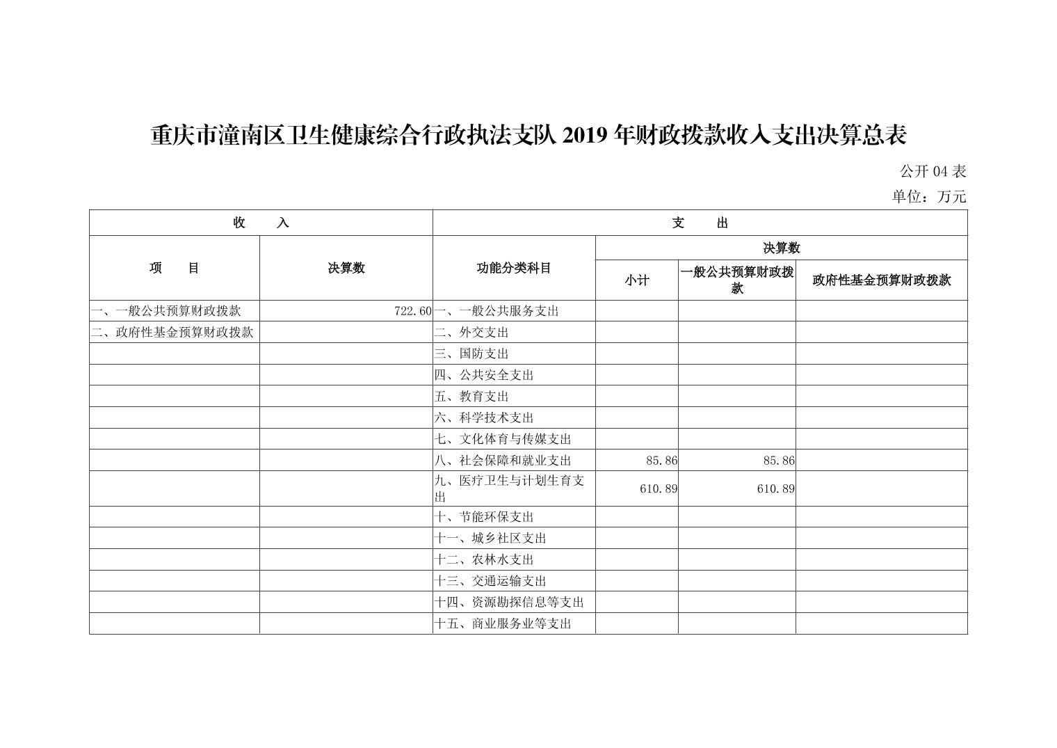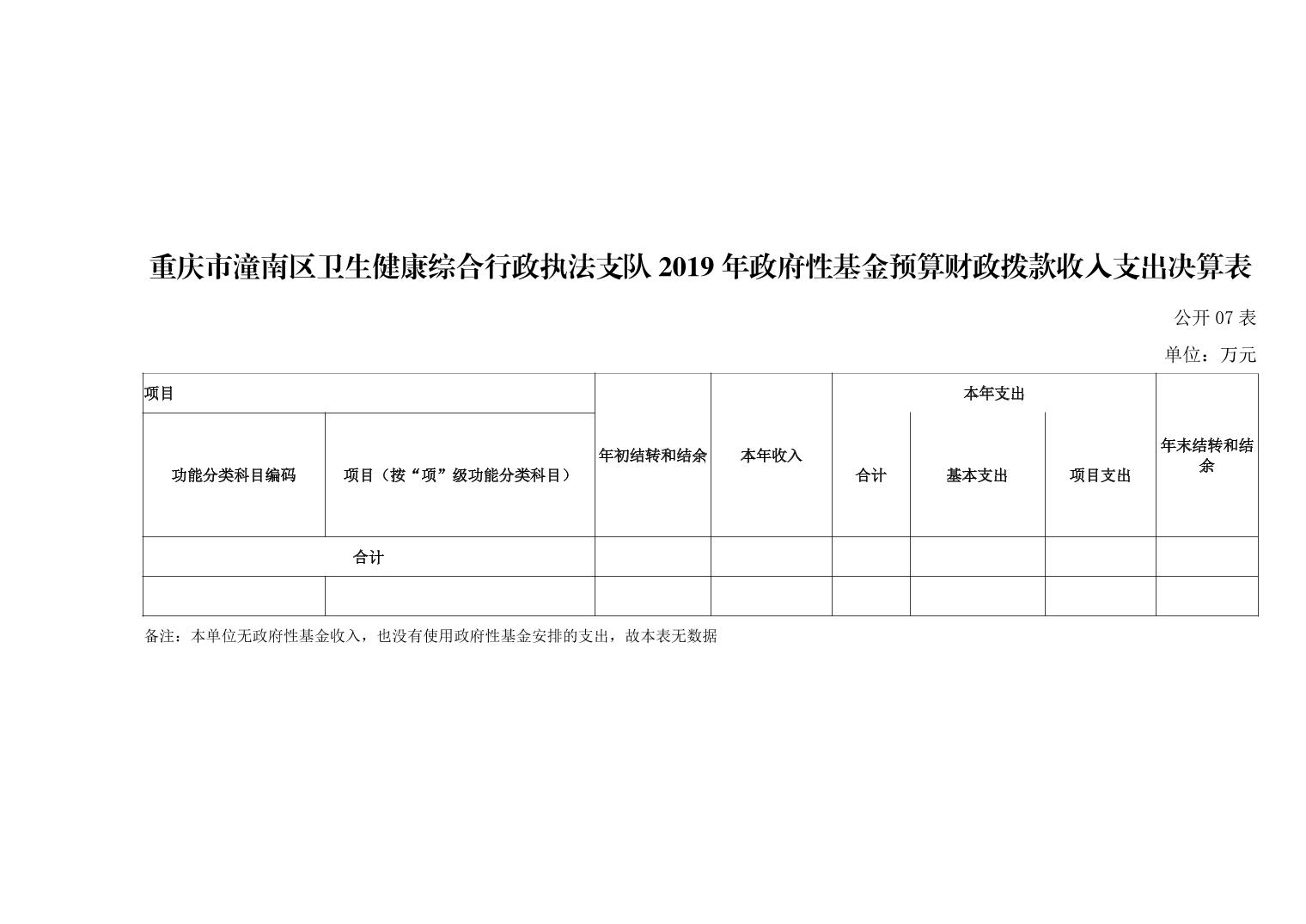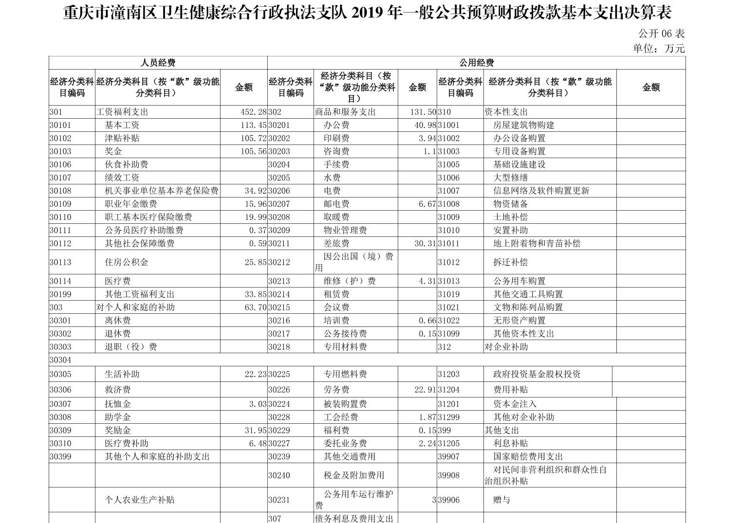 重庆市潼南区卫生健康综合行政执法支队2019年部门决算公开