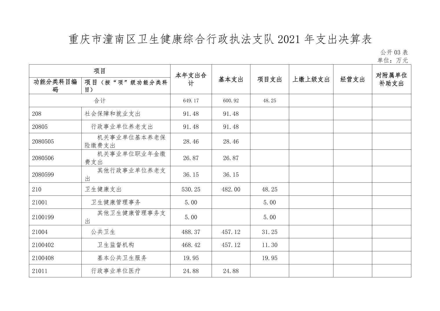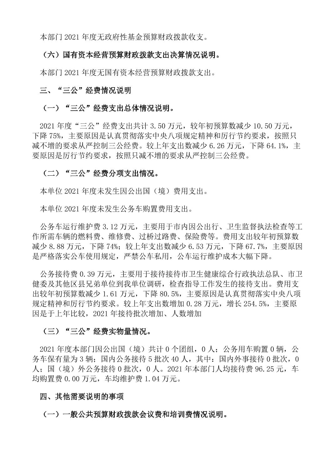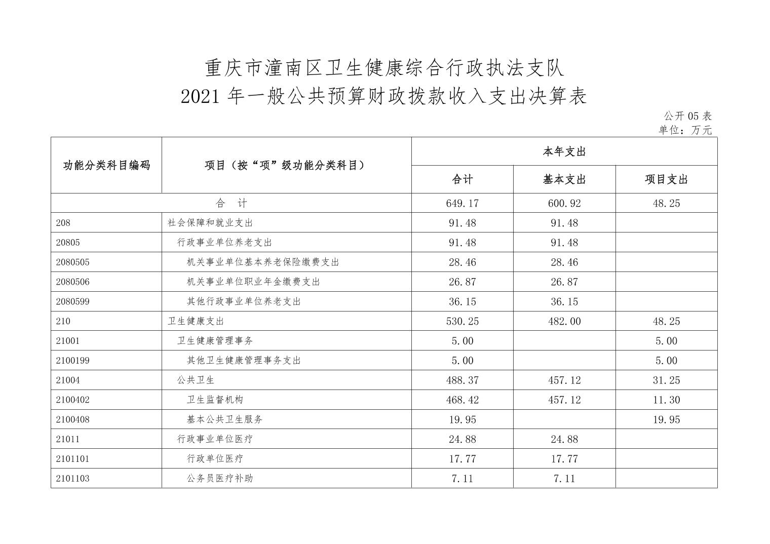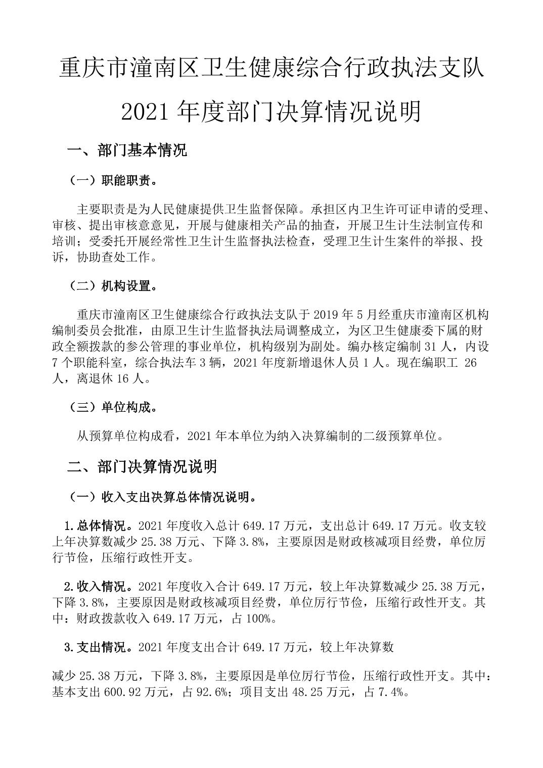 重庆市潼南区卫生健康综合行政执法支队2021年度部门决算公开