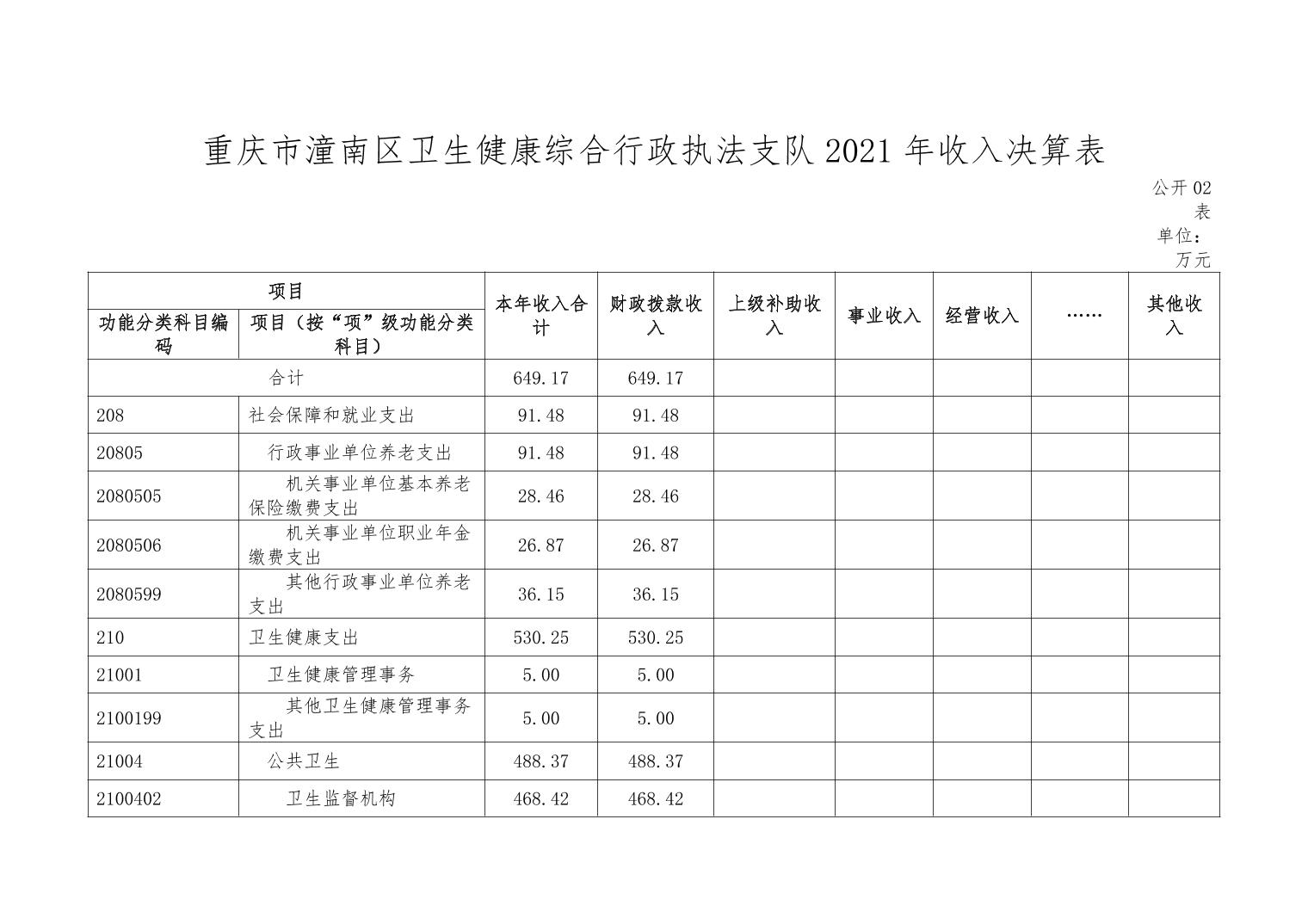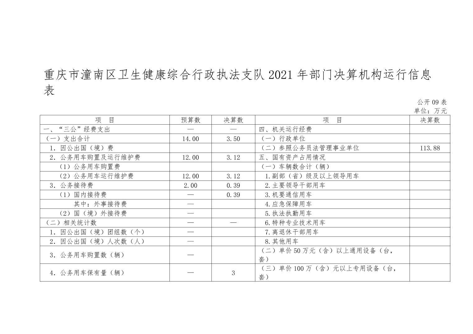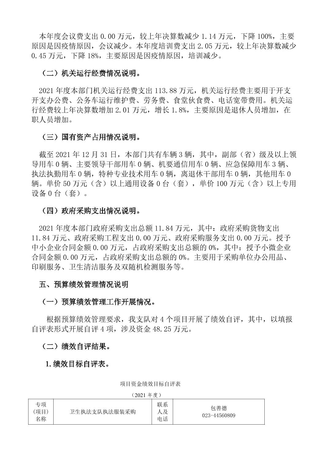 重庆市潼南区卫生健康综合行政执法支队2021年度部门决算公开