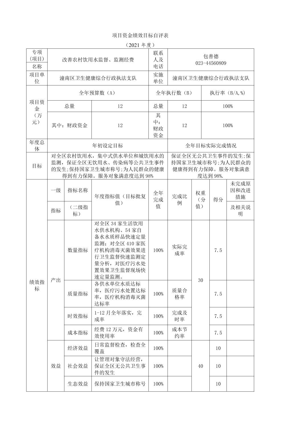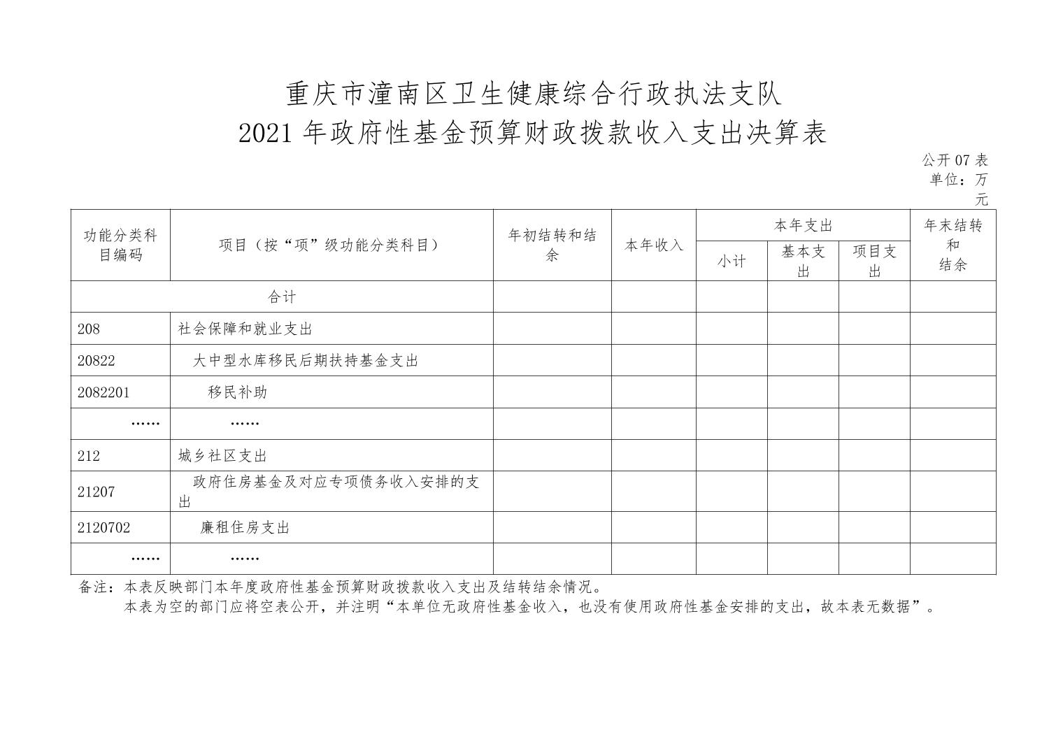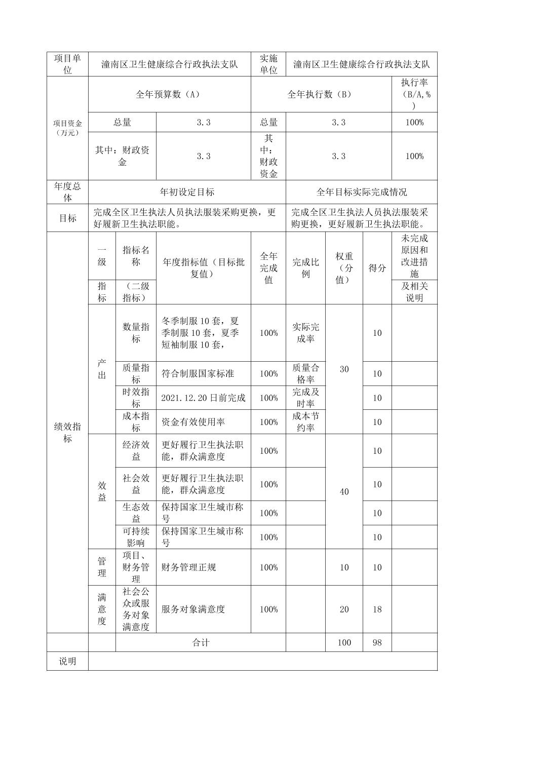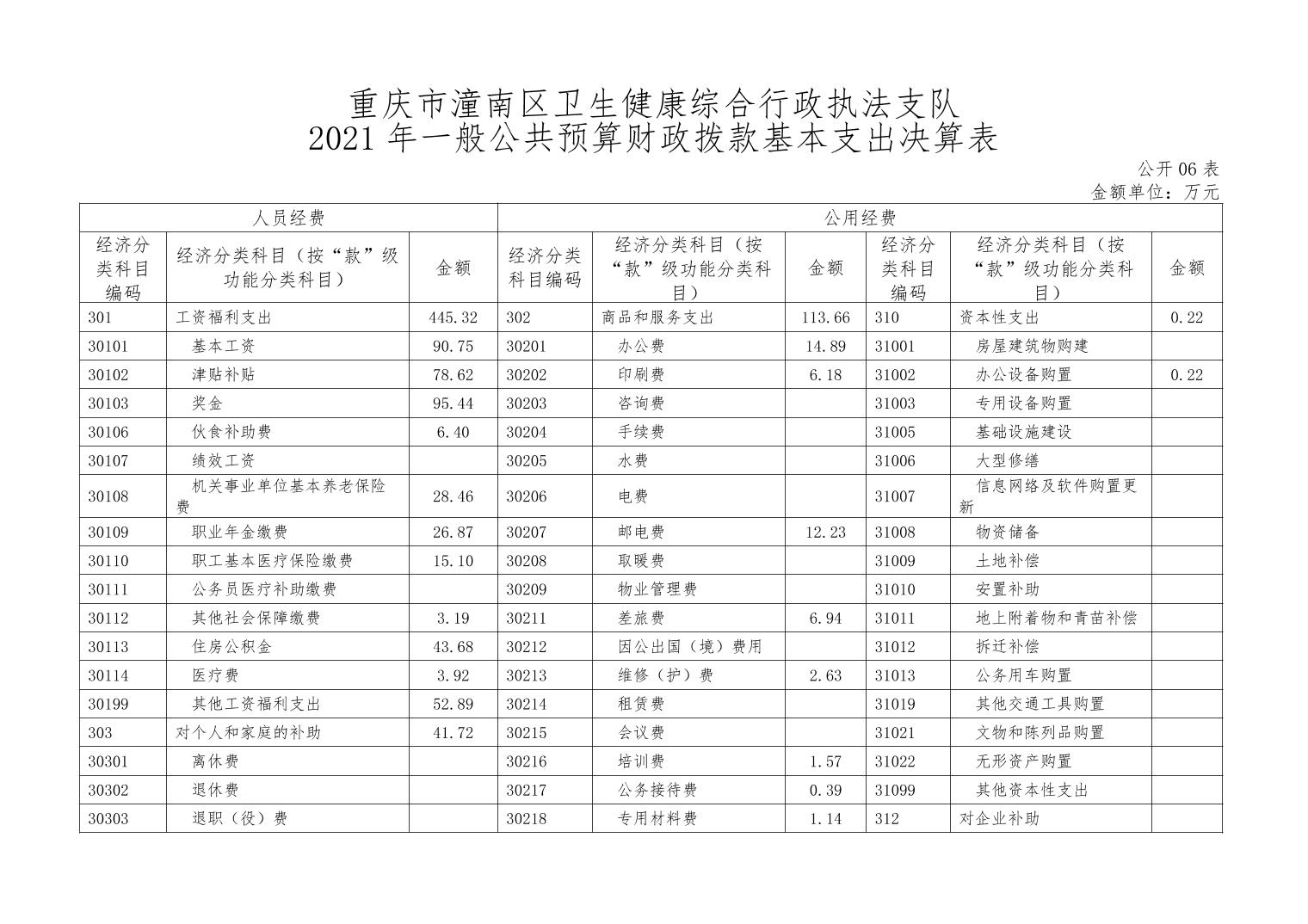 重庆市潼南区卫生健康综合行政执法支队2021年度部门决算公开