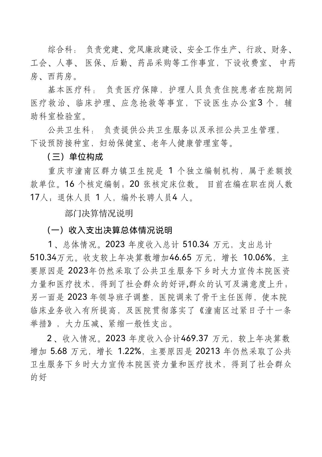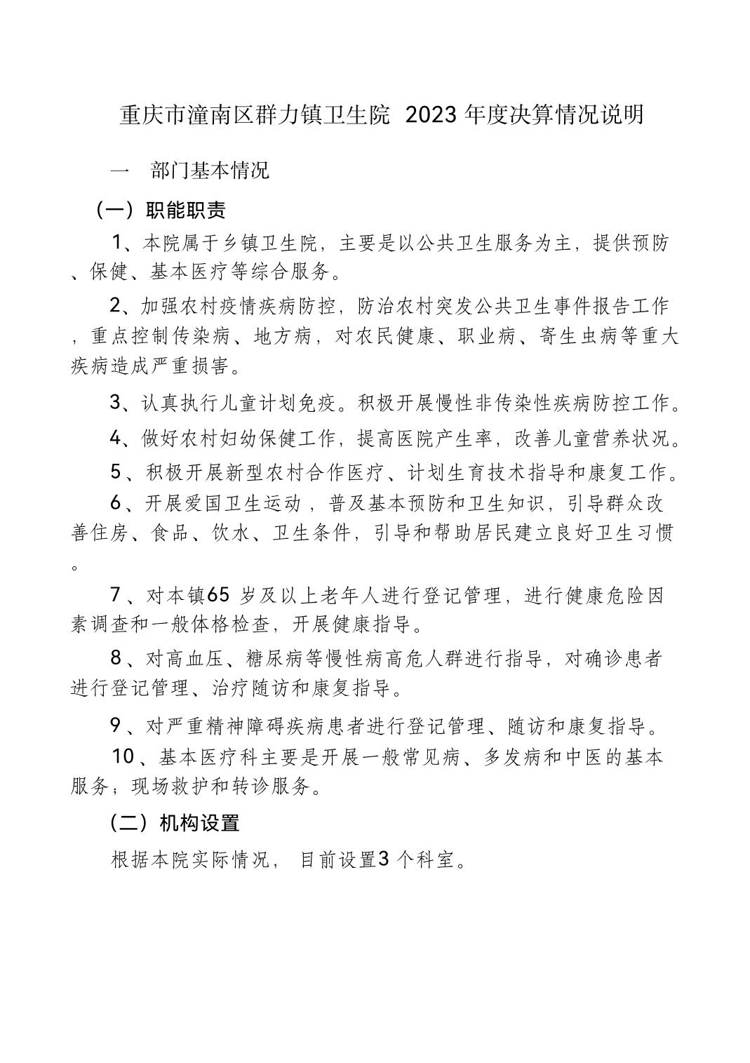 重庆市潼南区群力镇卫生院2023年度决算情况说明