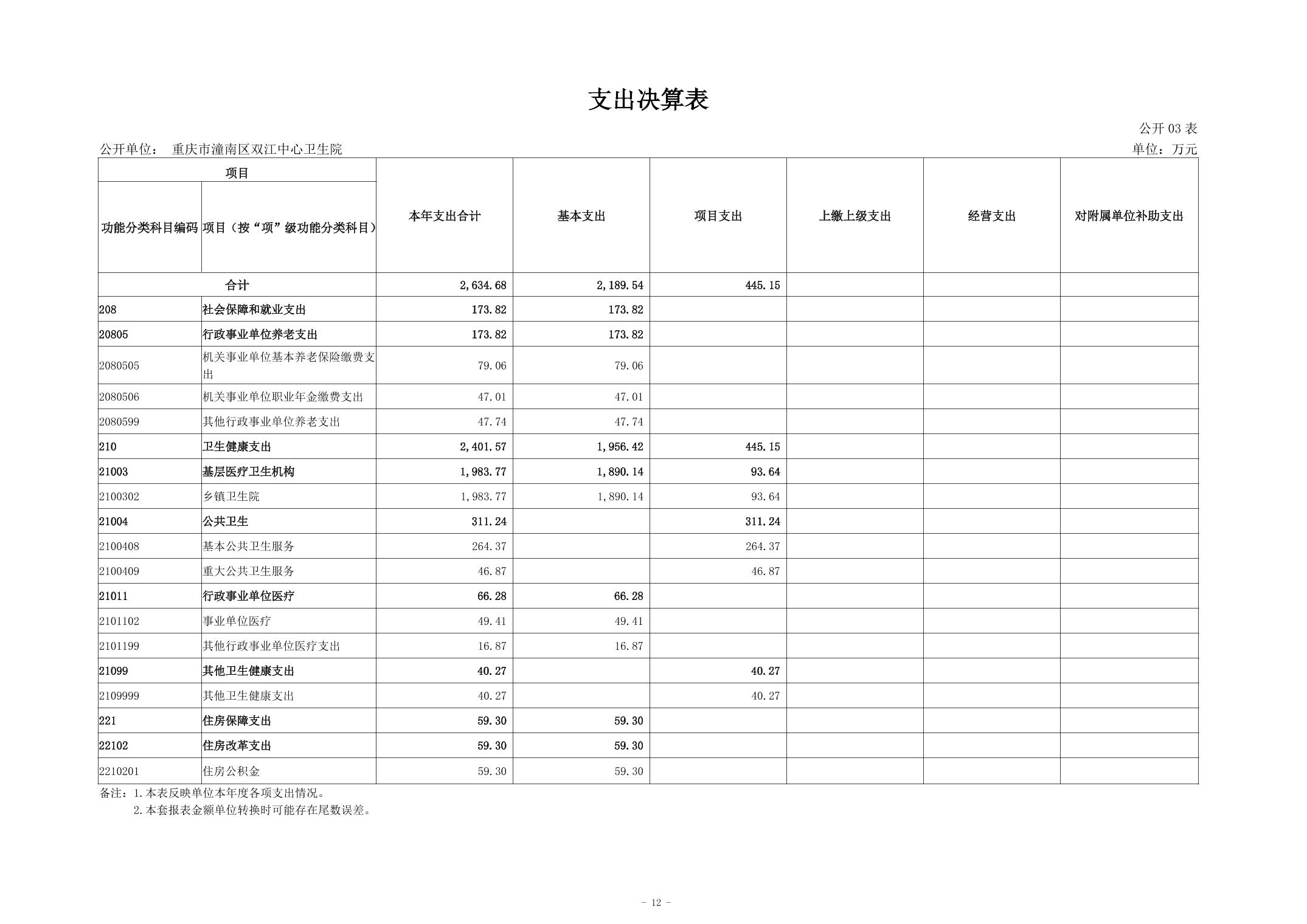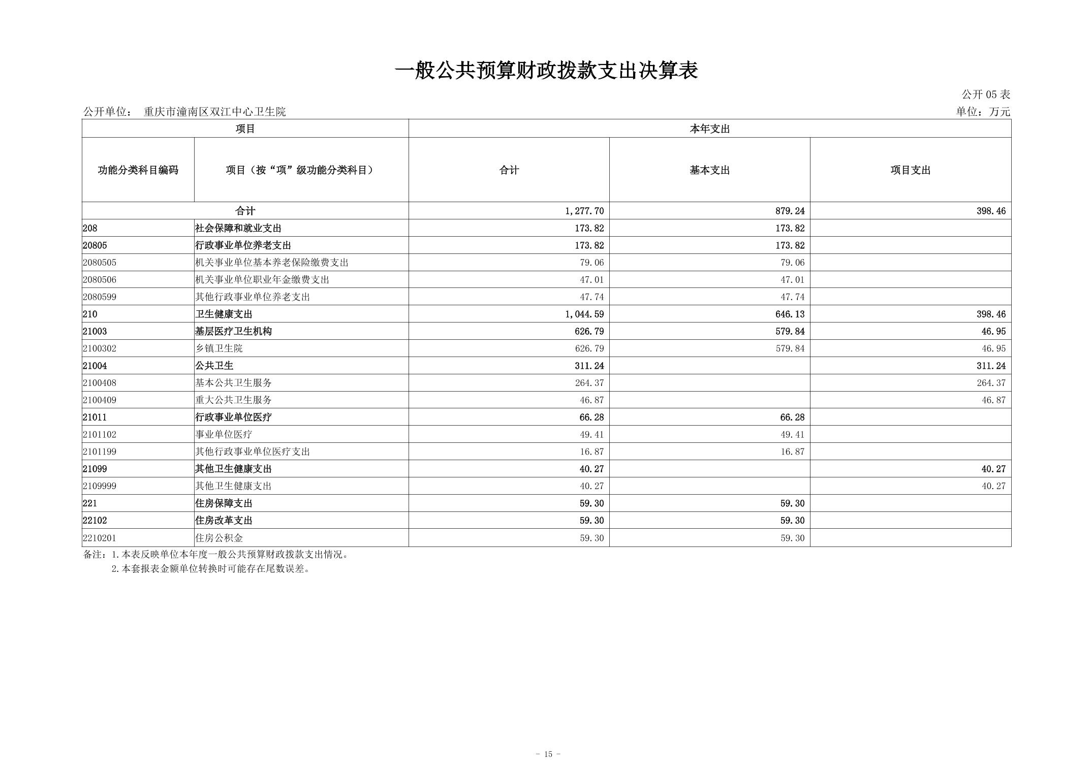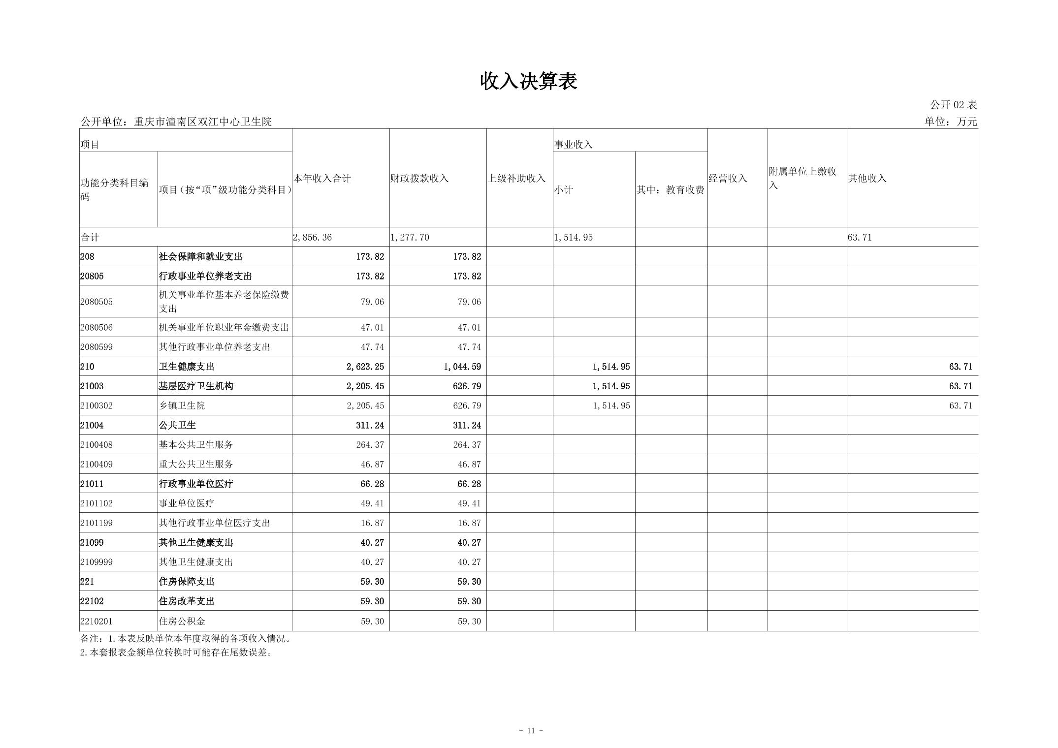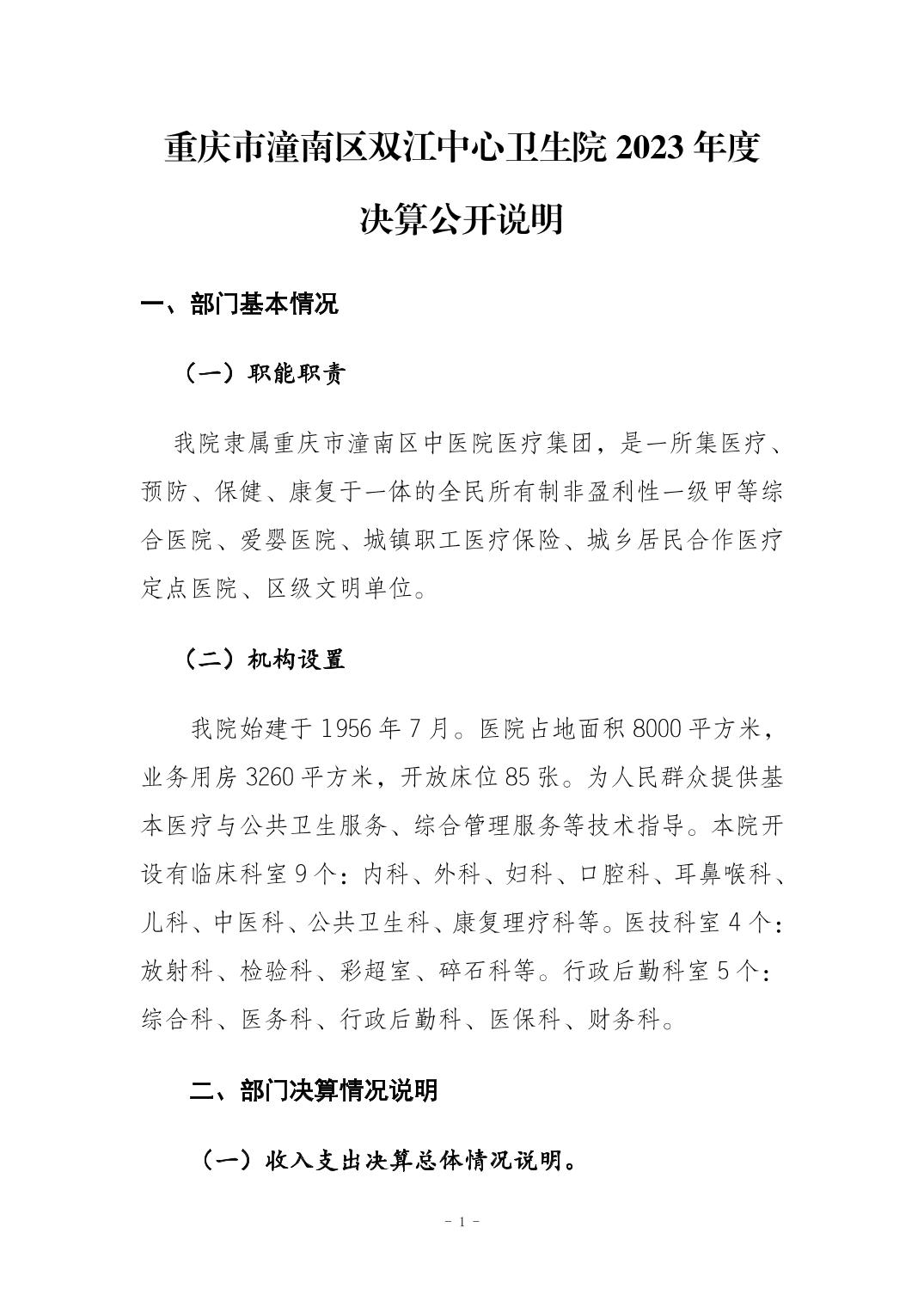 重庆市潼南区双江中心卫生院2023年度决算公开说明