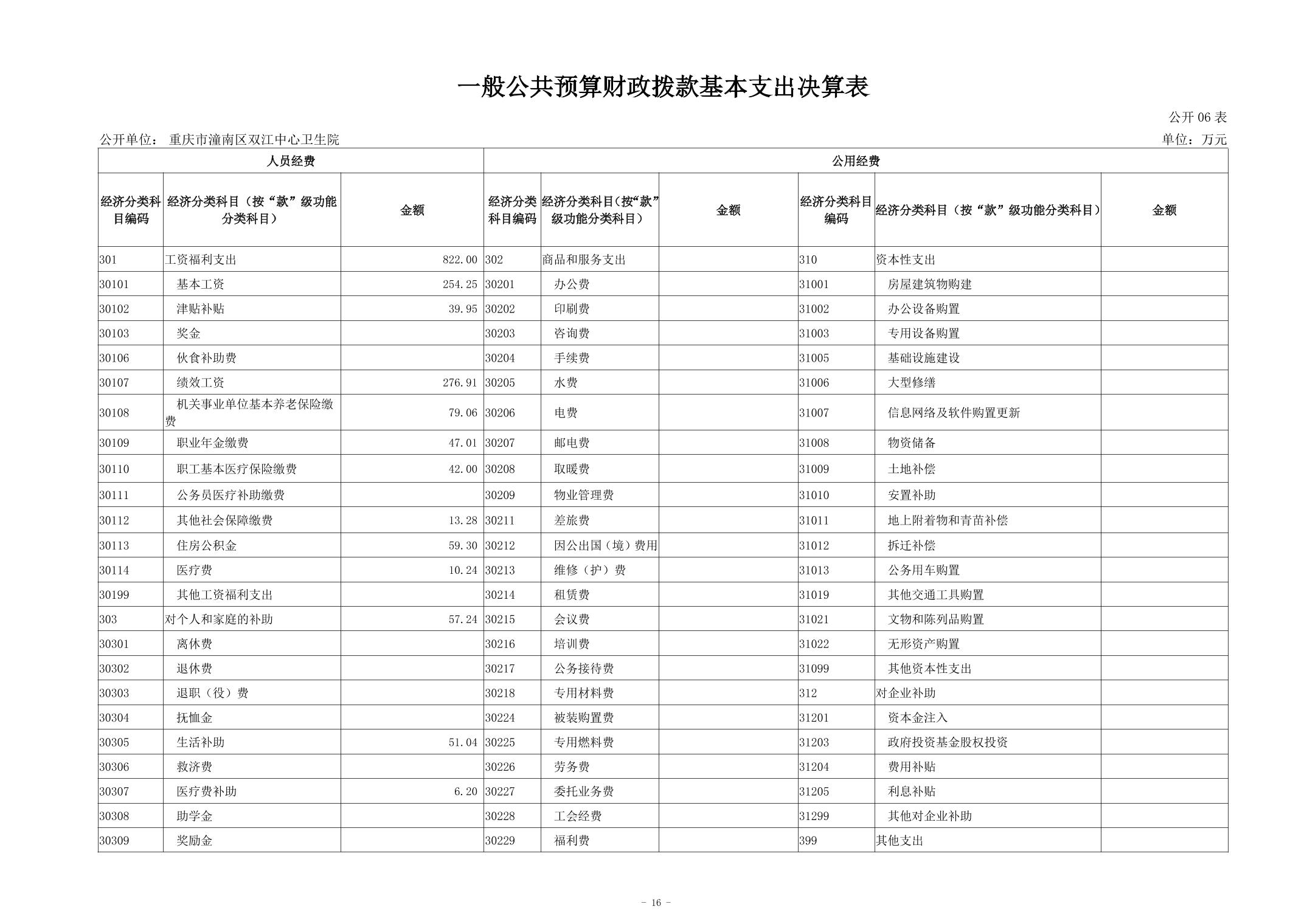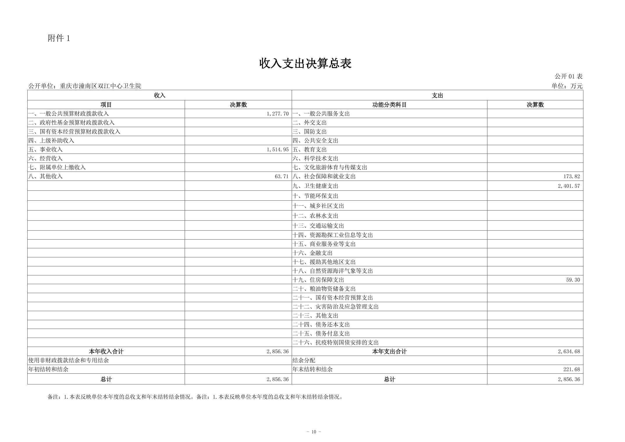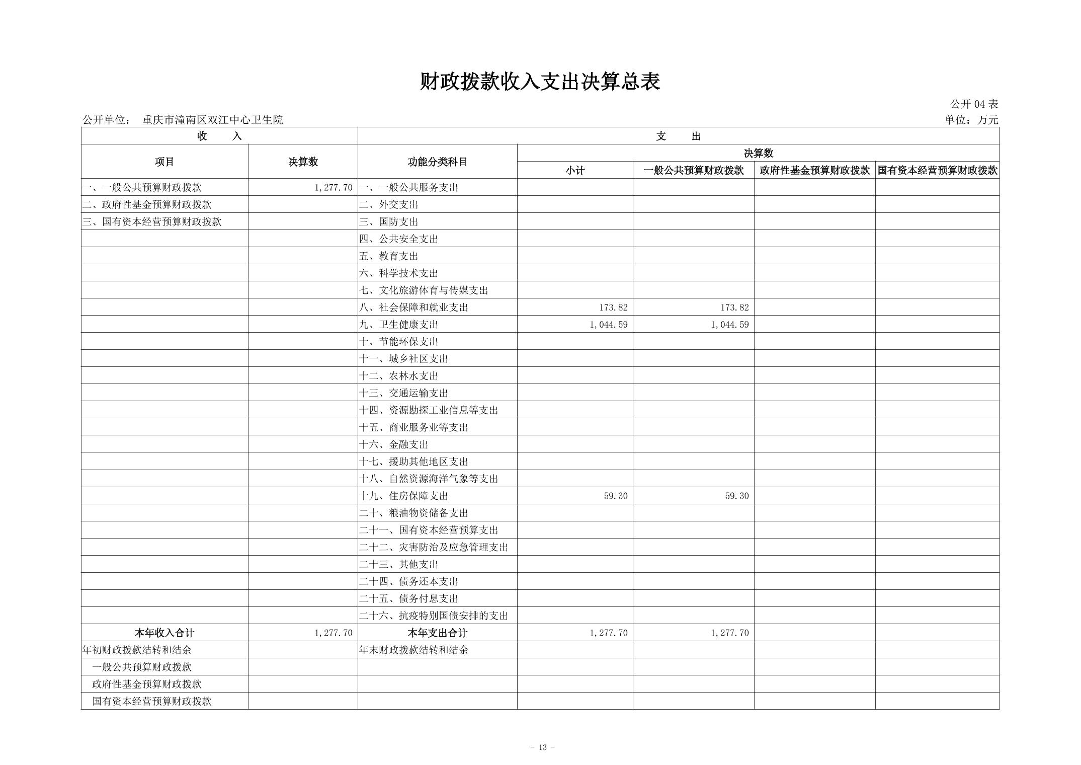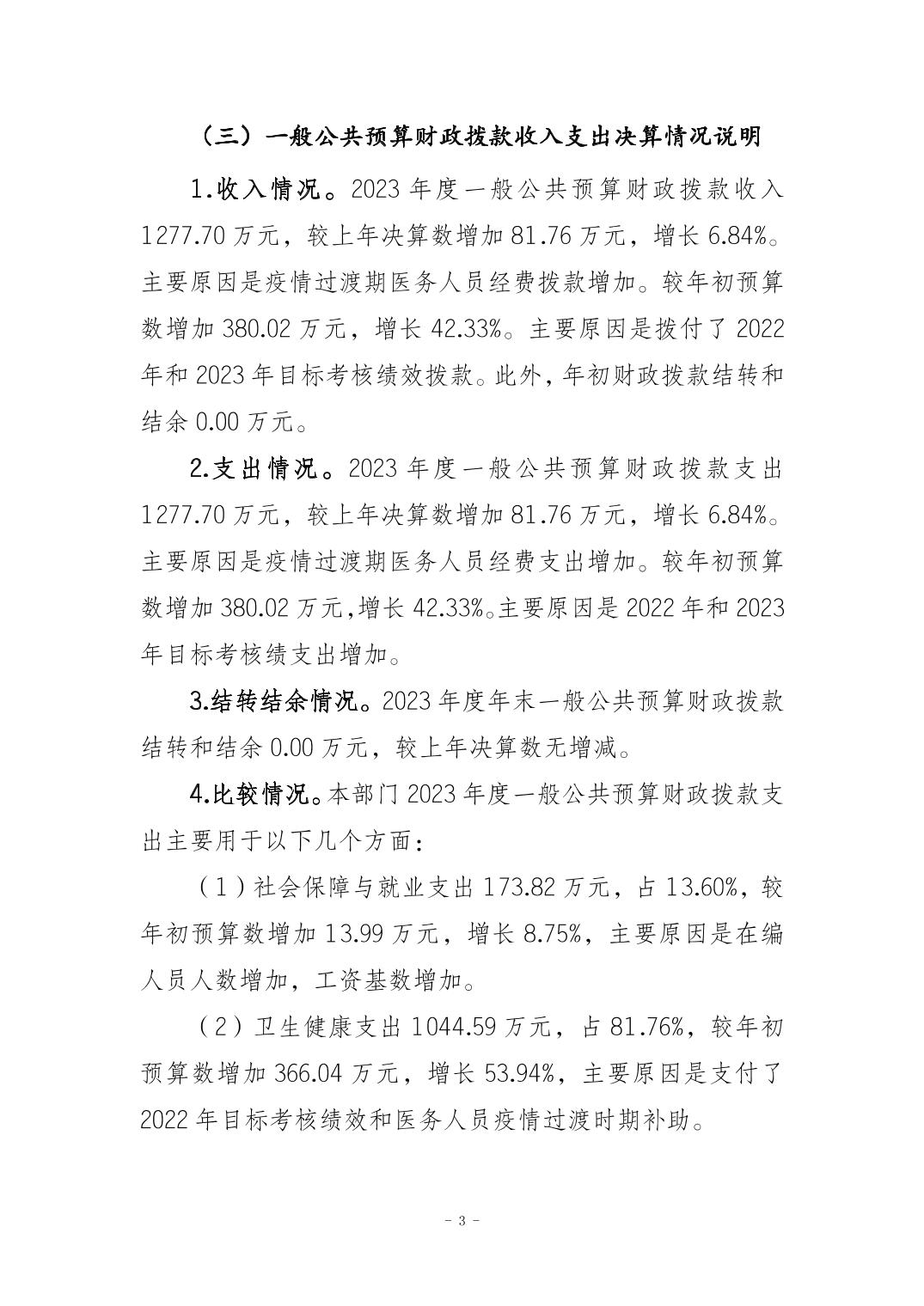 重庆市潼南区双江中心卫生院2023年度决算公开说明