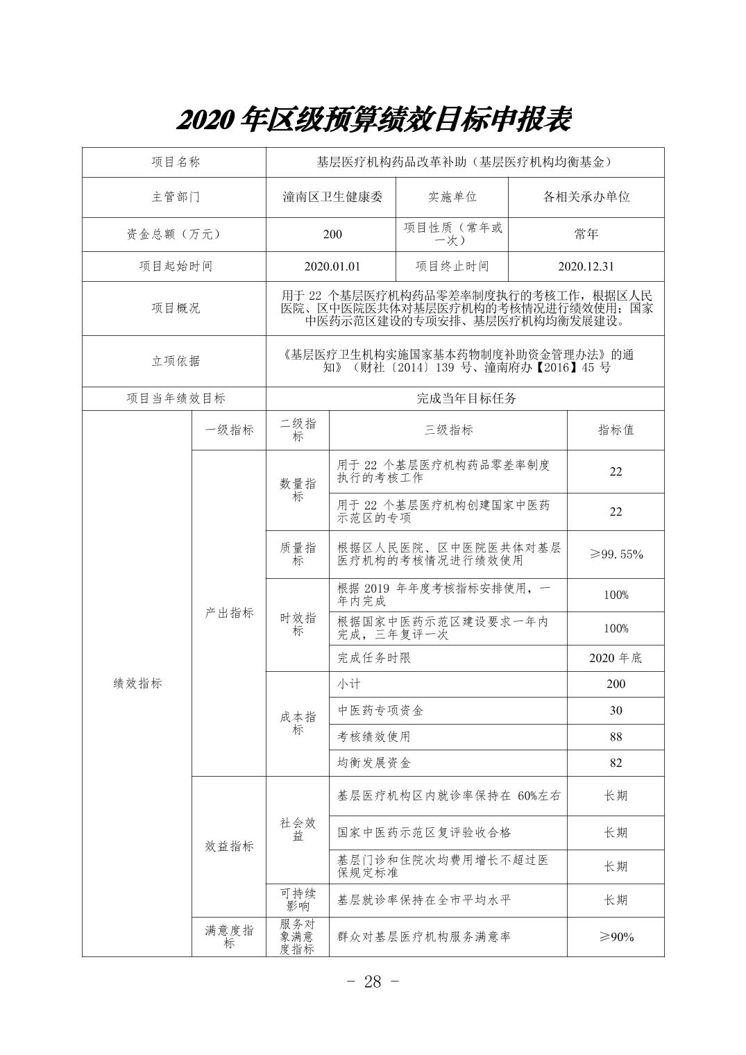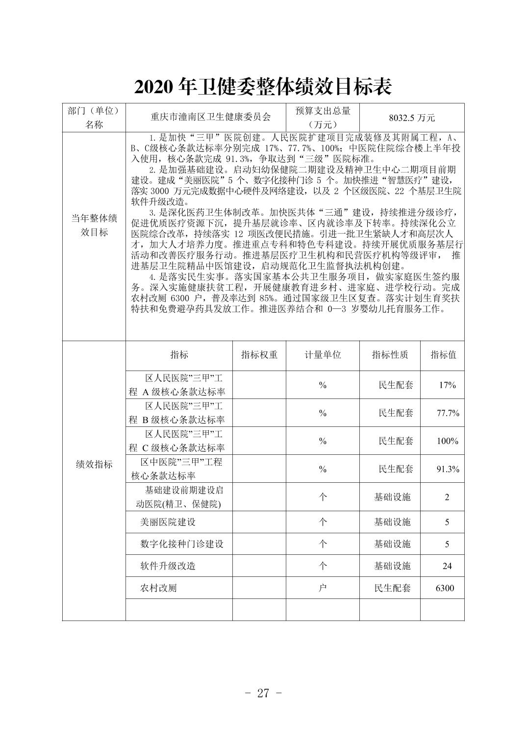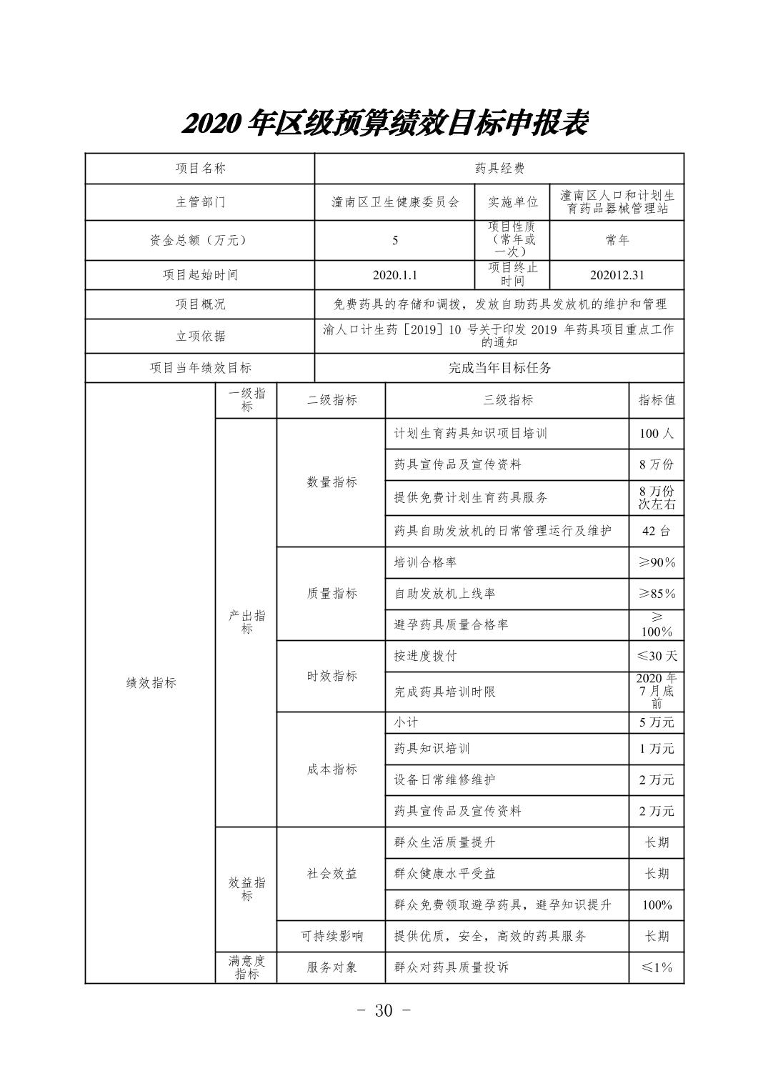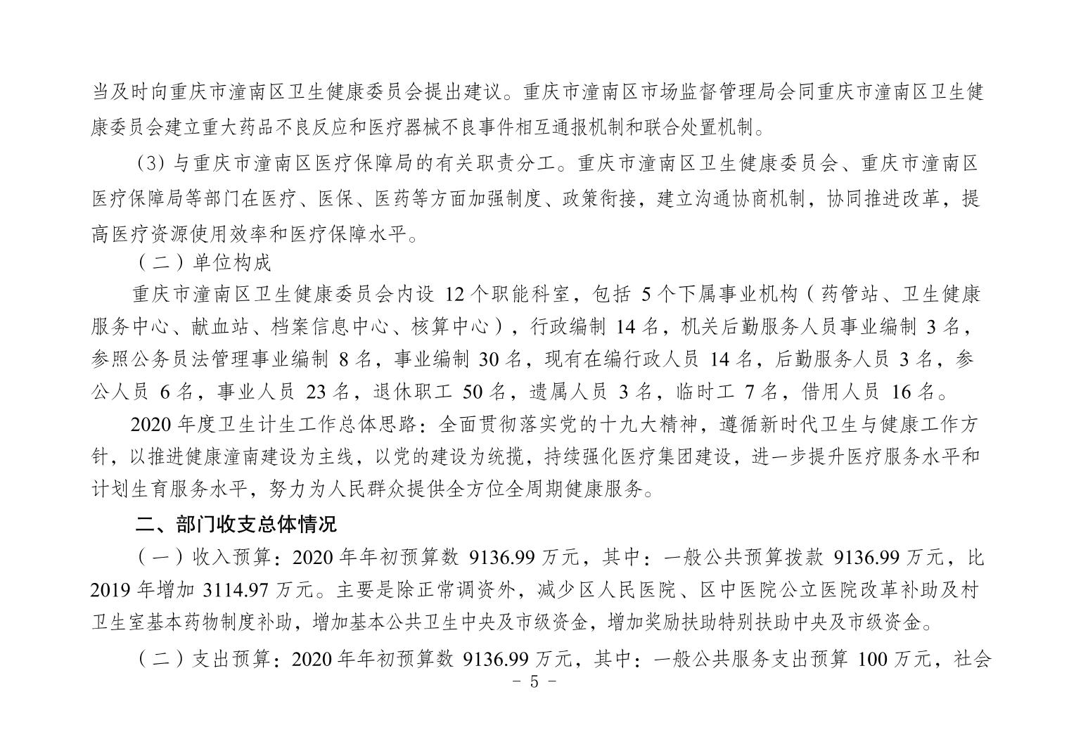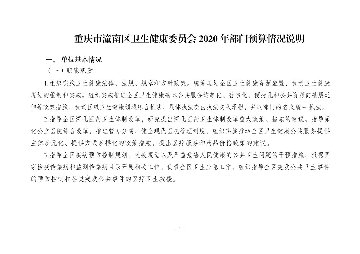 重庆市潼南区卫生健康委员会2020年部门预算公开