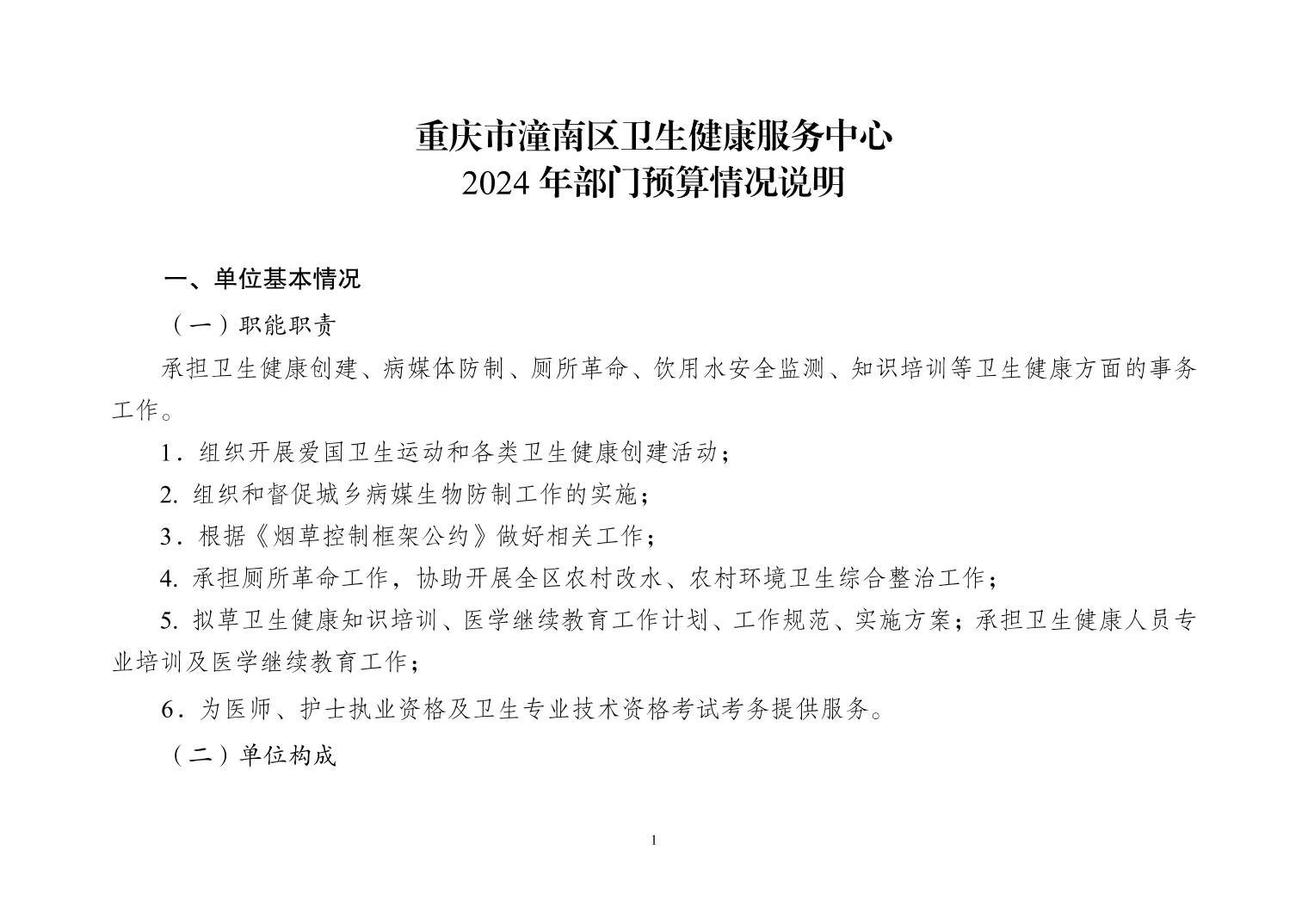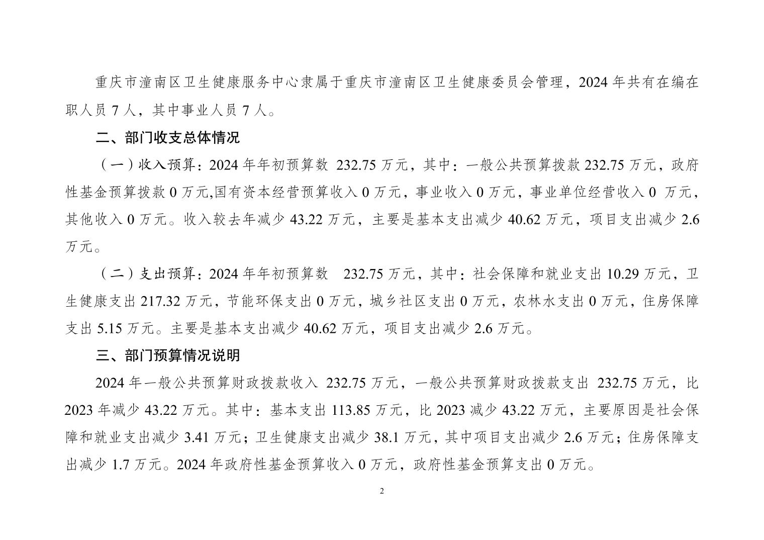 重庆市潼南区卫生健康服务中心2024年部门预算情况说明