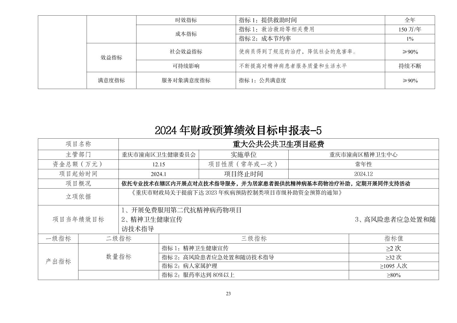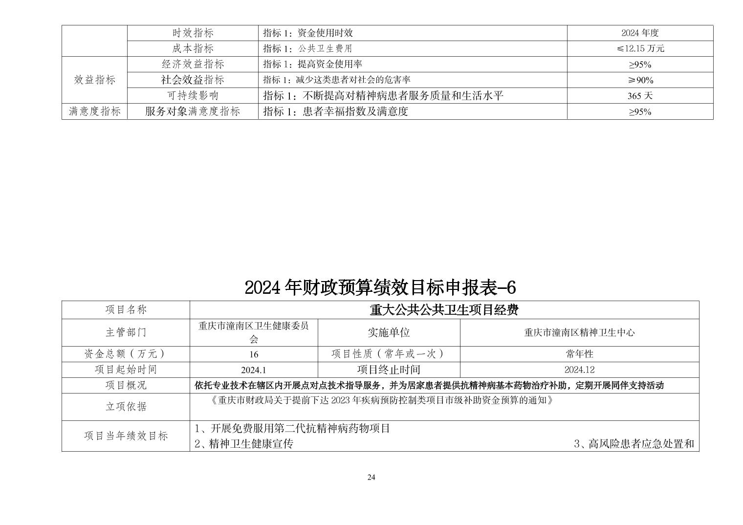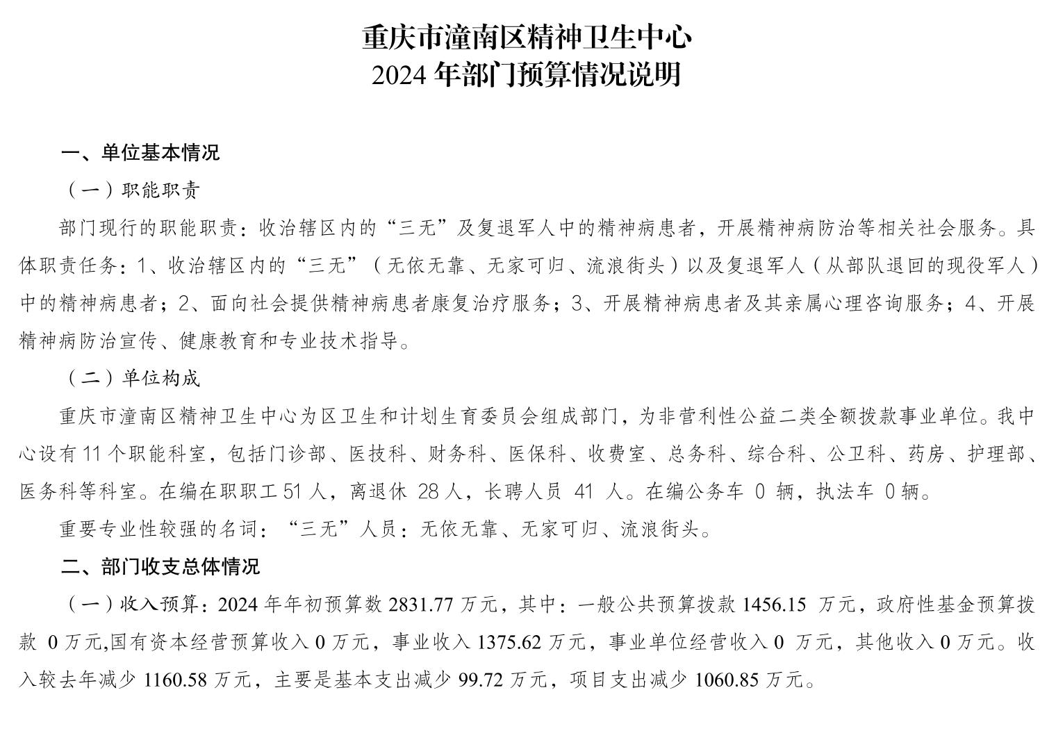 重庆市潼南区精神卫生中心2024年部门预算情况说明