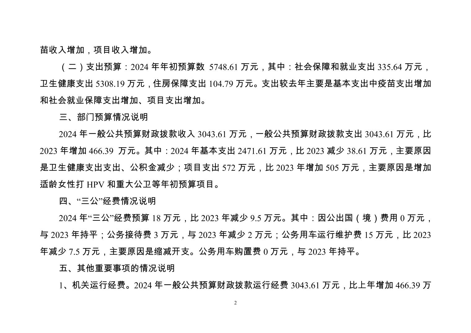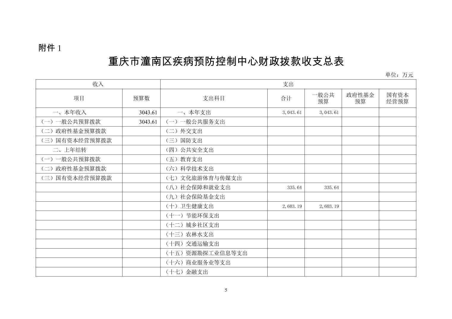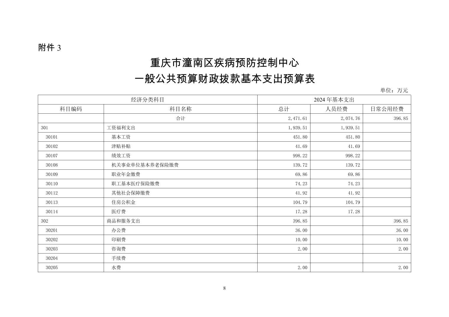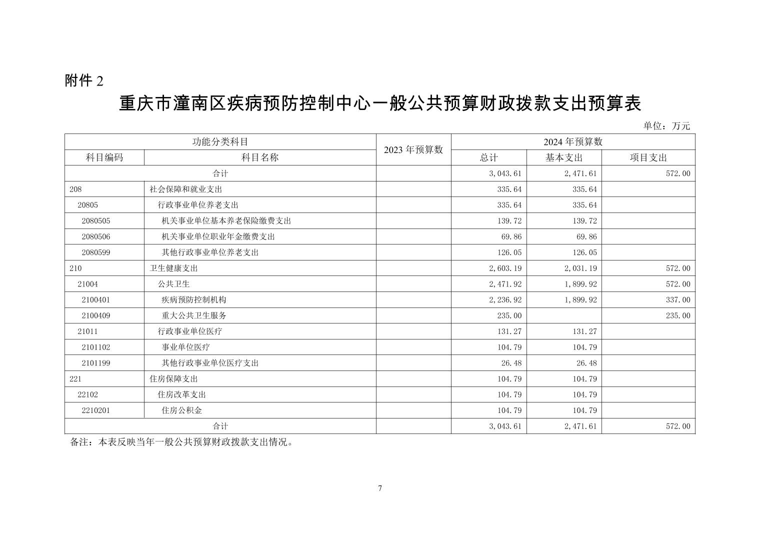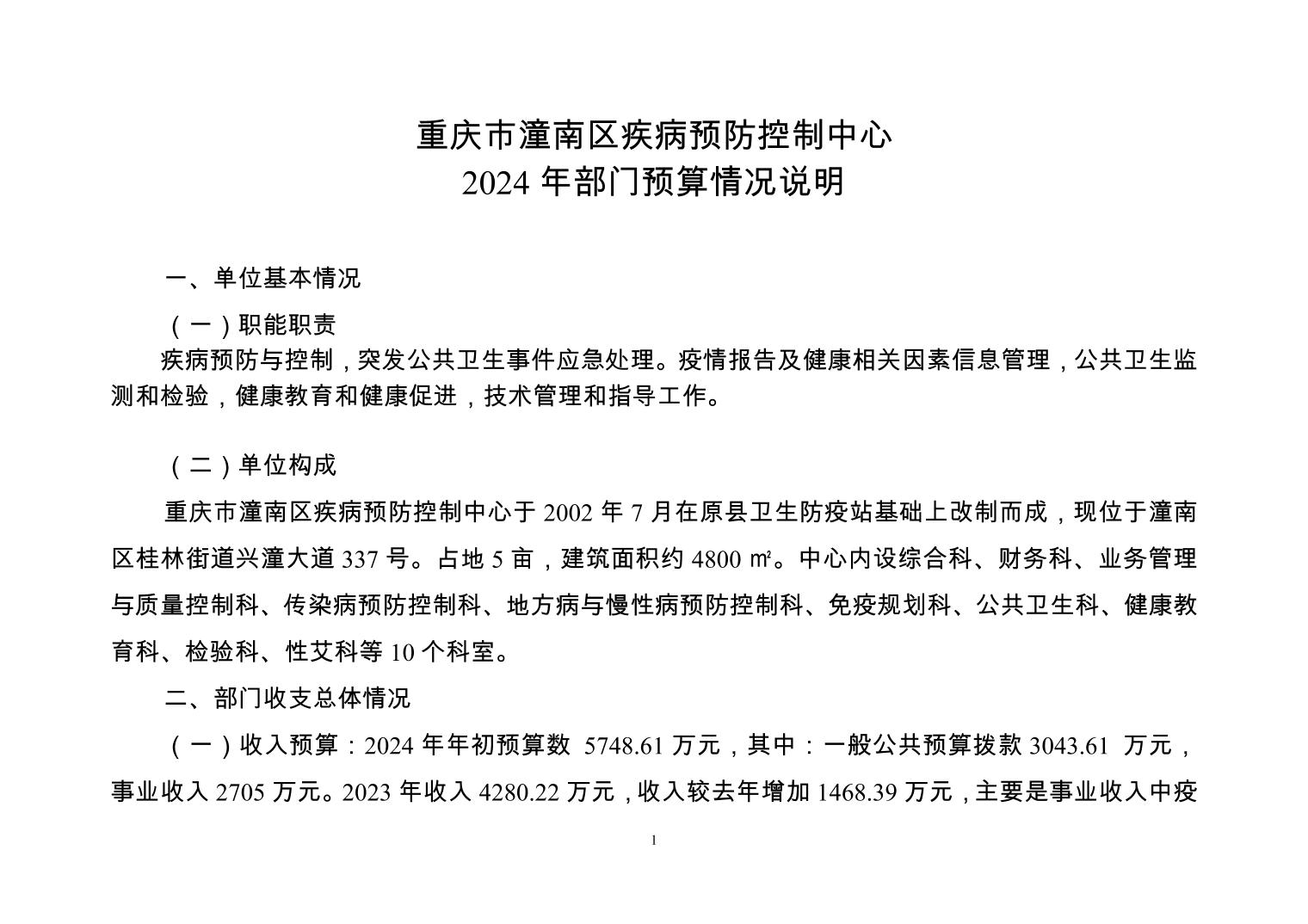 重庆市潼南区疾病预防控制中心2024年部门预算情况说明