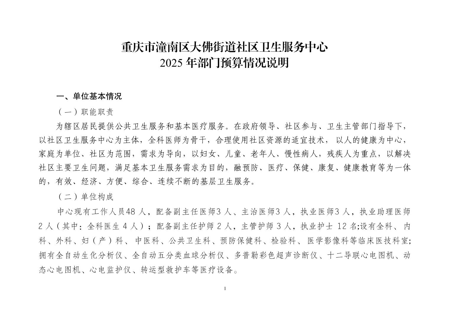 重庆市潼南区大佛街道社区卫生服务中心2025年部门预算情况说明