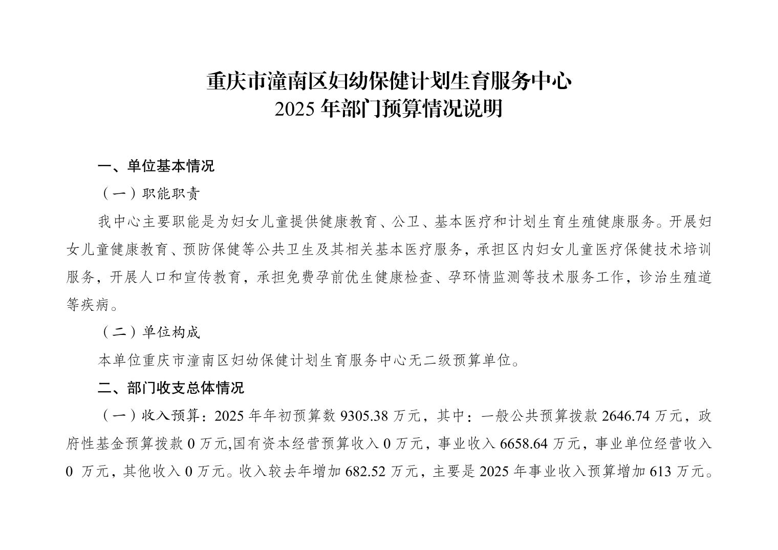 重庆市潼南区妇幼保健计划生育服务中心2025年部门预算情况说明