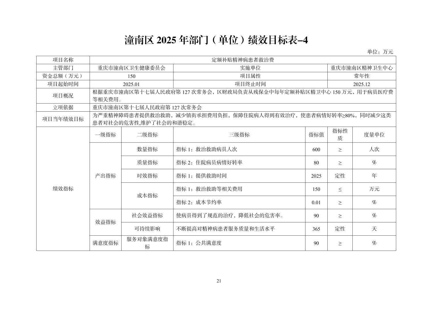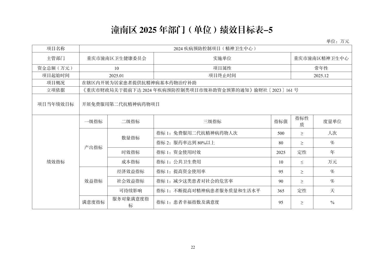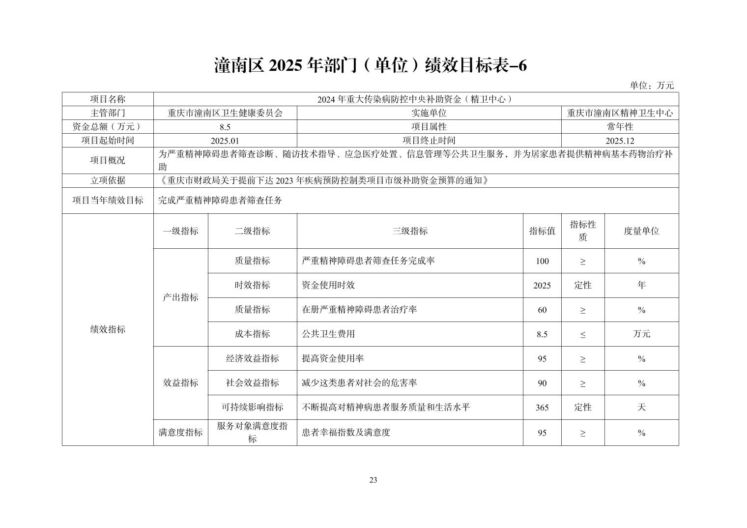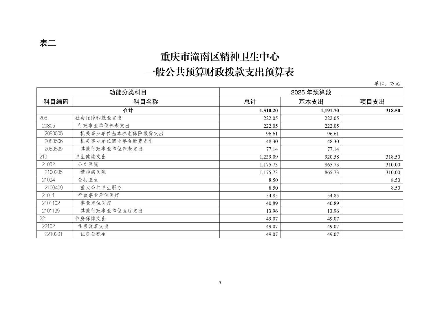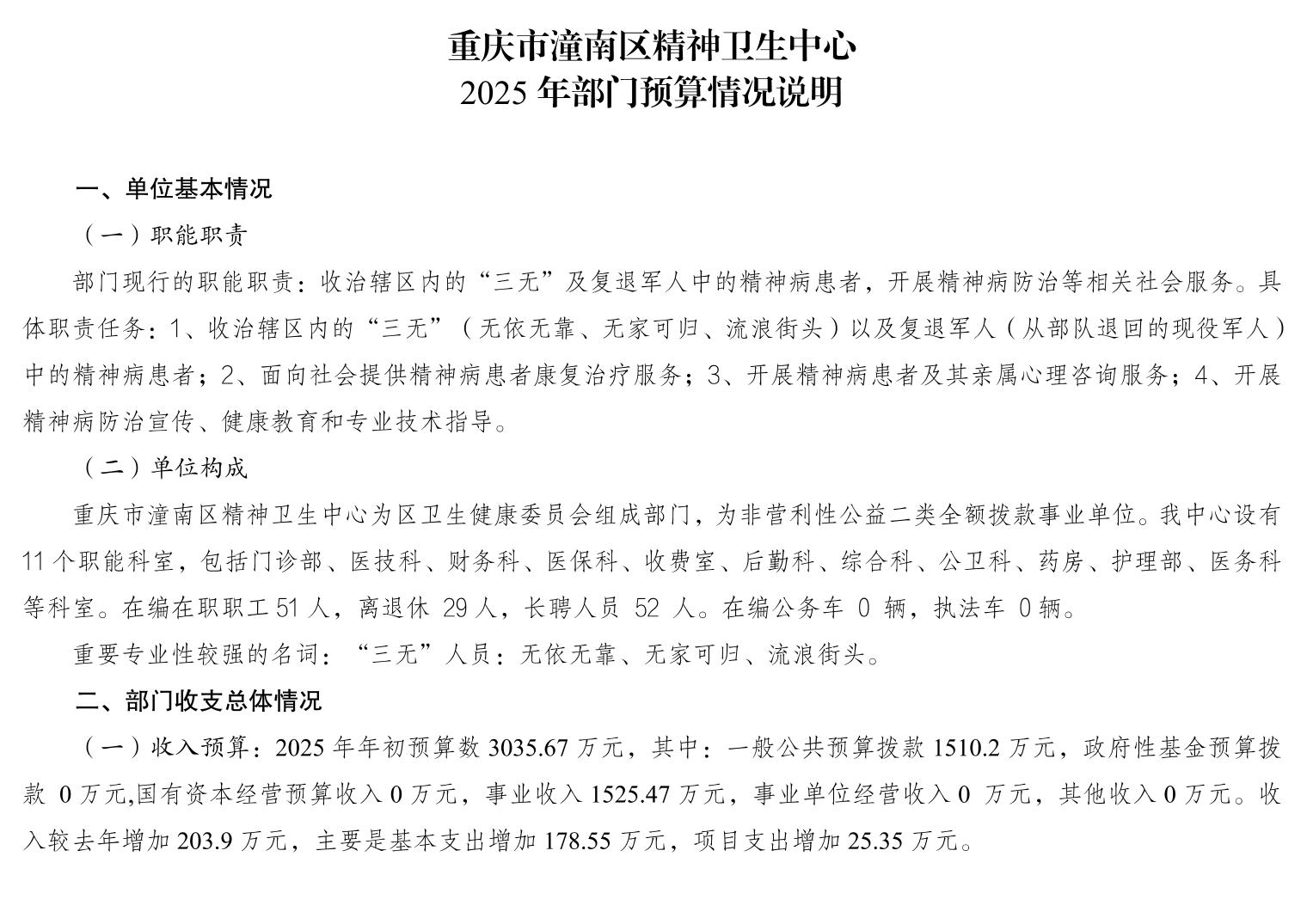 重庆市潼南区精神卫生中心2025年部门预算情况说明