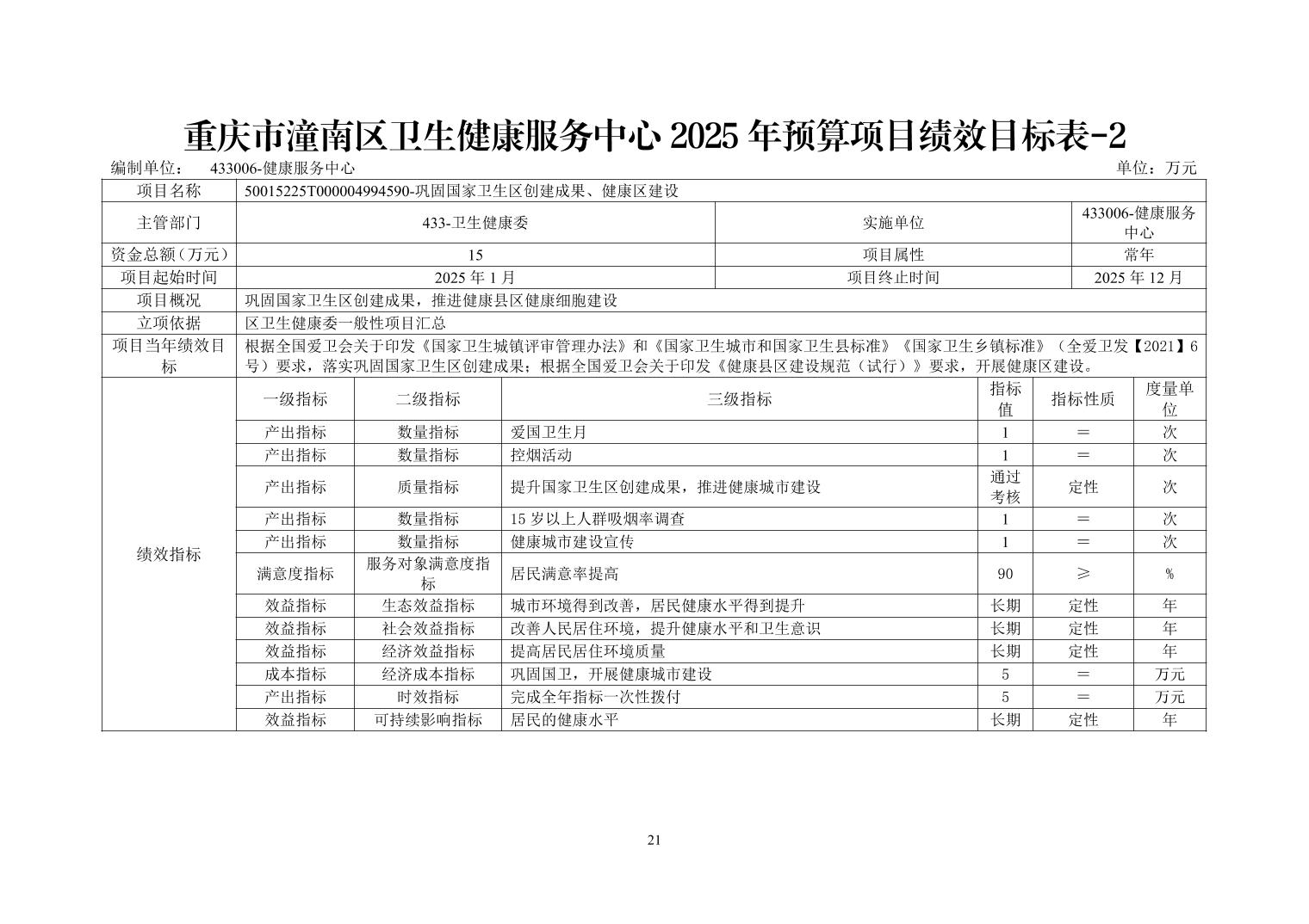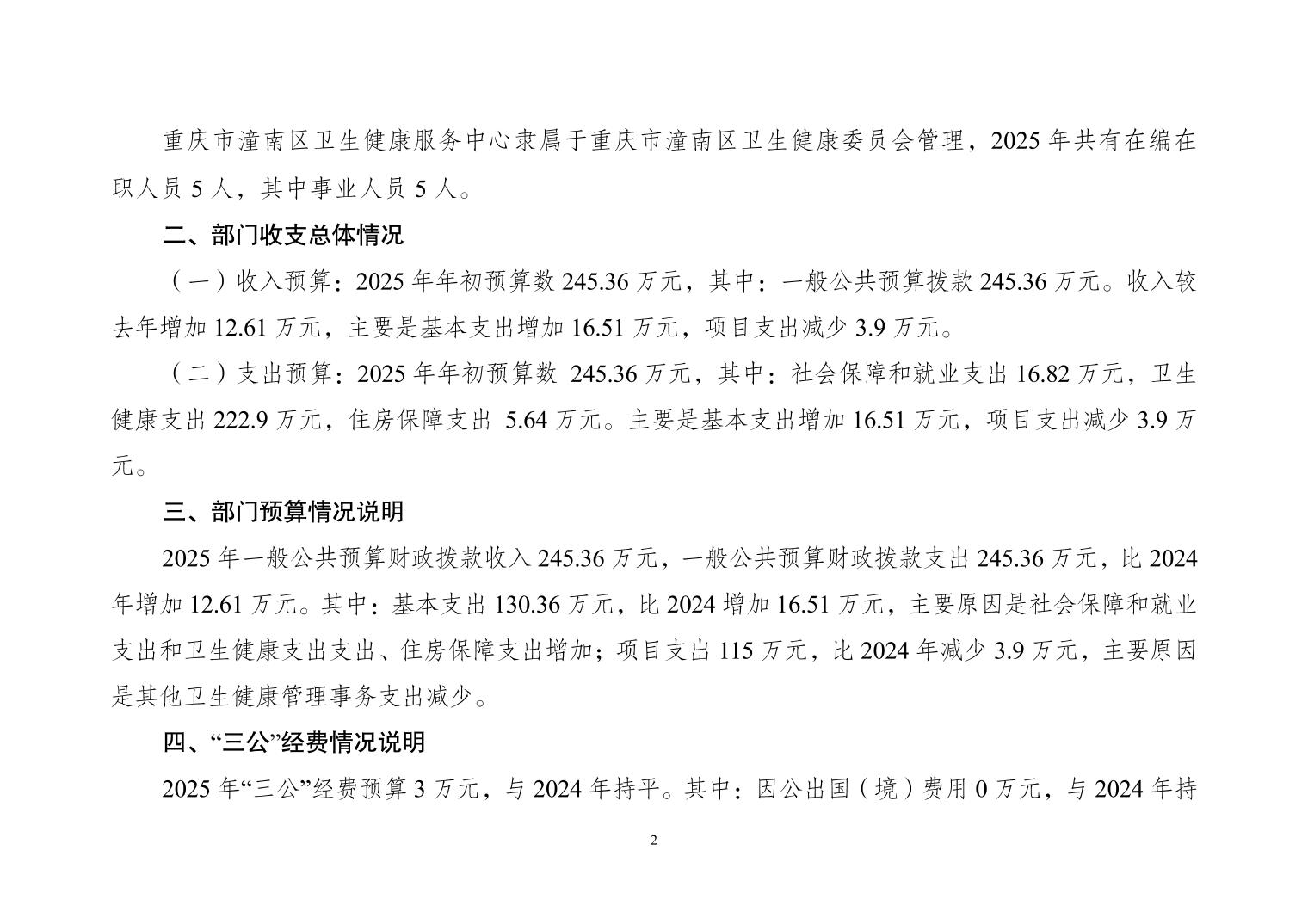 重庆市潼南区卫生健康服务中心2025年部门预算情况说明