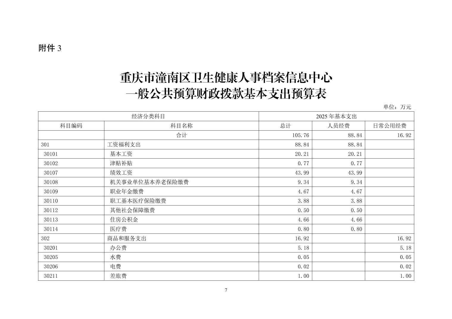重庆市潼南区卫生健康人事档案信息中心2025年部门预算情况说明