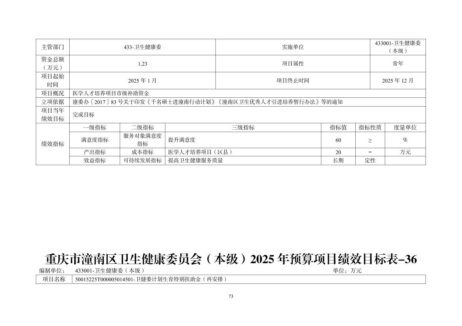 重庆市潼南区卫生健康委员会(本级)2025年部门预算情况说明