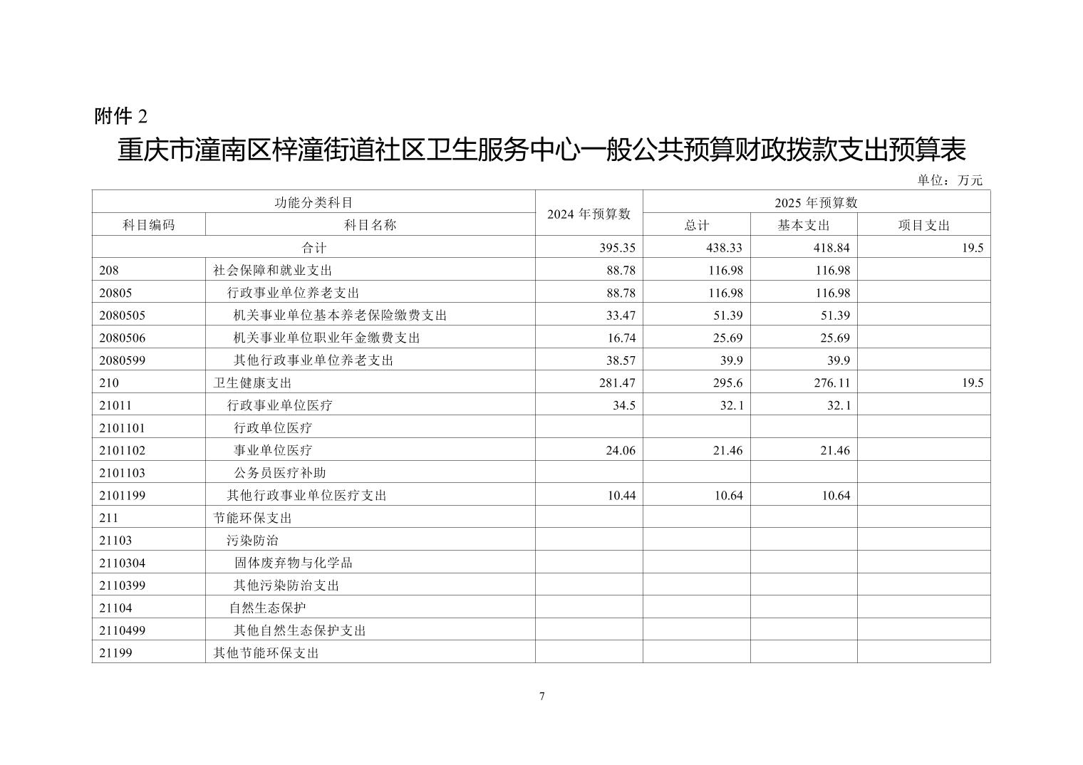 重庆市潼南区梓潼街道社区卫生服务中心2025年部门预算情况说明