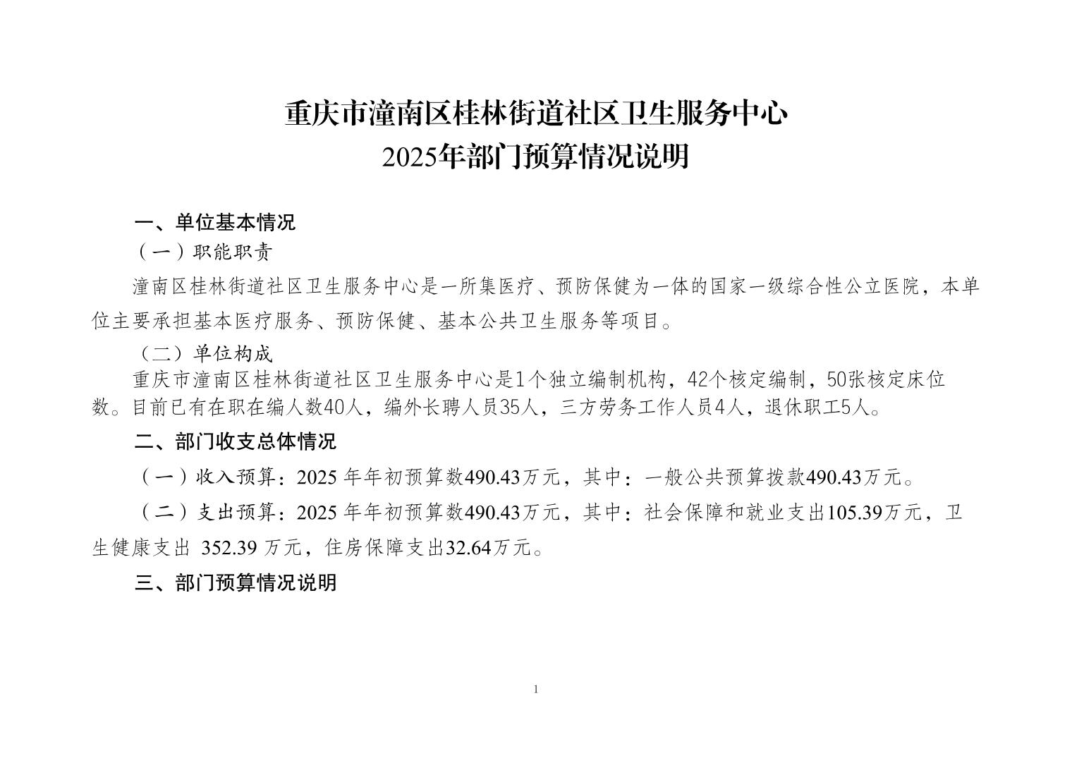 重庆市潼南区桂林街道社区卫生服务中心2025年部门预算情况说明