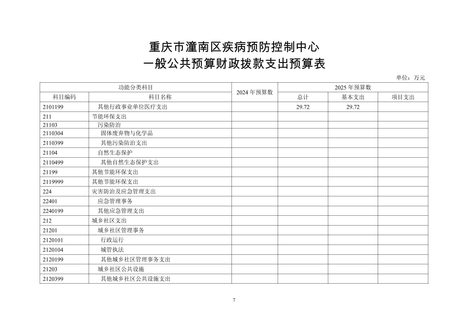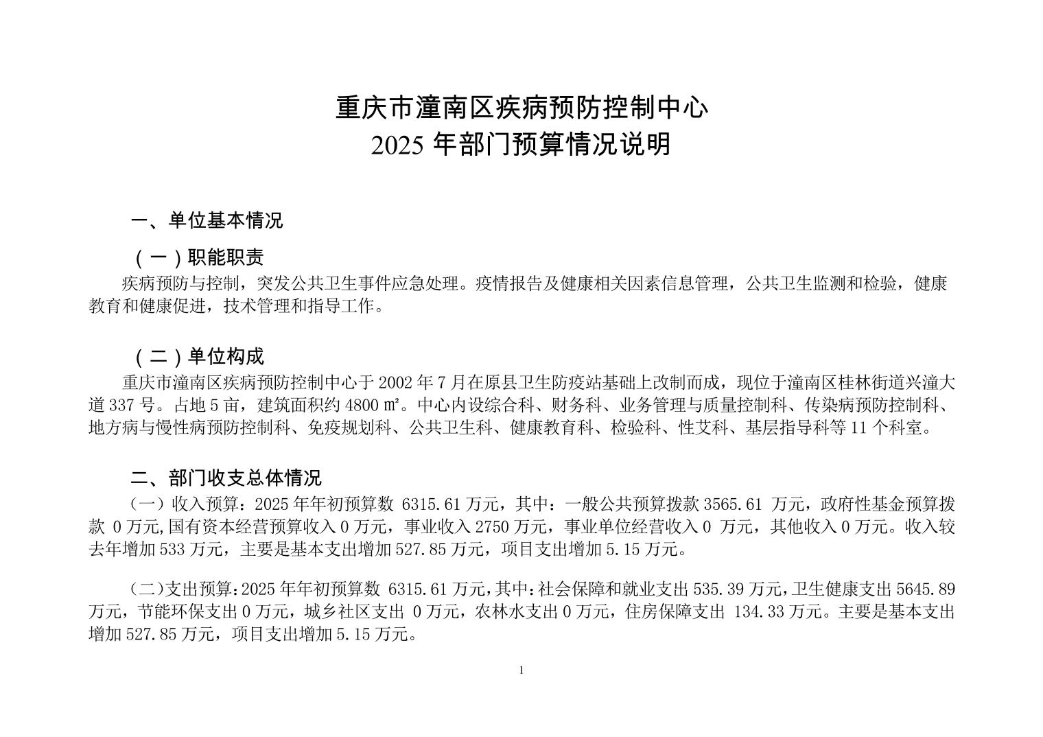 重庆市潼南区疾病预防控制中心2025年部门预算情况说明