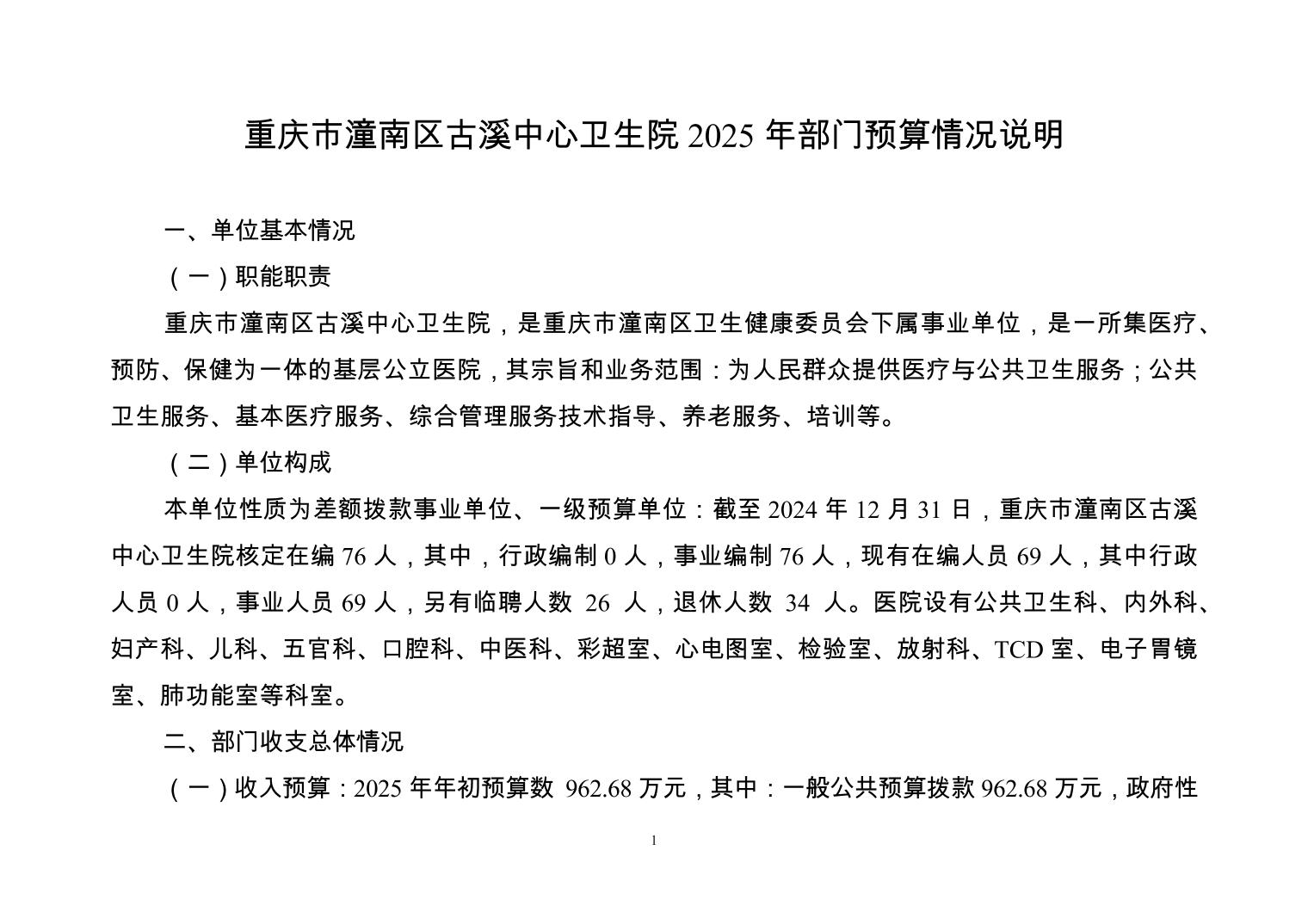 重庆市潼南区古溪中心卫生院2025年部门预算情况说明