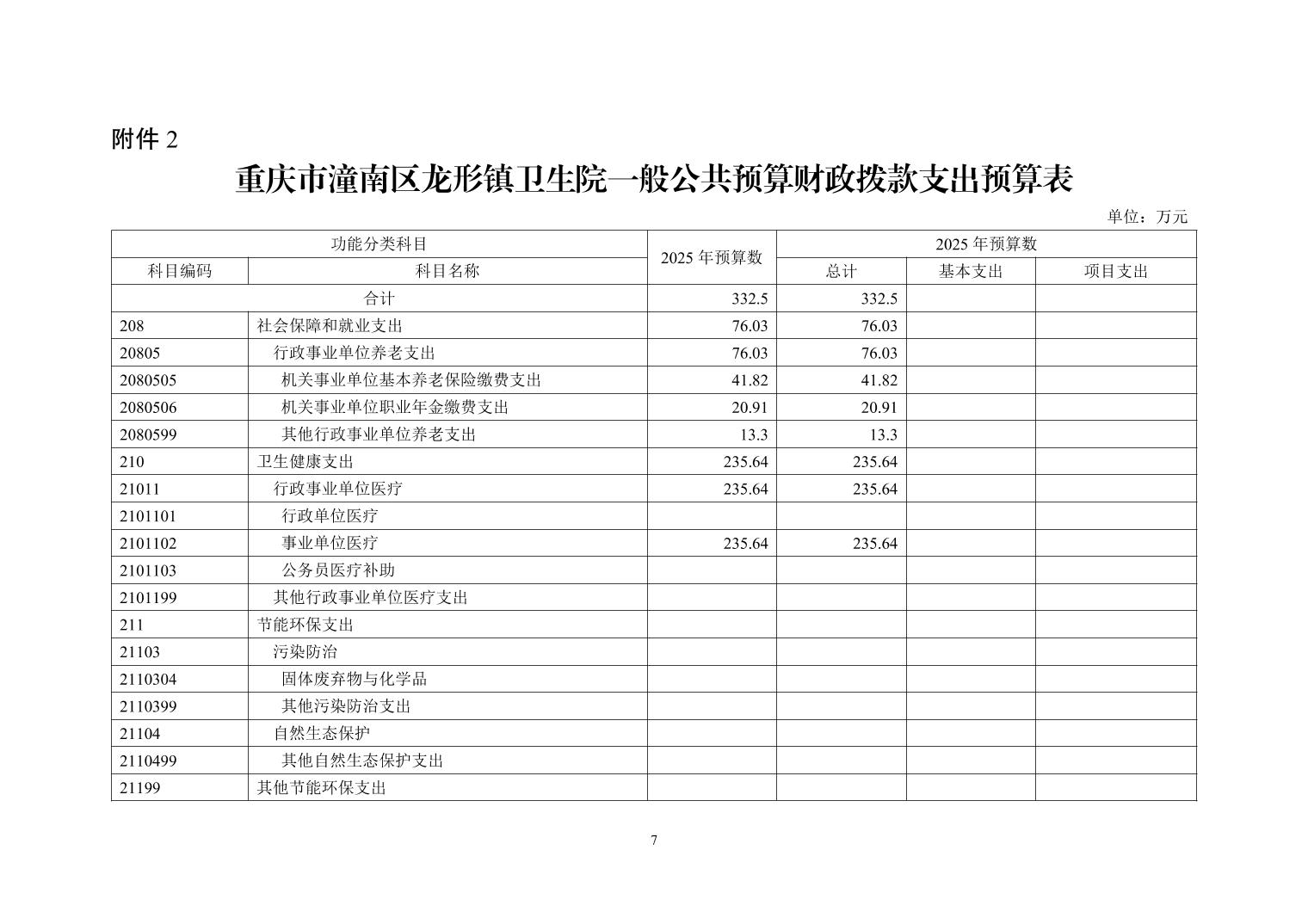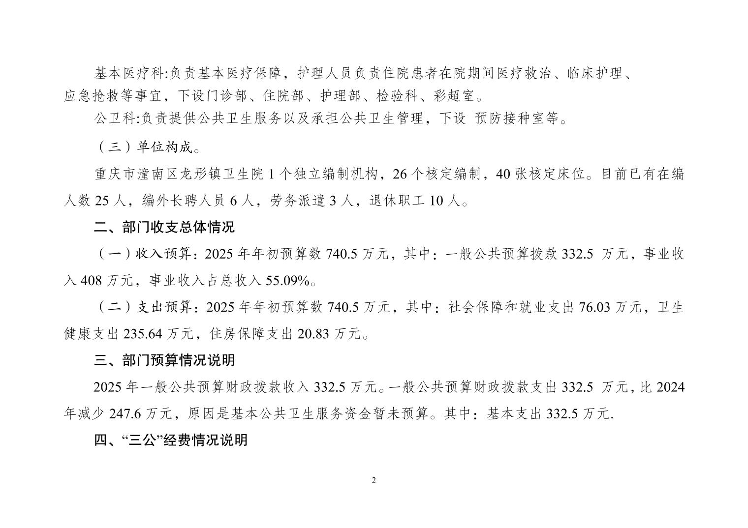 重庆市潼南区龙形镇卫生院2025年部门预算情况说明