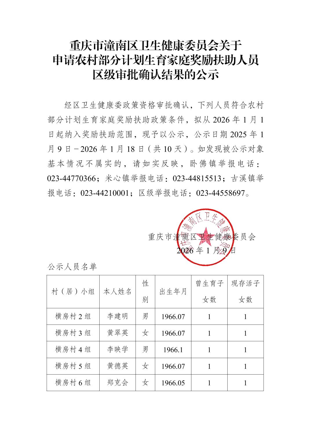 重庆市潼南区卫生健康委员会关于申请农村部分计划生育家庭奖励扶助人员区级审批确认结果的公示
