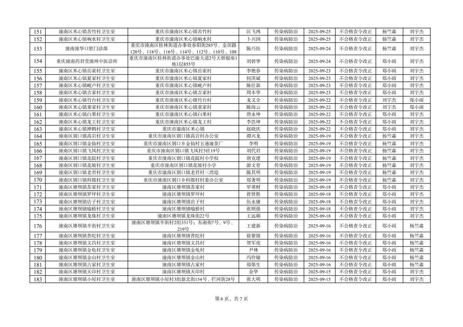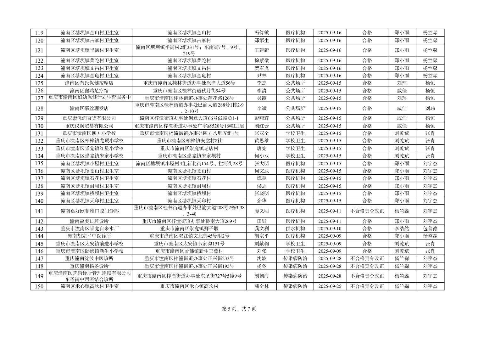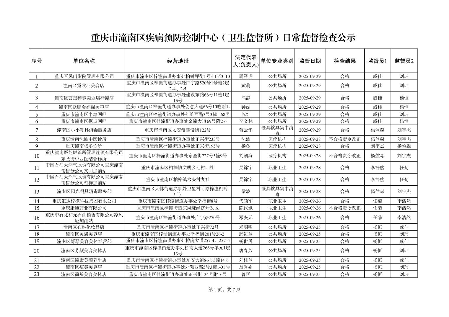 重庆市潼南区疾病预防控制中心(卫生监督所)日常监督检查公示