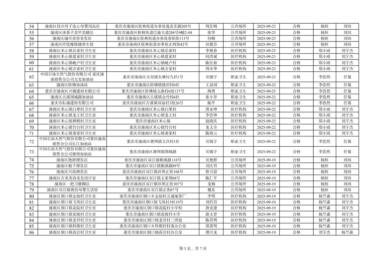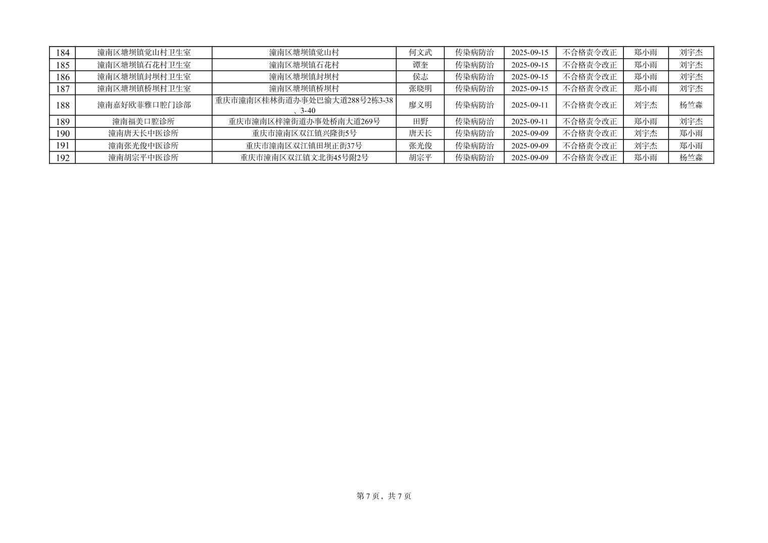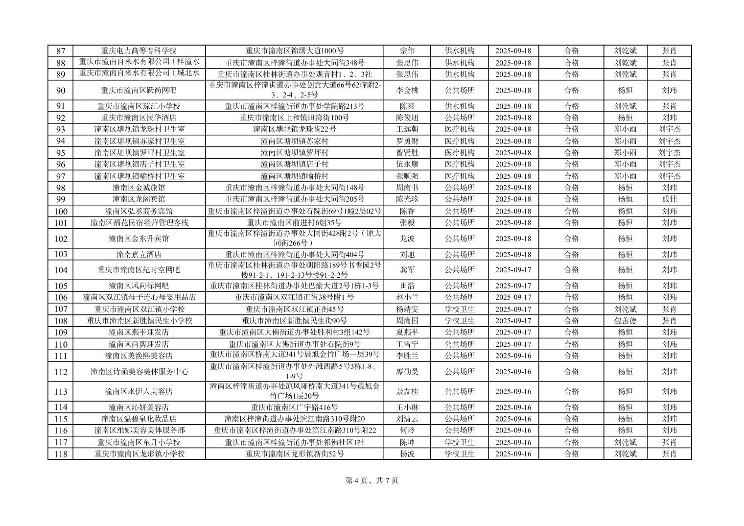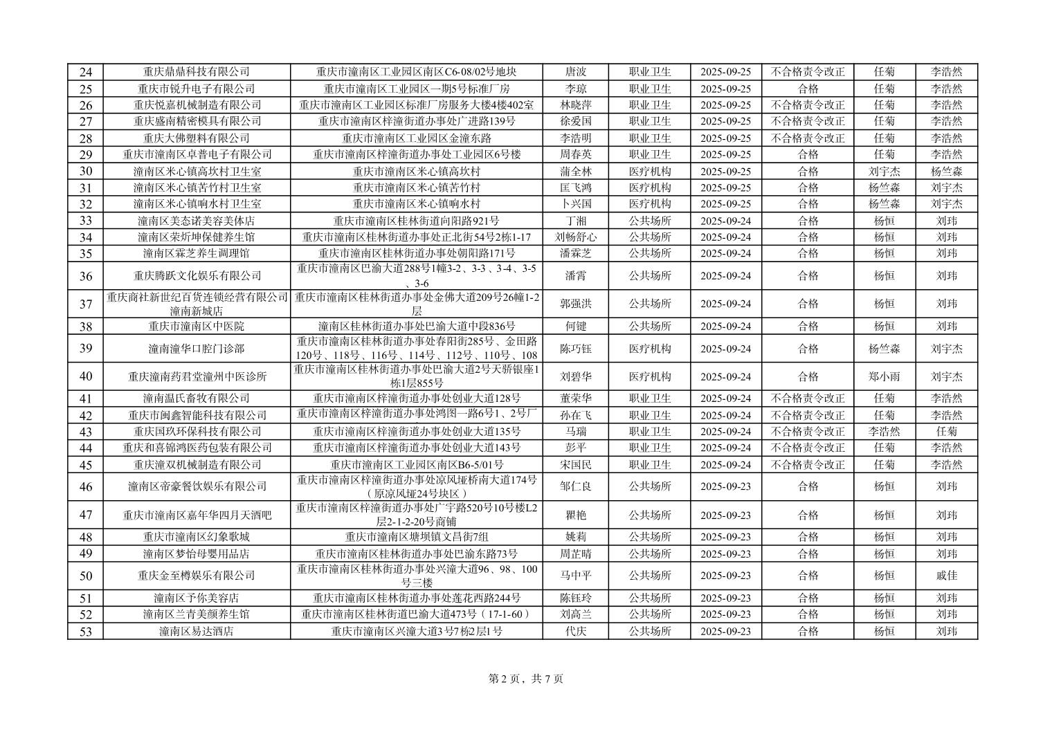 重庆市潼南区疾病预防控制中心(卫生监督所)日常监督检查公示