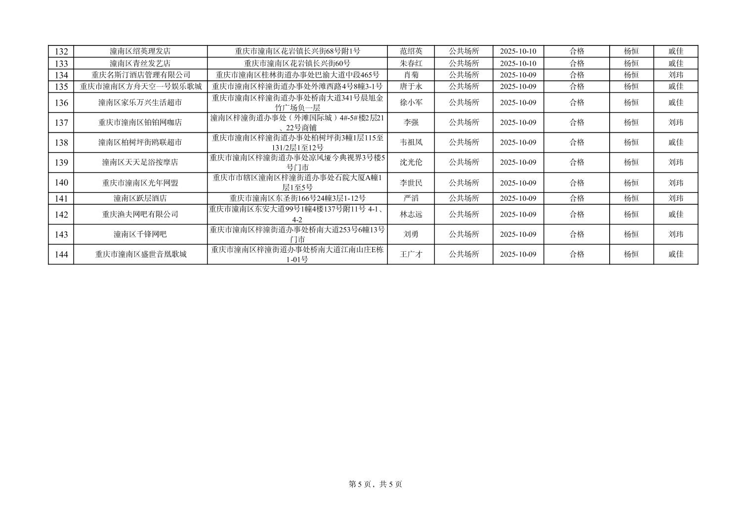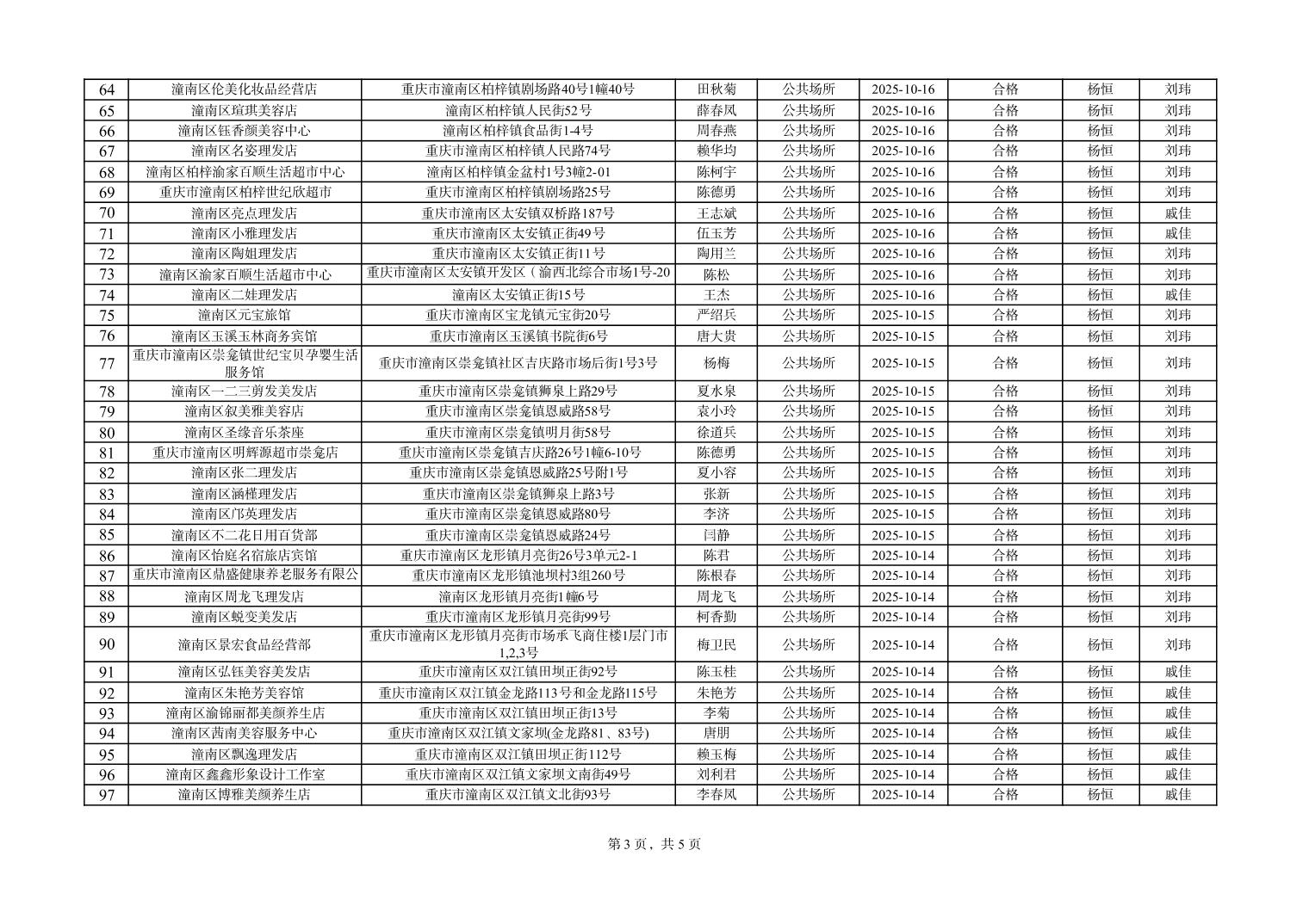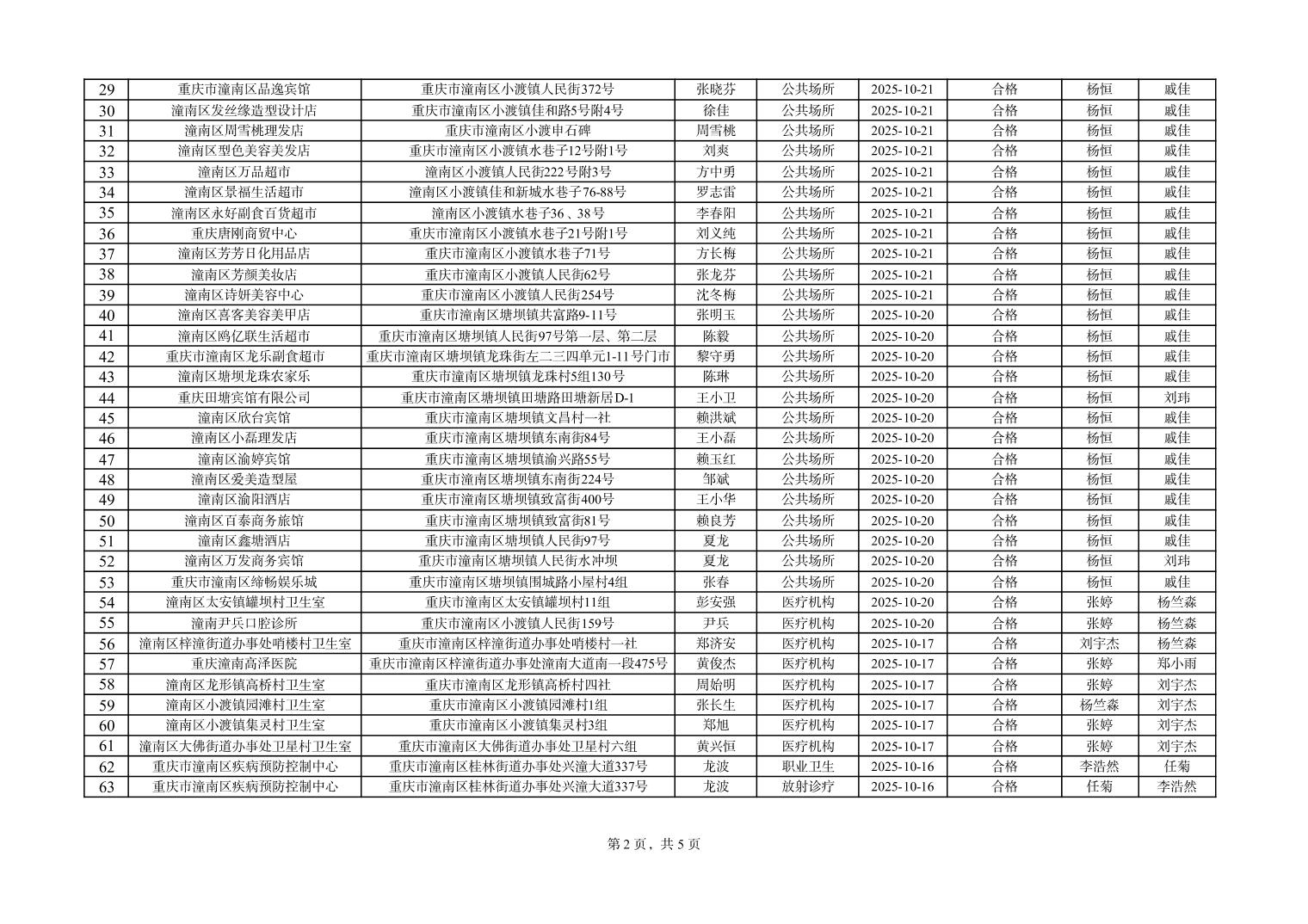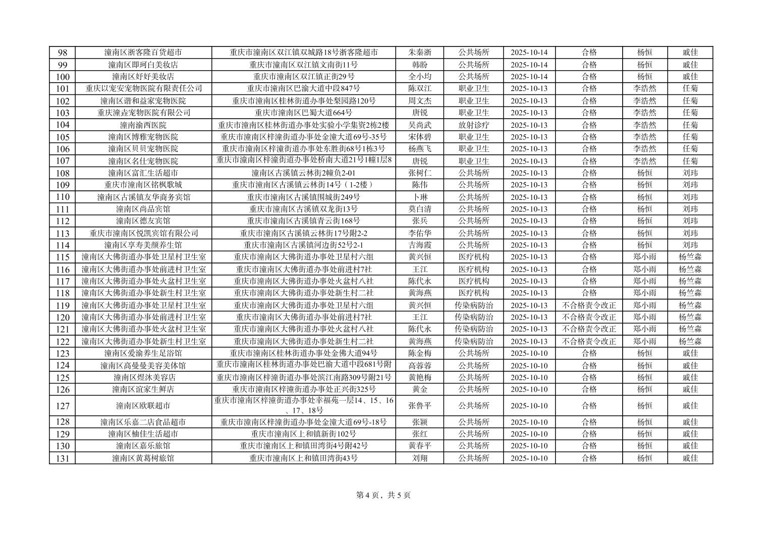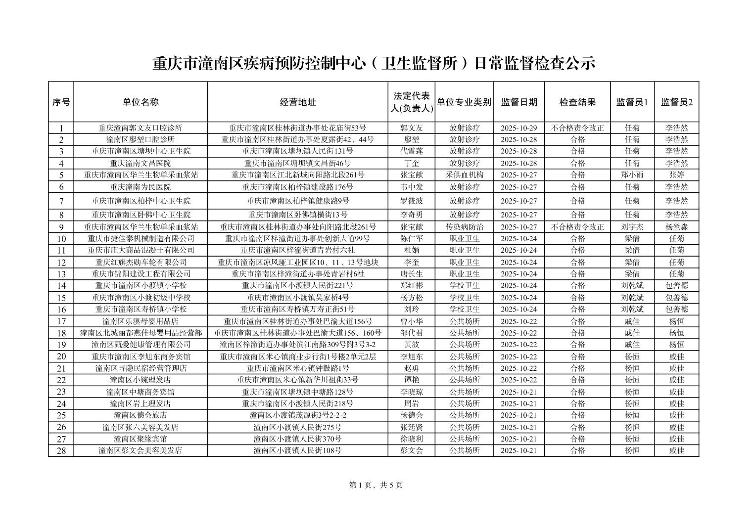 重庆市潼南区疾病预防控制中心(卫生监督所)日常监督检查公示