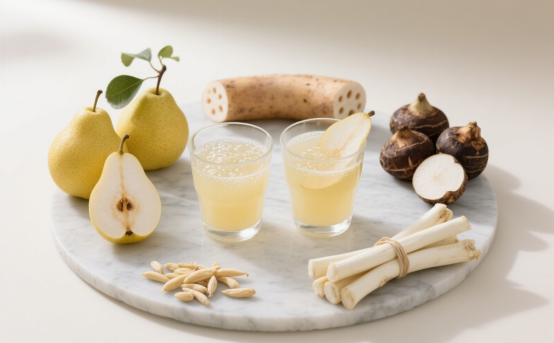 功效:甘寒养阴,清热润燥。适用于秋燥伤津、阴虚体质、热病后期阴伤及熬夜耗阴者,但脾胃虚寒、痰湿体质、糖尿病患者及风寒咳嗽者慎用。注意控制每日饮用量(每日1~2次,每次100~150ml),避免过量伤脾阳。