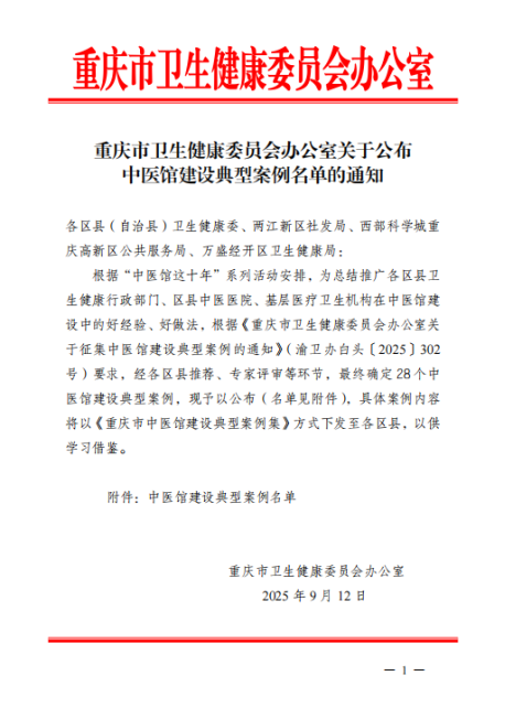 近日,市卫生健康委正式公布全市中医馆建设典型案例名单,我区两项优秀案例脱颖而出,成功入选!区卫生健康委《十年筑网・全域焕新:潼南中医馆建设蝶变记》与双江中心卫生院《岐黄薪火耀双江,十年奋进铸辉煌》双双获评市级典型案例,成为全市中医药事业发展的示范标杆!