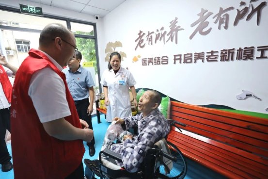 理论学习的热情最终转化为服务群众的实际行动。活动结束后,党员干部们前往古溪中心卫生院医养结合部开展“敬老月”志愿活动,为老人们带去政策宣讲和健康知识科普,并慰问了入住老人和计生特殊家庭老人,用真情实意温暖人心。