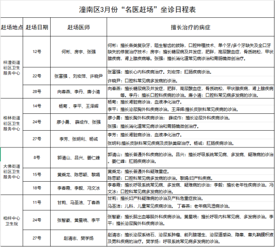 潼南人,3月“名医赶场”坐诊日程表来啦!