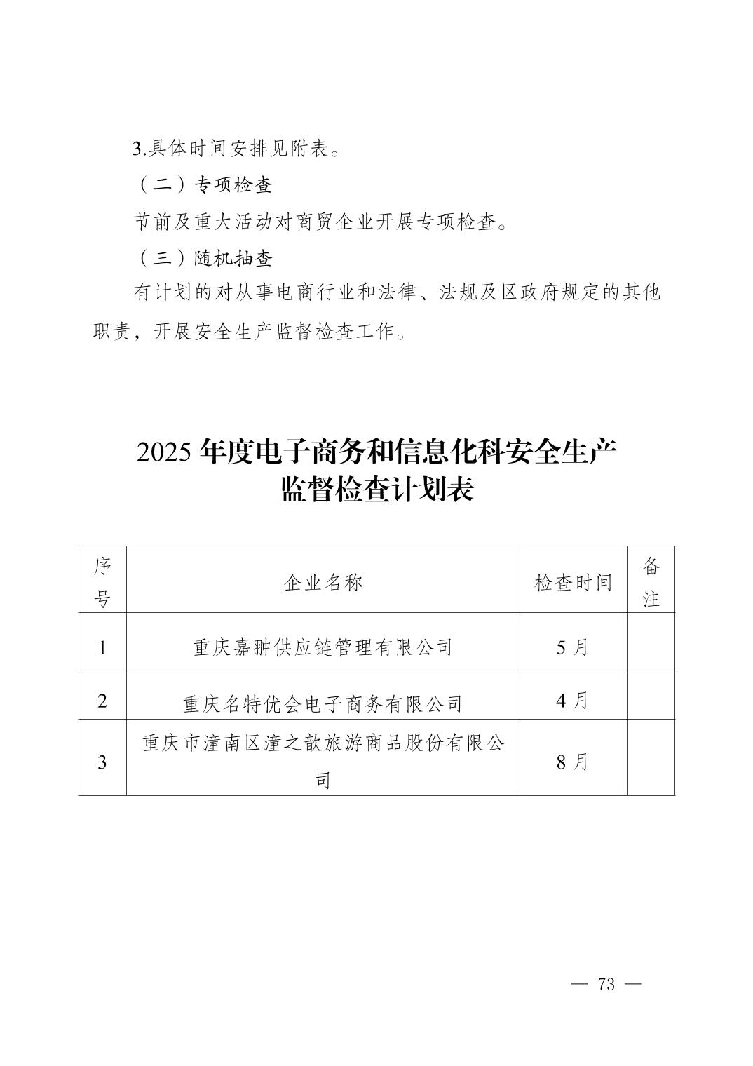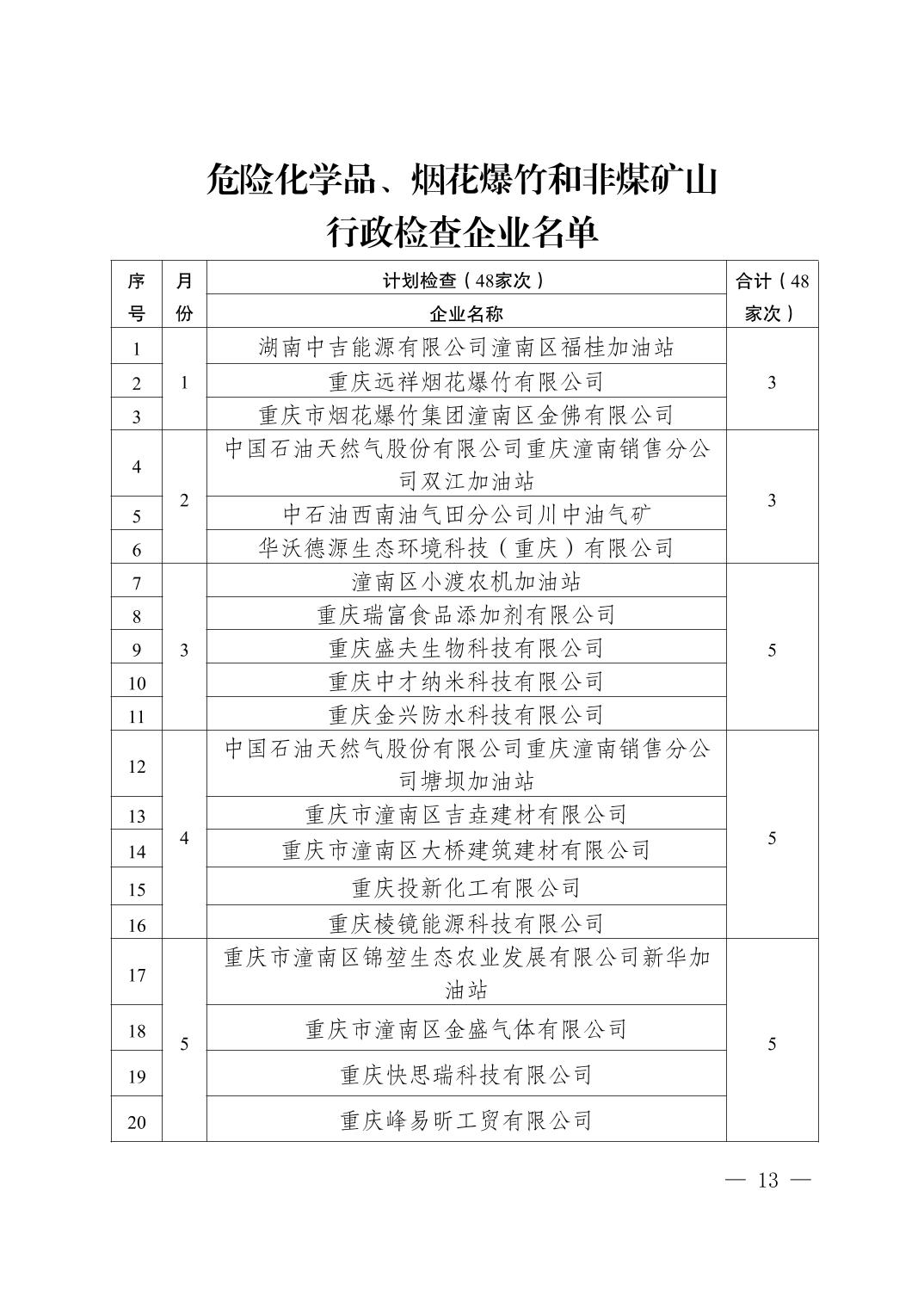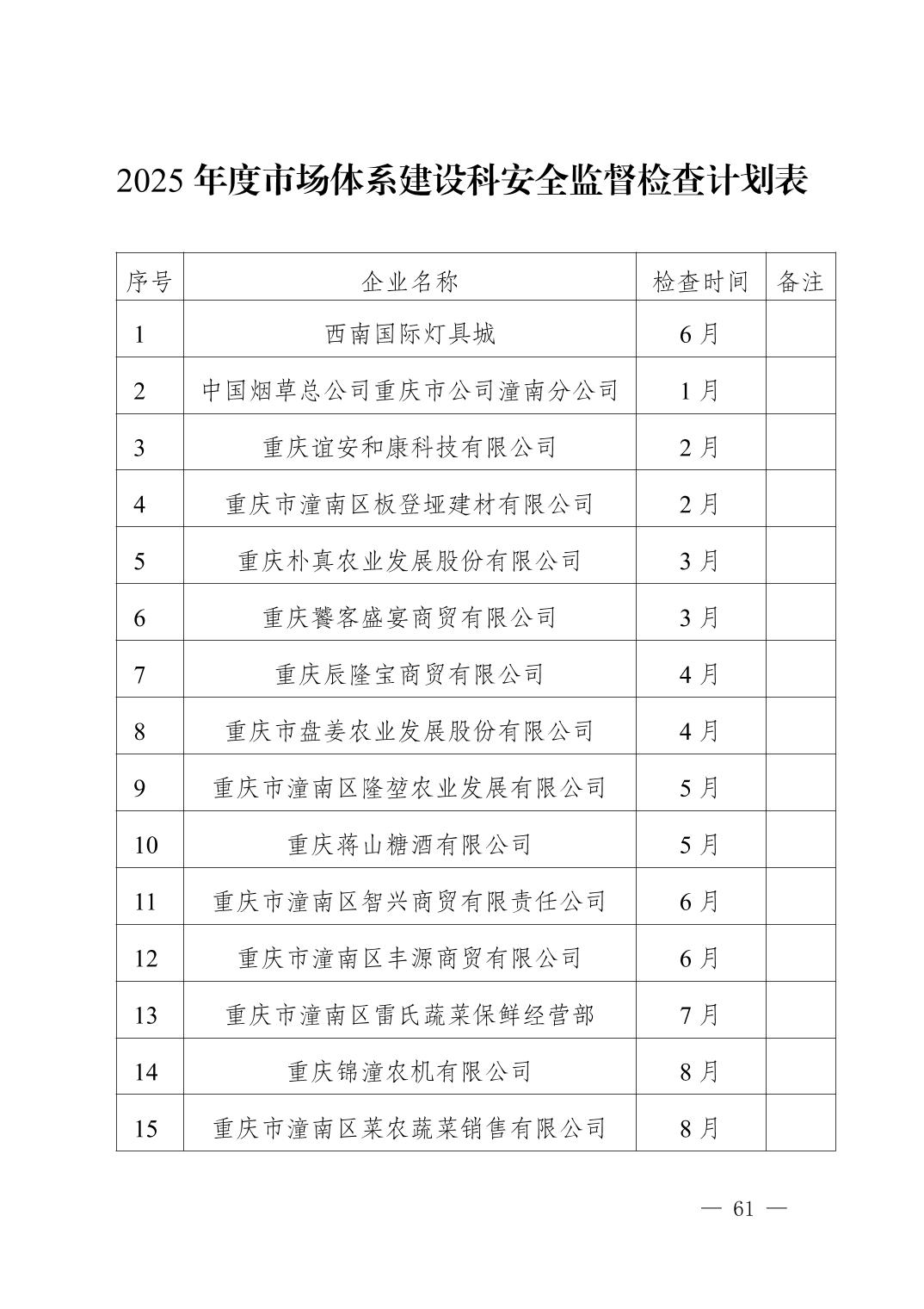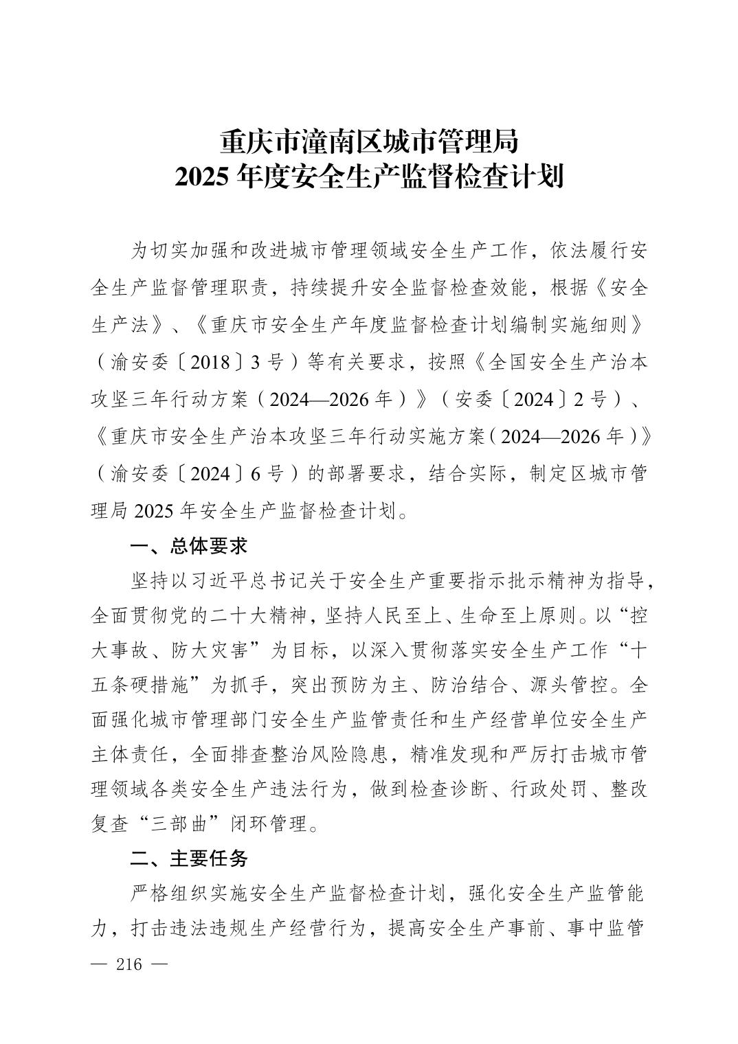重庆市潼南区应急管理局关于重庆市潼南区各部门2025年安全生产监督检查计划汇编公示