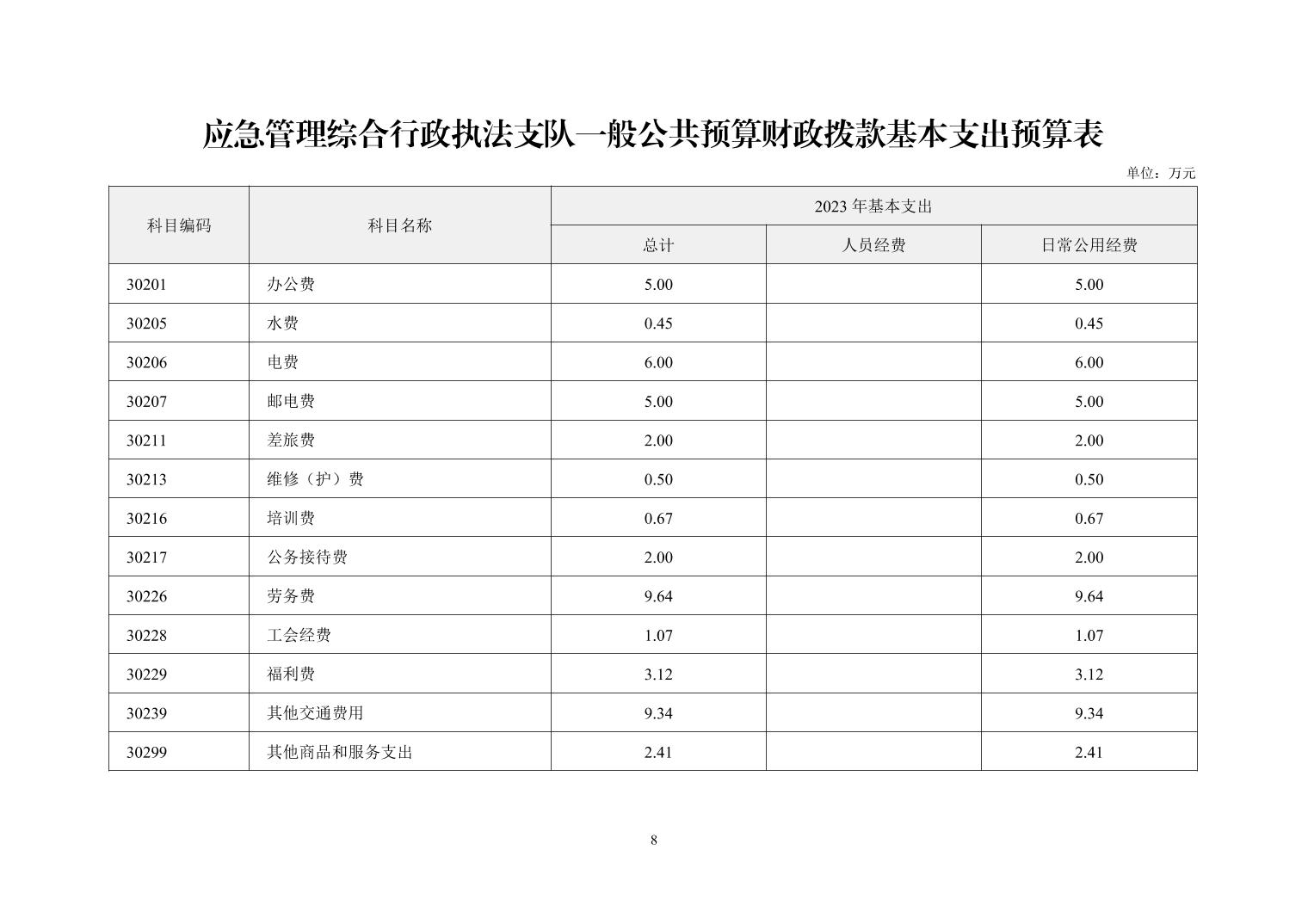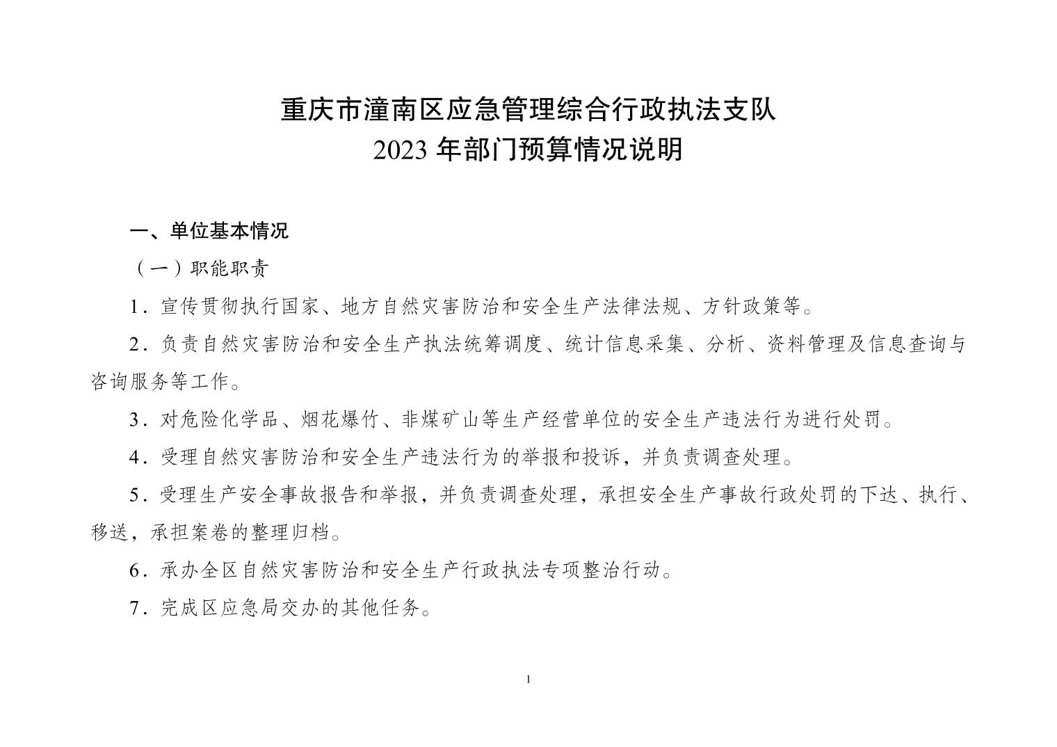 重庆市潼南区应急管理综合行政执法支队2023年部门预算情况说明