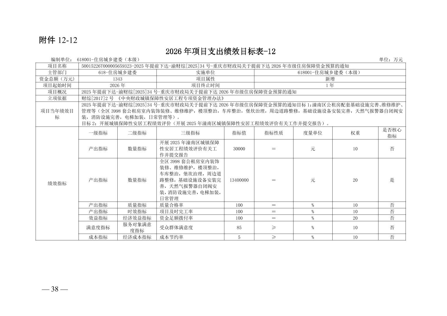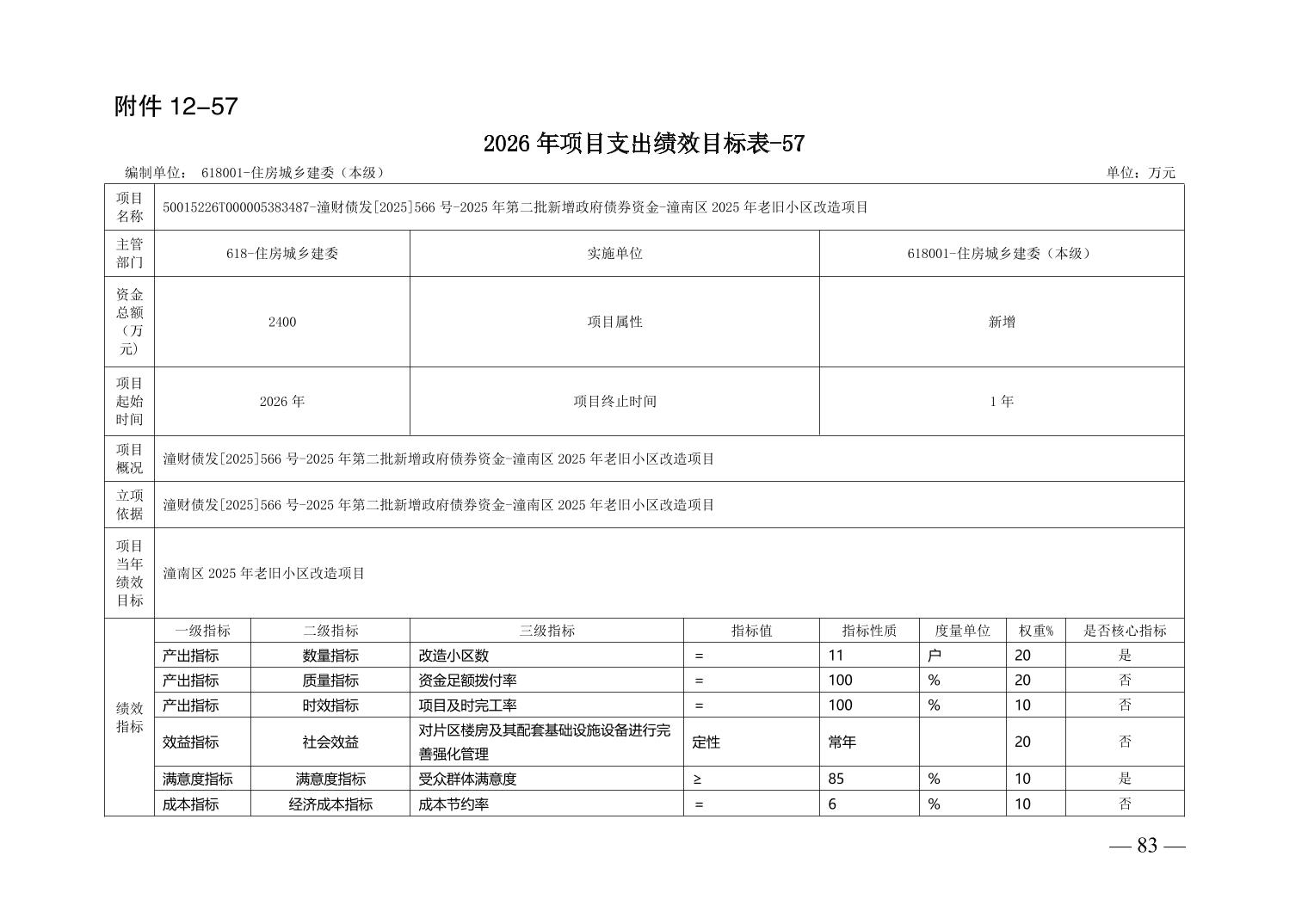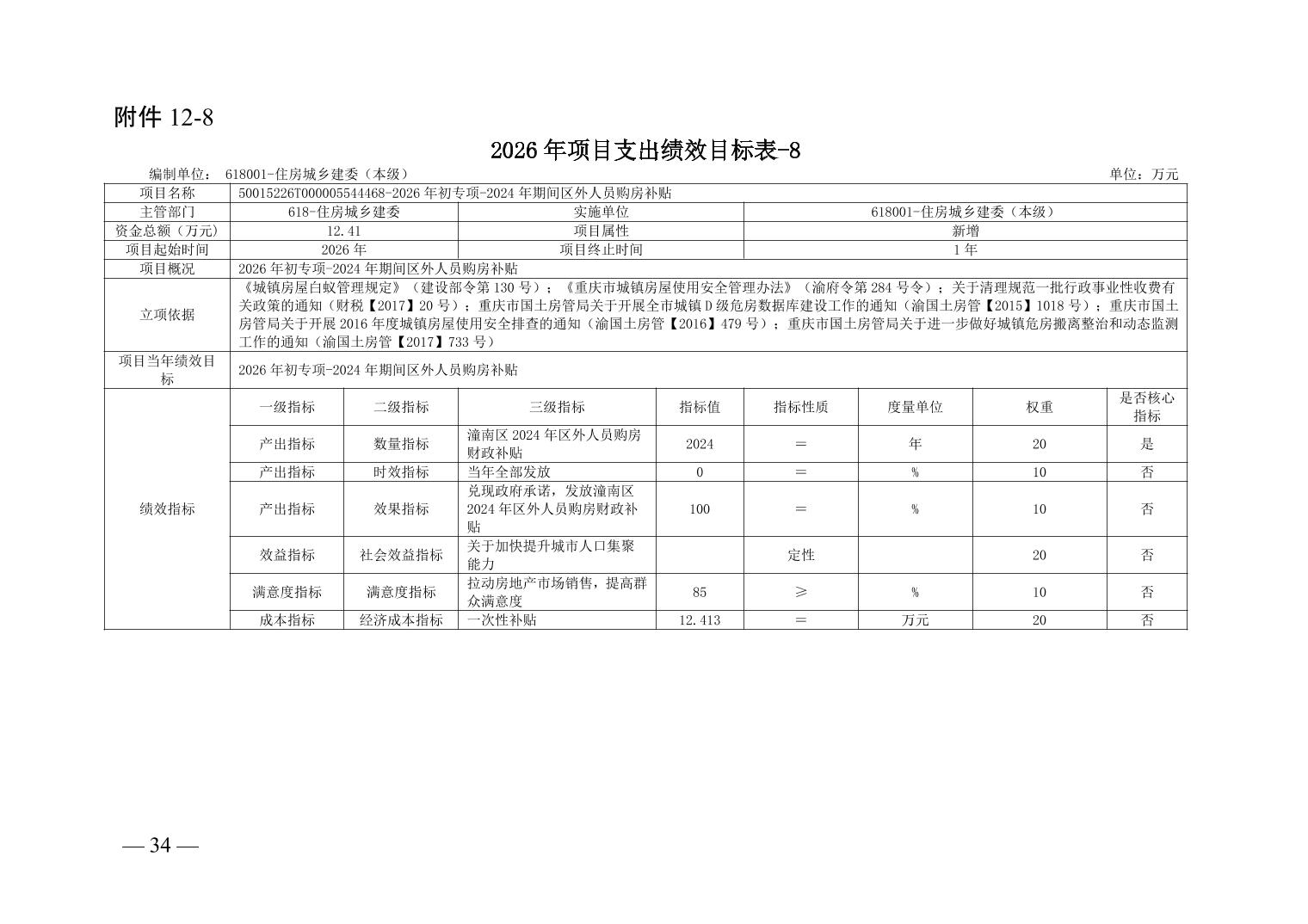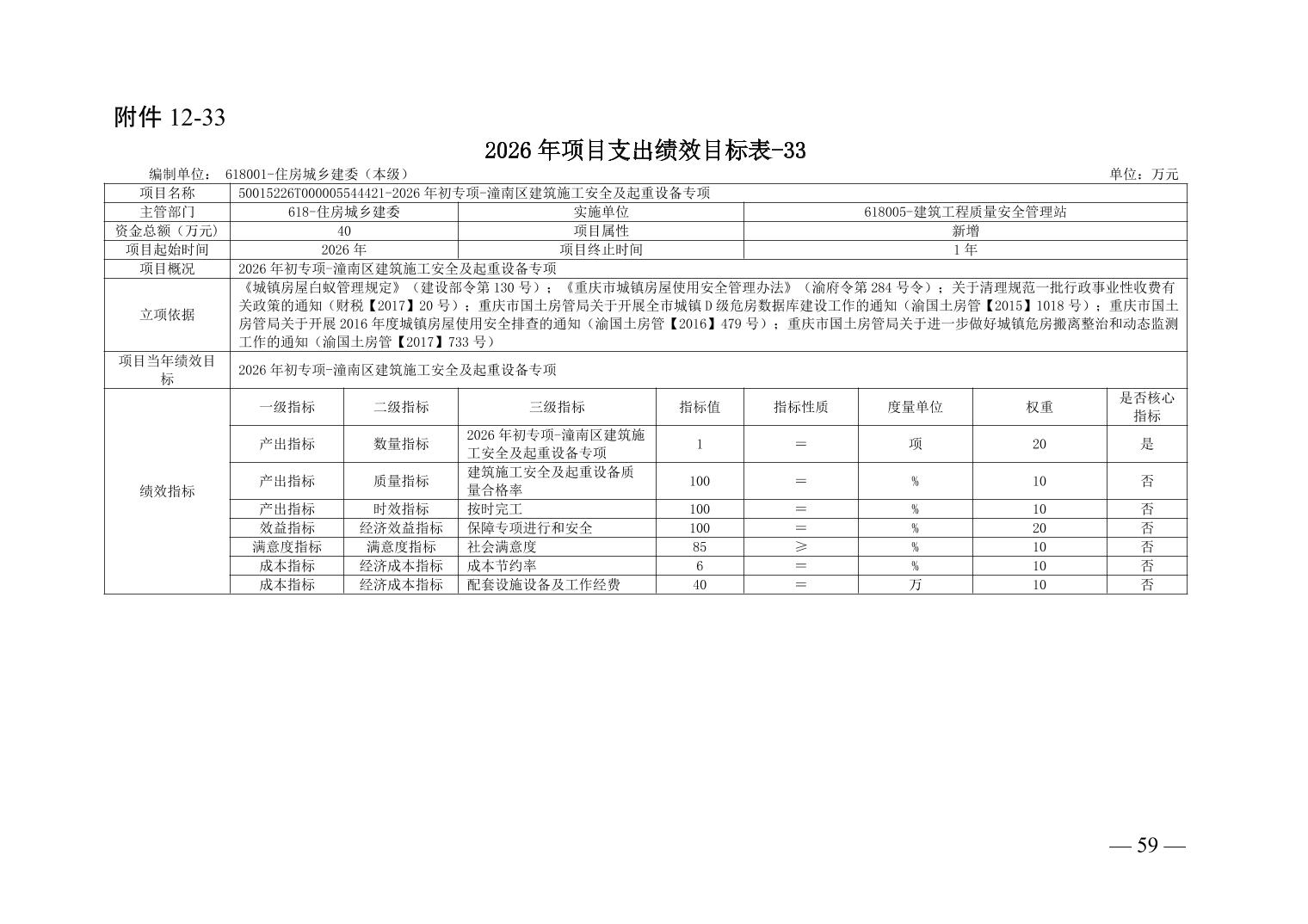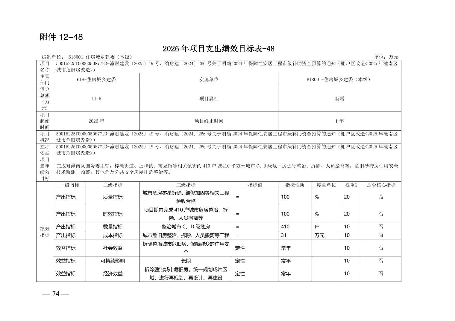 重庆市潼南区住房和城乡建设委员会(汇总级)2026年度部门预算公开