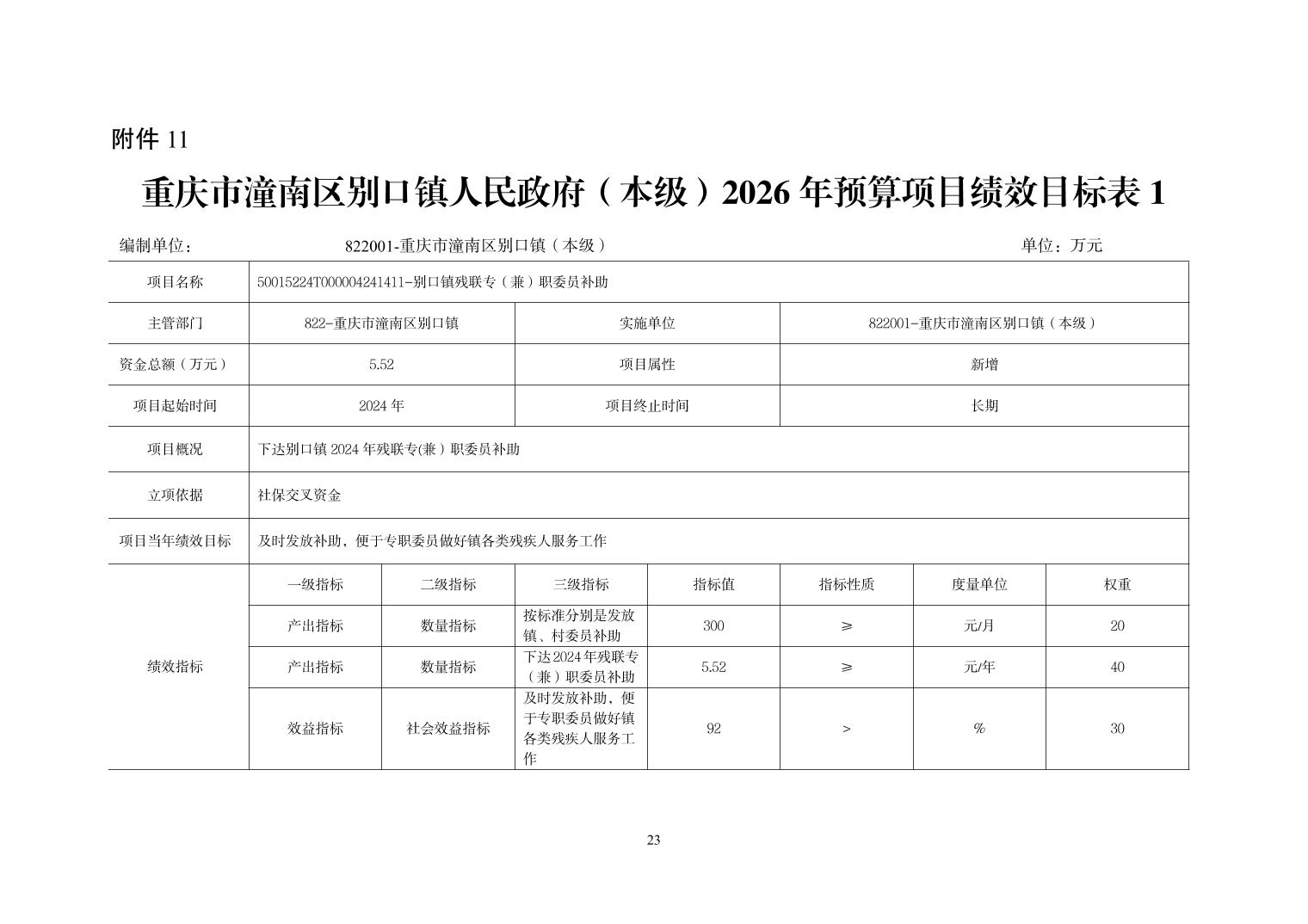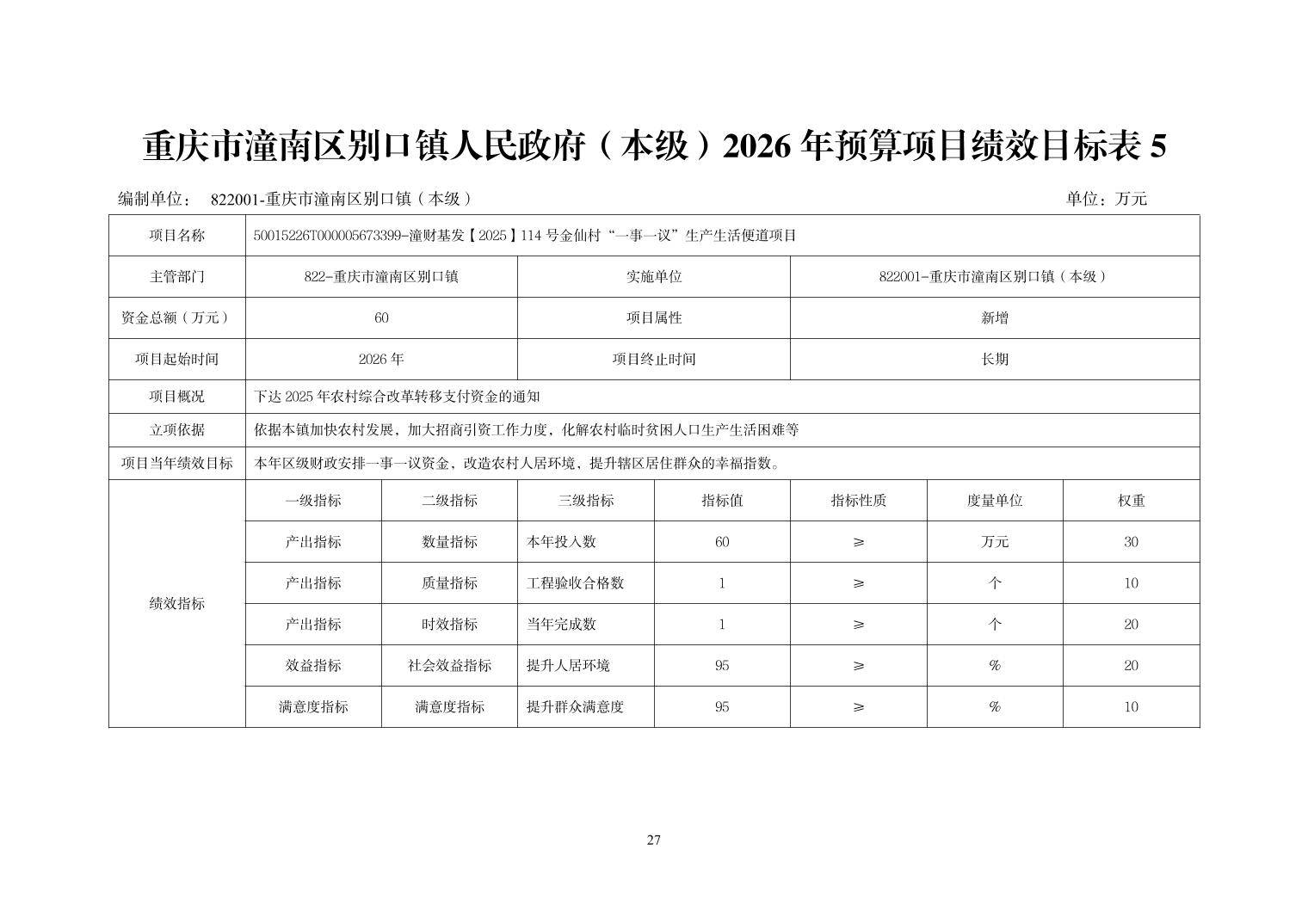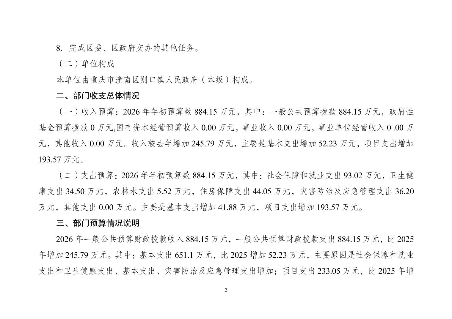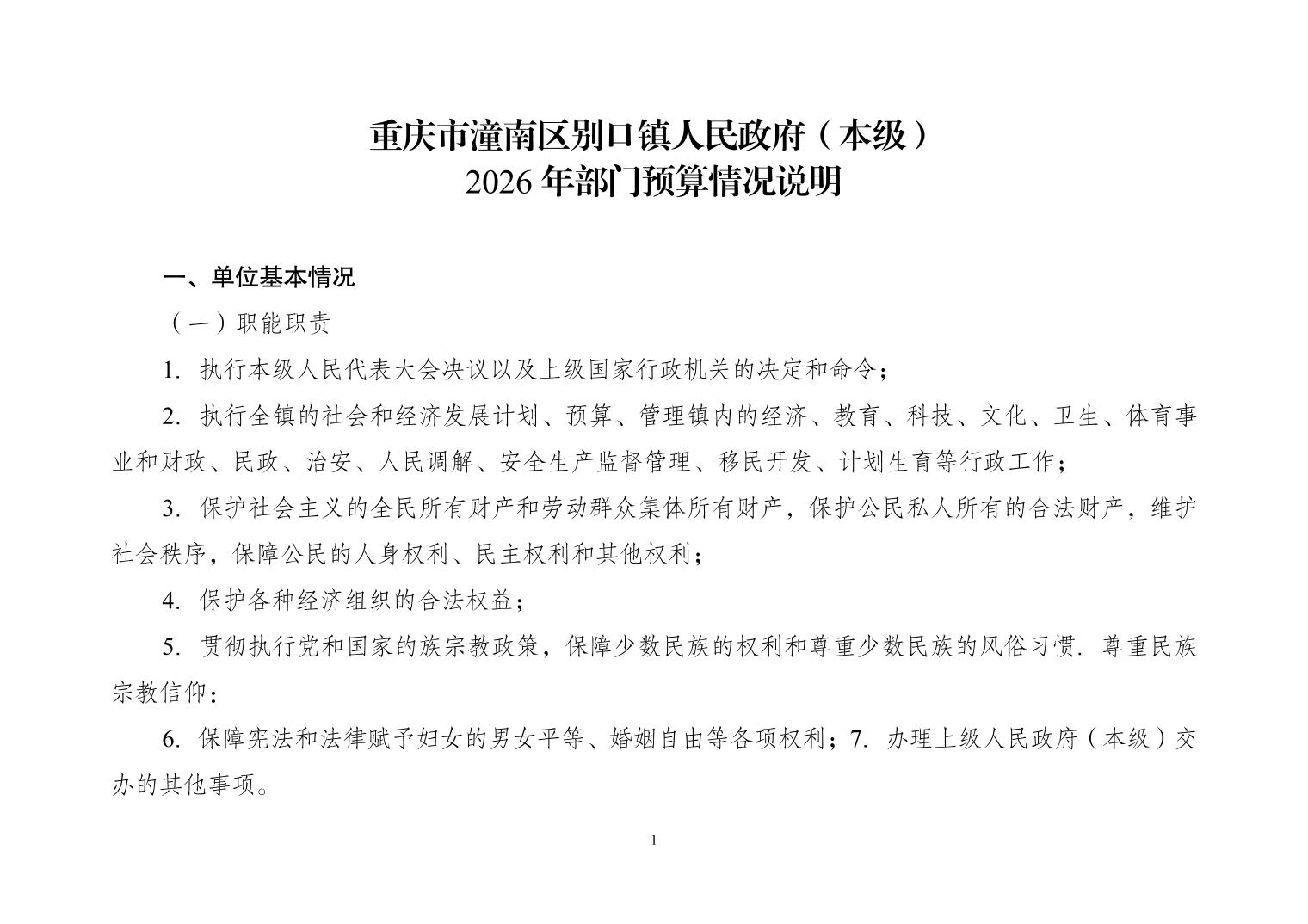 重庆市潼南区别口镇人民政府(本级) 2026 年部门预算情况说明