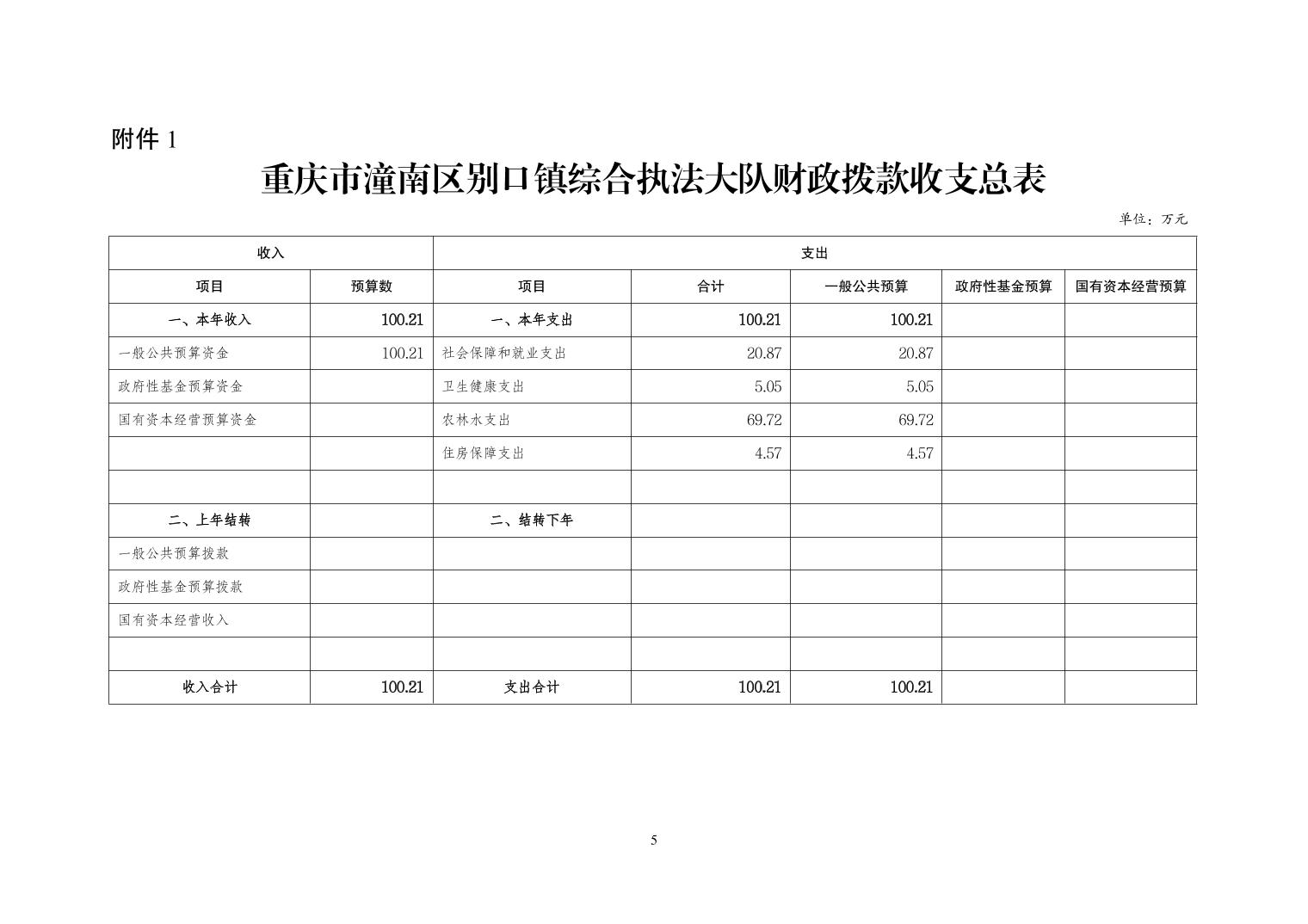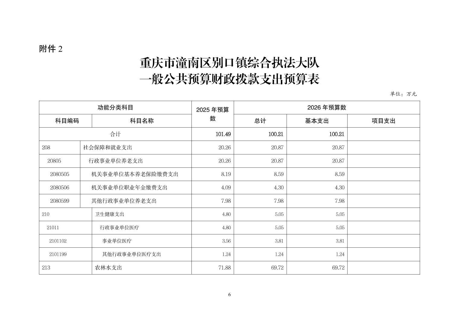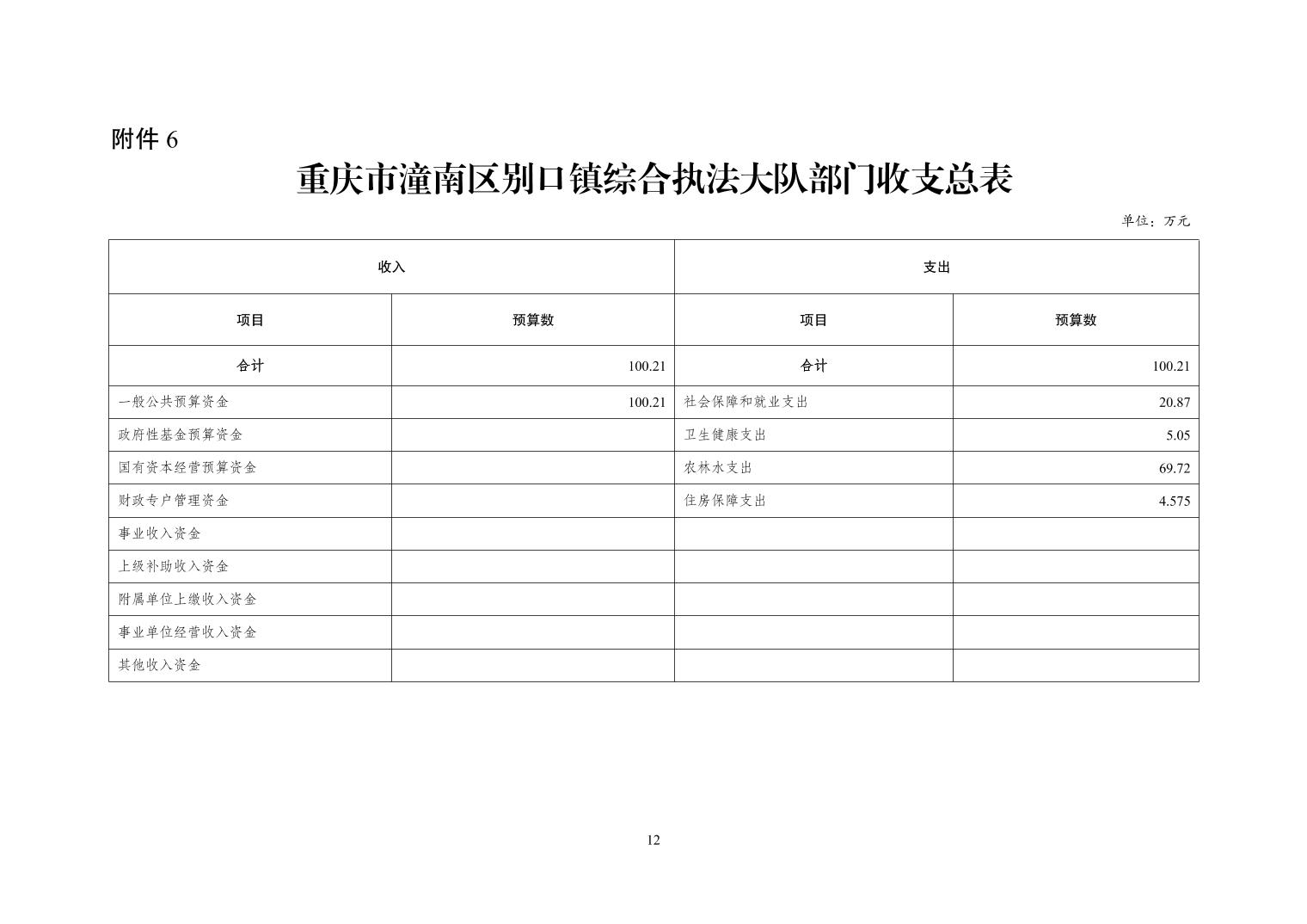 重庆市潼南区别口镇综合行政执法大队 2026 年部门预算情况说明