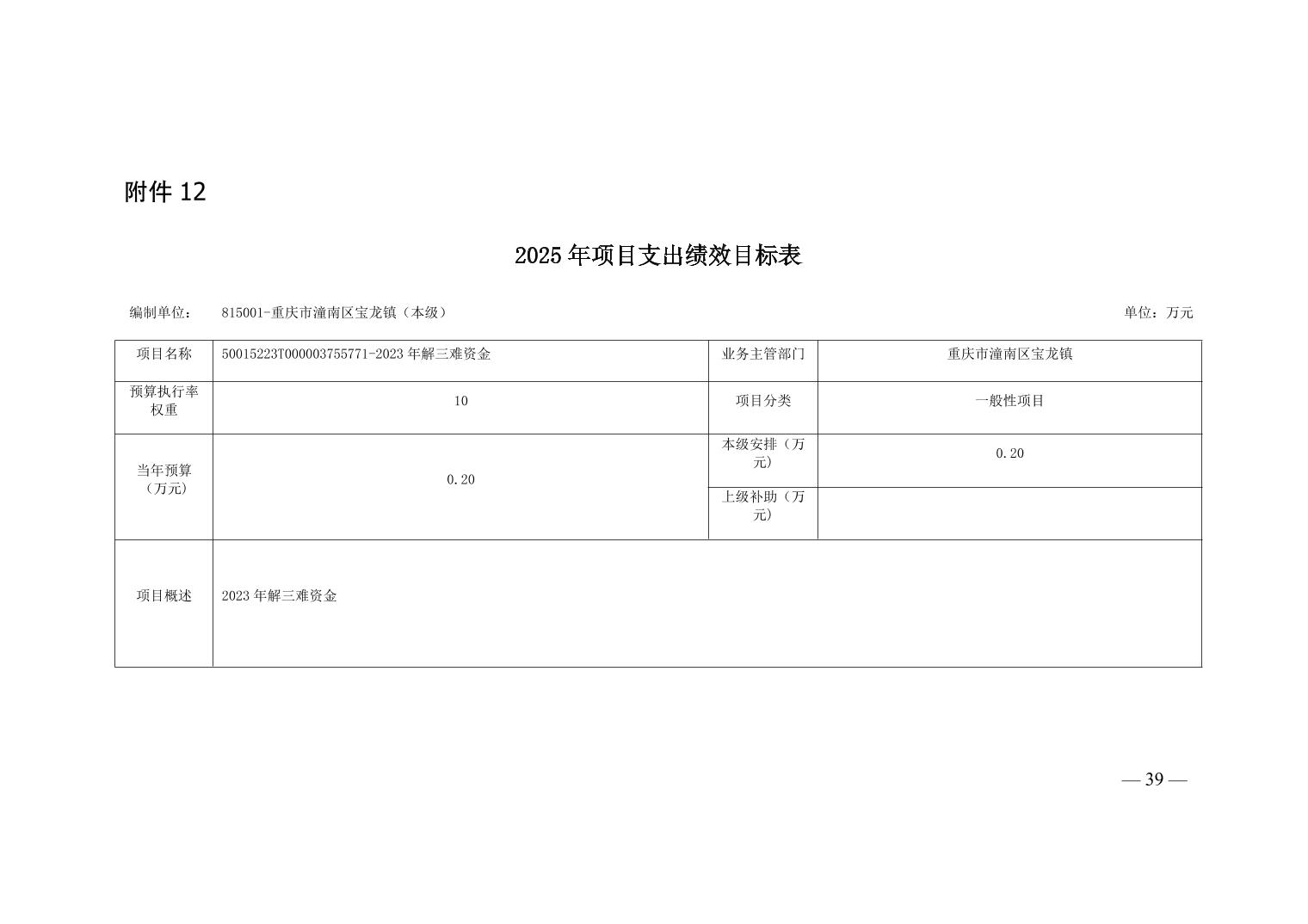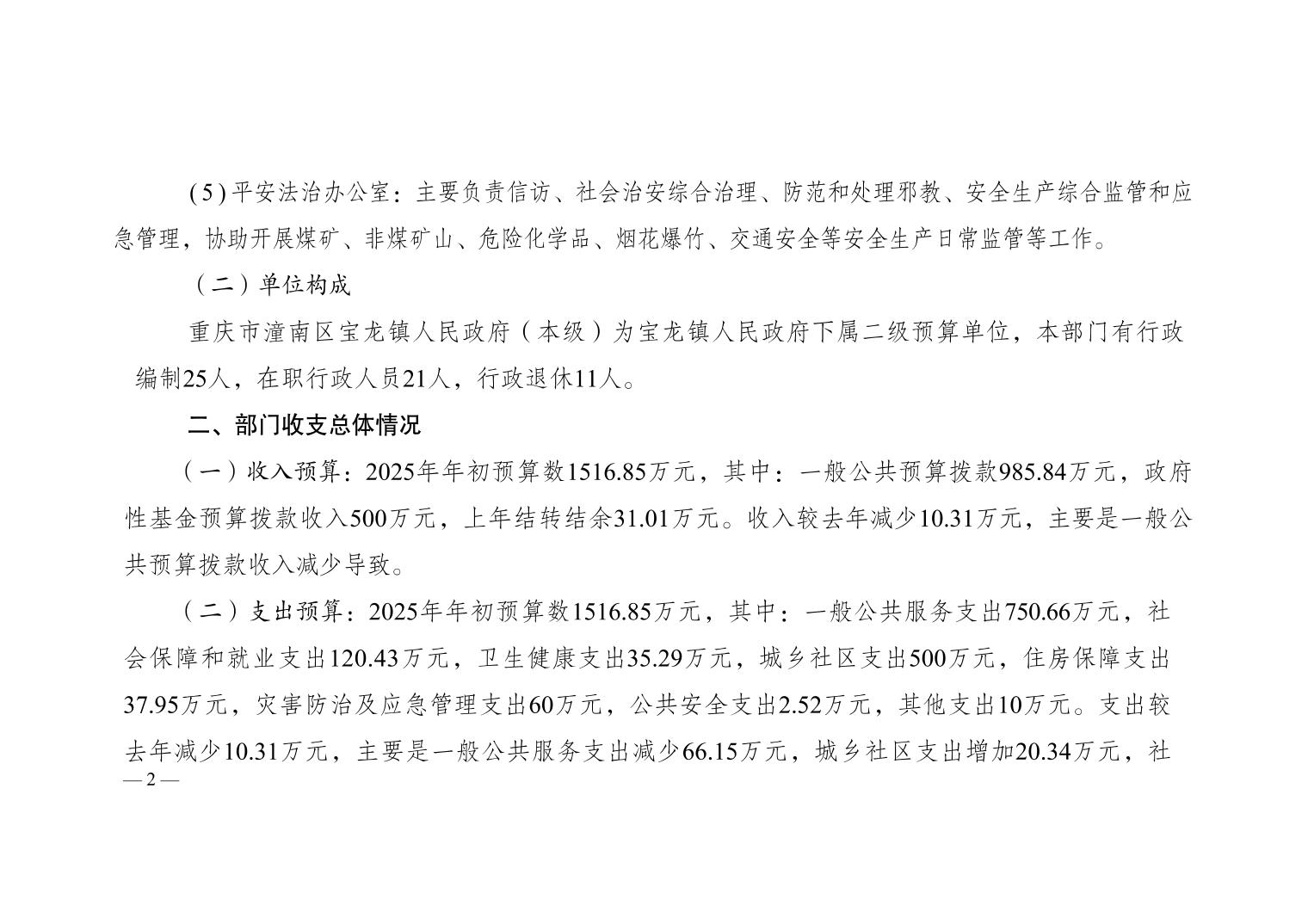 重庆市潼南区宝龙镇人民政府(本级)2025年预算公开