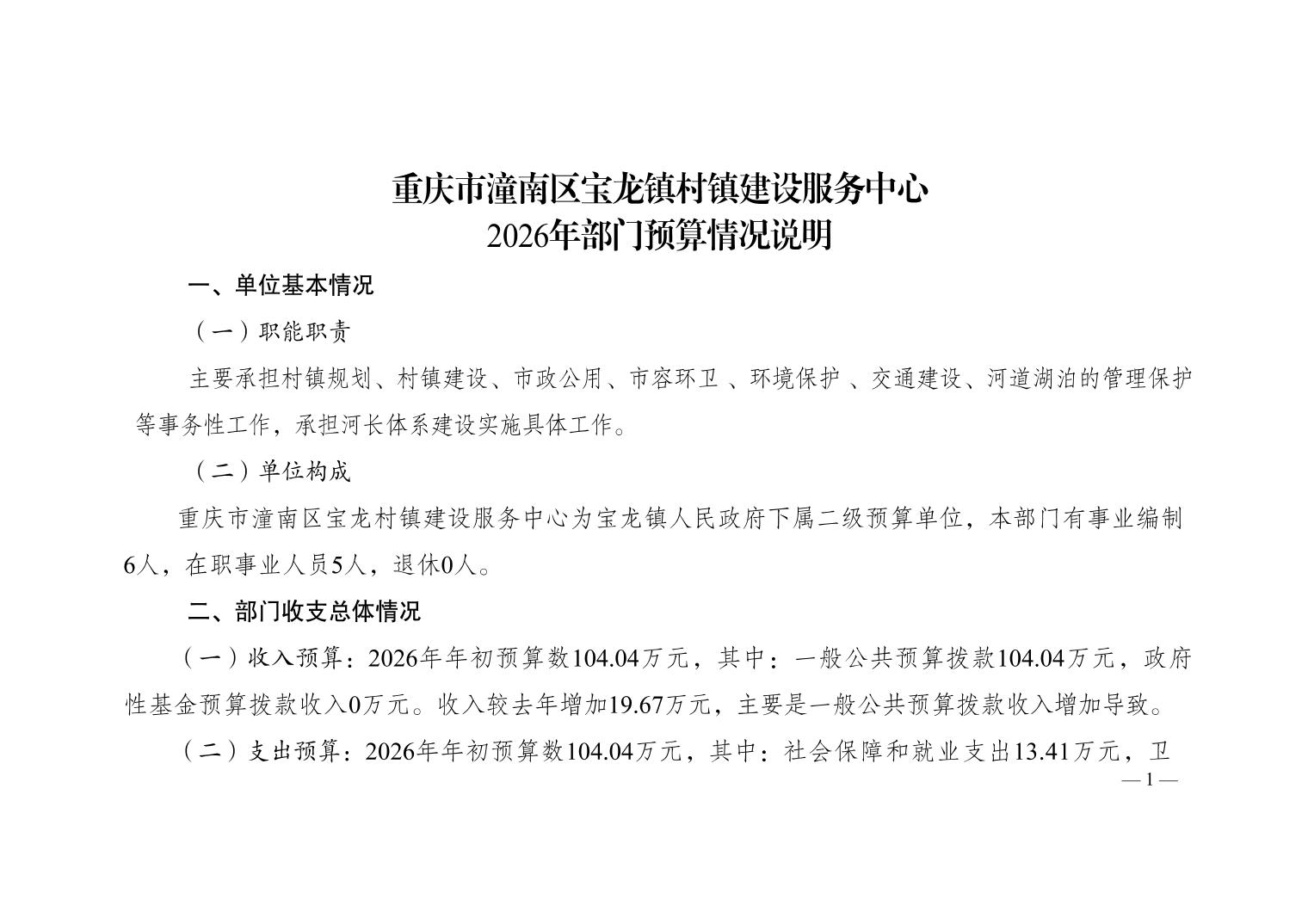 重庆市潼南区宝龙镇村镇建设服务中心2026年预算公开
