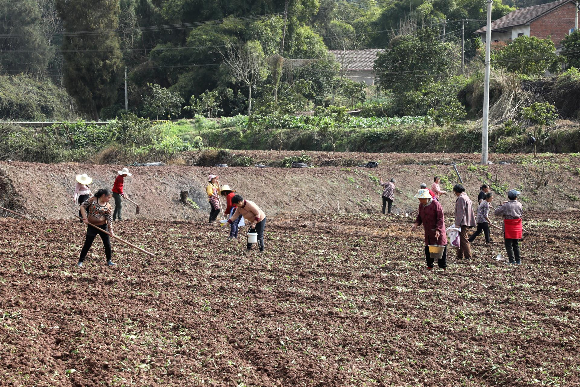 近期,记者走进严寨村毛豆种植基地,随处可见热火朝天的劳作景象。村民们分工协作、干劲十足,翻土、点播、覆土、管护……各项工序有条不紊。大家趁着晴好天气,全力加快春播进度,为今年特色产业提质增效、丰产丰收打下坚实基础。